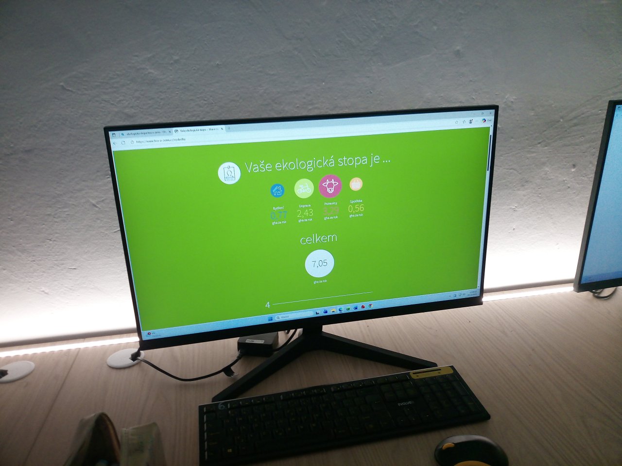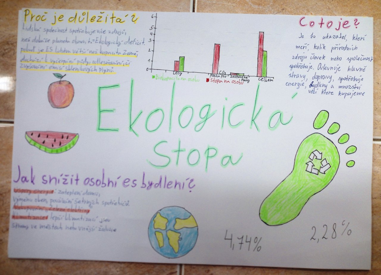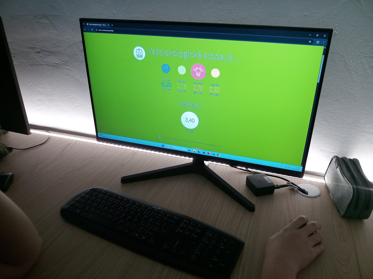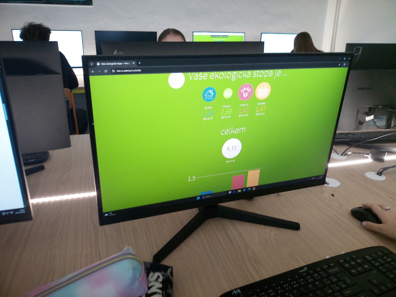 Po úvodní diskusi si každý žák online vypočítal vlastní ekologickou stopu. Výsledky byly pro mnohé překvapivé a často vedly k zamyšlení nad tím, co by se dalo změnit. Žáci porovnávali své výsledky, hledali rozdíly a přemýšleli o tom, jak by mohli svou stopu v budoucnu snížit.