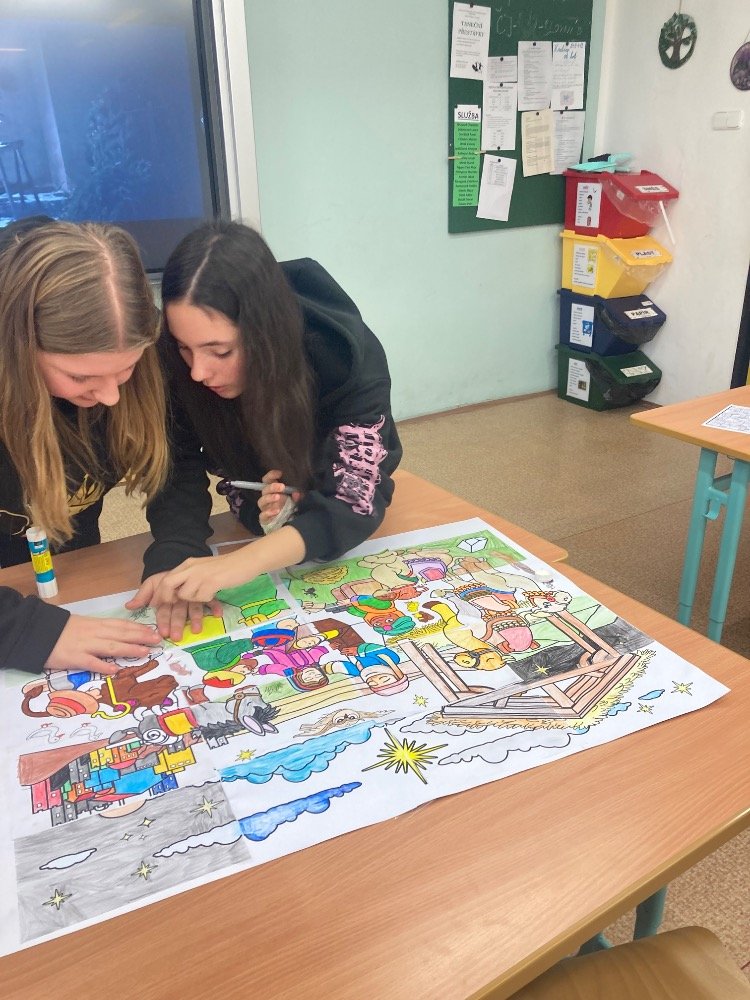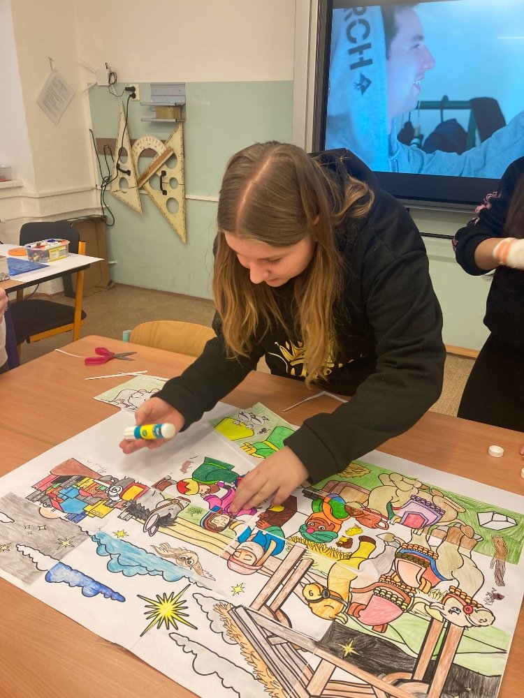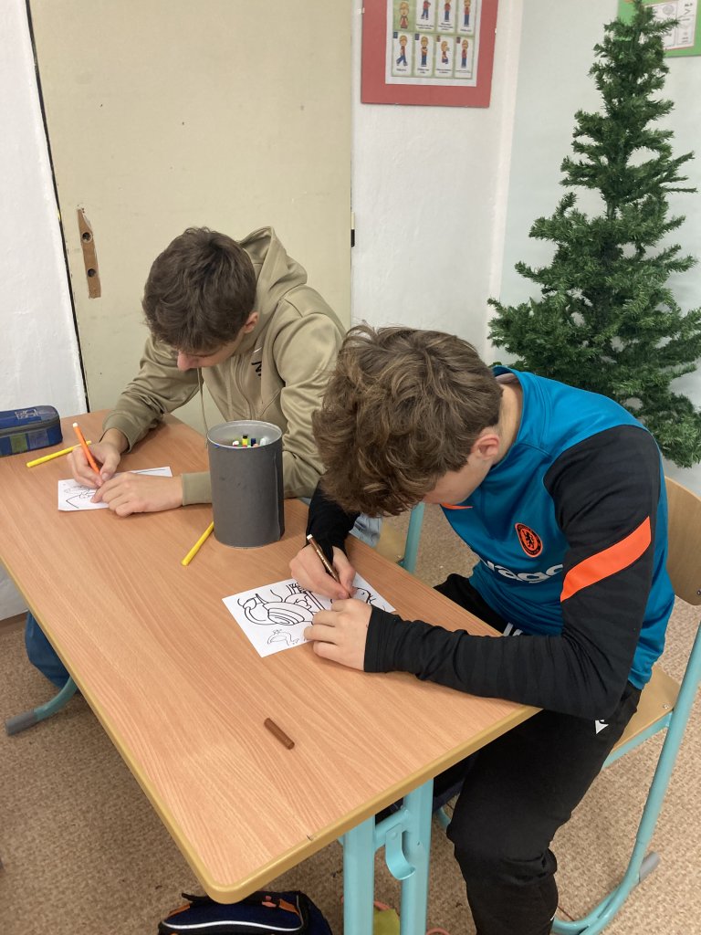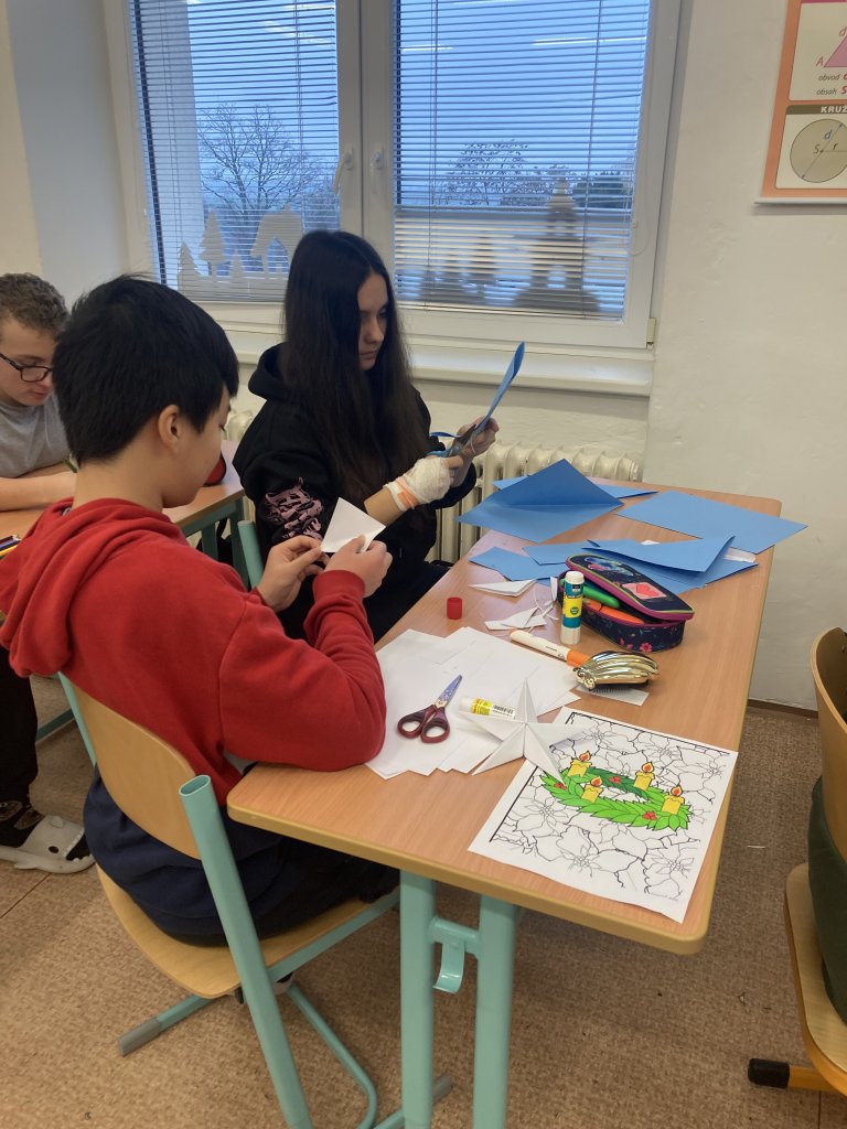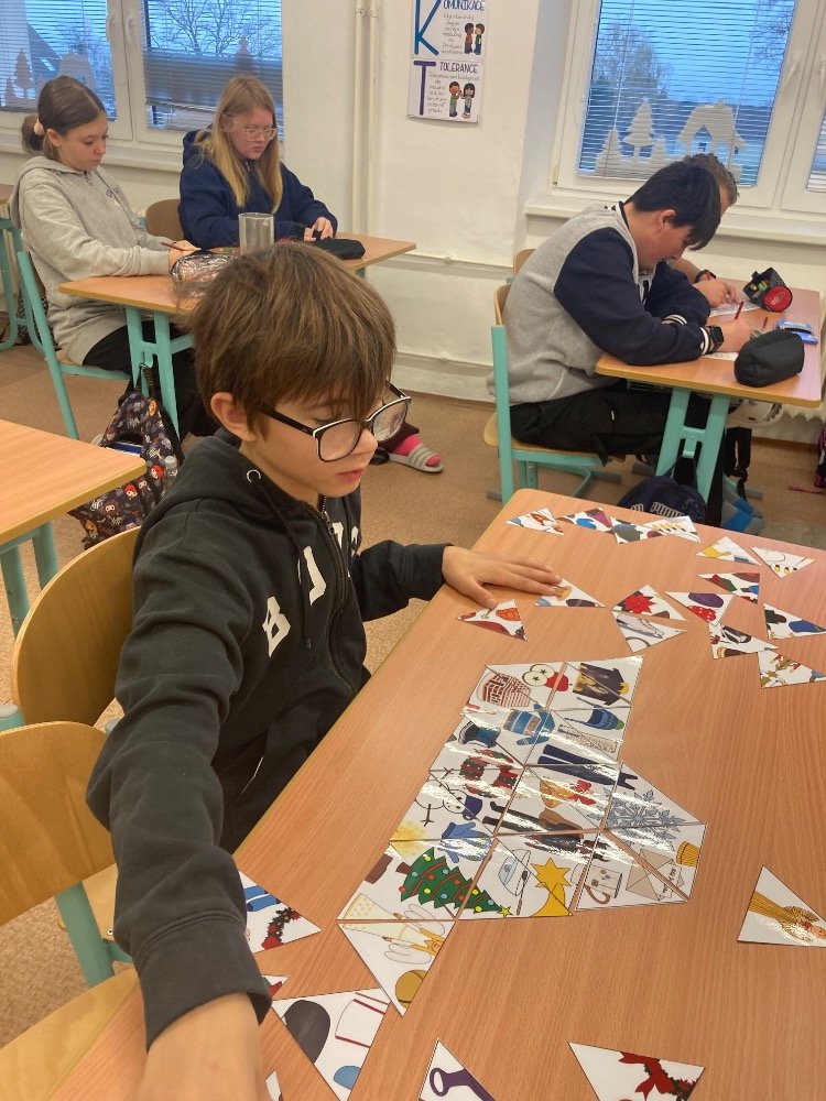 Datum: 6. 12. 2025Ve čtvrtek 4. 12. 2025 se žáci, kteří neodjeli na exkurzi do Vídně, zapojili do školního vánočního projektu. Dopoledne prožili v příjemné předvánoční atmosféře plné tvoření, spolupráce i zábavy. Společně vymalovali a slepili velký kooperativní obraz s betlémem, vybarvovali vánoční mandaly a skládali vánoční trimino. Nechyběly ani logické hry – vánoční sukodu a bingo.