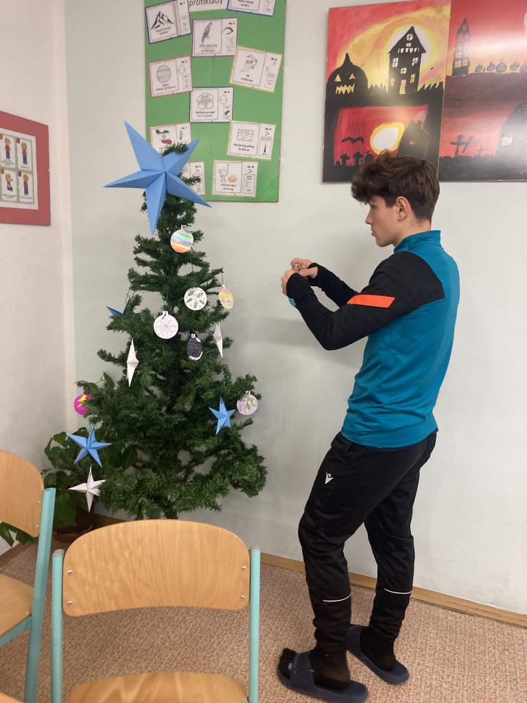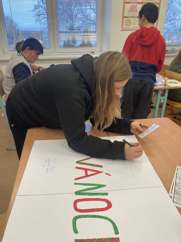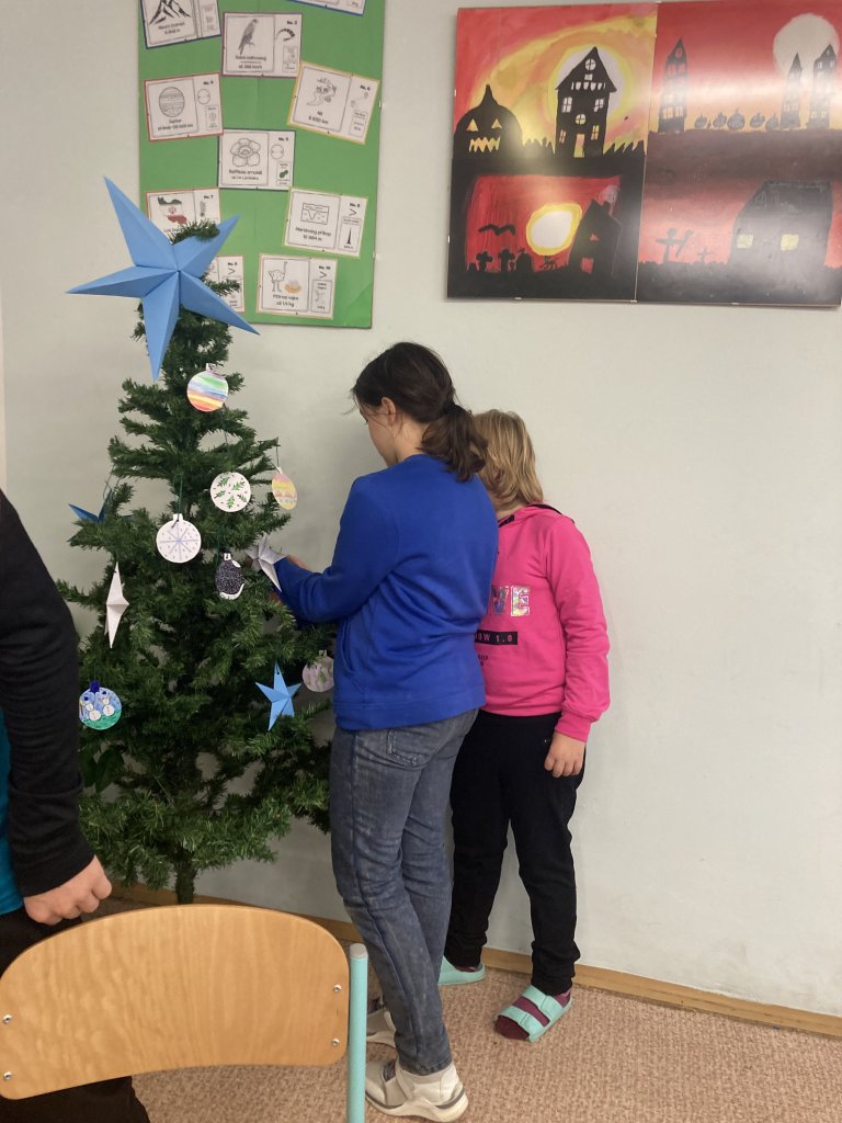 Žáci také vytvořili myšlenkovou mapu na téma Vánoce, která byla inspirací k další práci. Školní vánoční stromeček ozdobili vlastnoručně vyrobenými papírovými hvězdami a baňkami. Celé dopoledne se neslo v duchu vánočních písní, které nám hrály v pozadí, a povídání o tradicích a zvycích spojených s tímto krásným obdobím.
