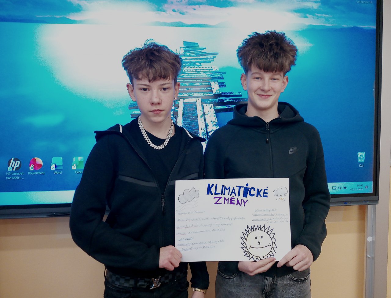 Datum: 6. 12. 2025V hodině chemie se žáci 8. třídy ponořili do aktuálního tématu, které ovlivňuje život lidí po celém světě. Úvodem zhlédli krátké video, které jim nabídlo základní přehled o příčinách i důsledcích globálního oteplování.