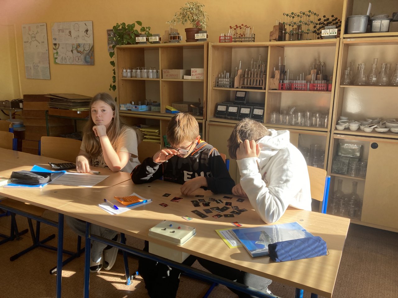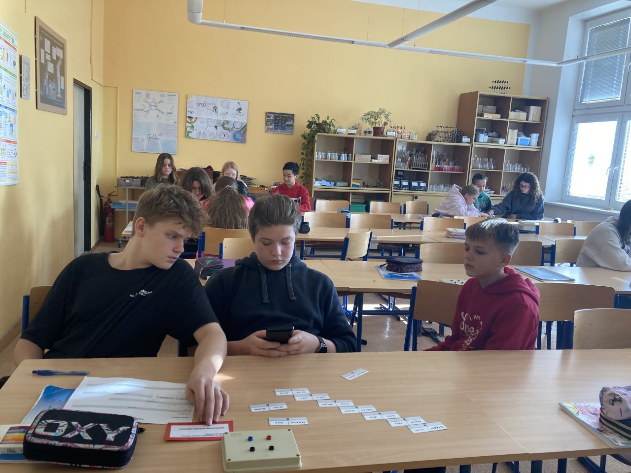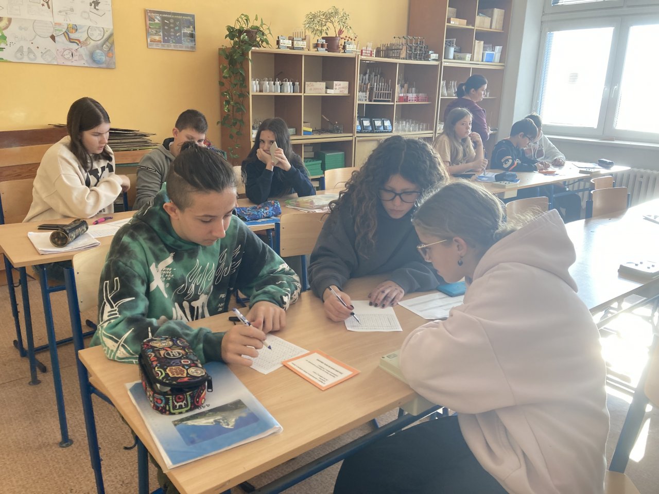 Datum: 9. 12. 2025V hodině fyziky si žáci sedmého ročníku zopakovali učivo o rychlosti netradiční formou. Byli náhodně rozděleni do skupin a každá z nich dostala jiný úkol týkající se výpočtu nebo porovnávání rychlosti. Po určité době si skupiny úkoly vyměnily, takže si postupně vyzkoušely více typů příkladů.