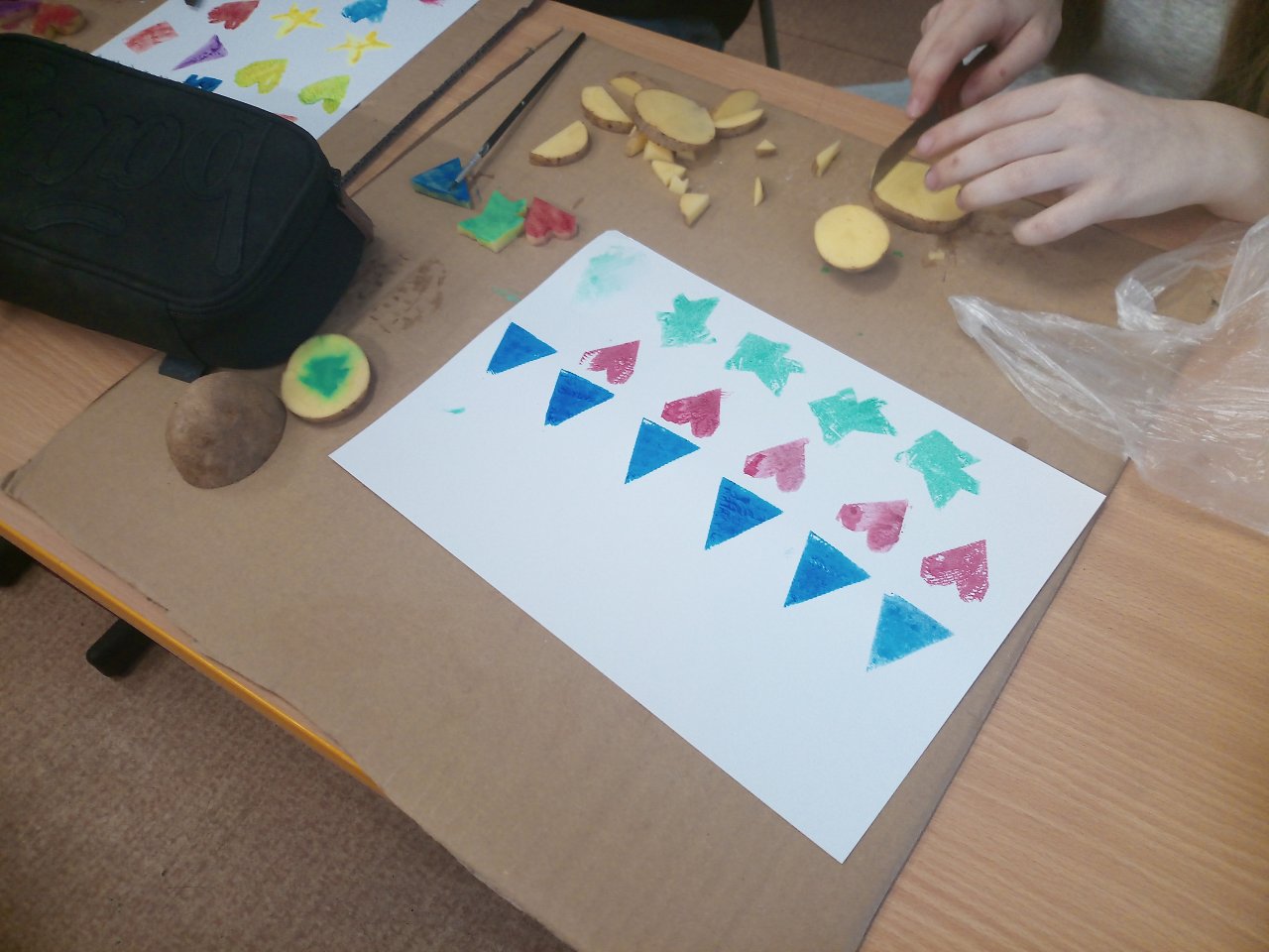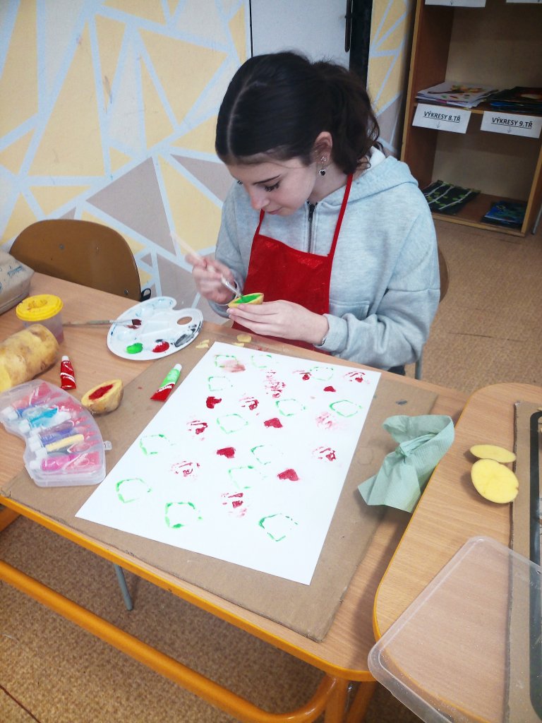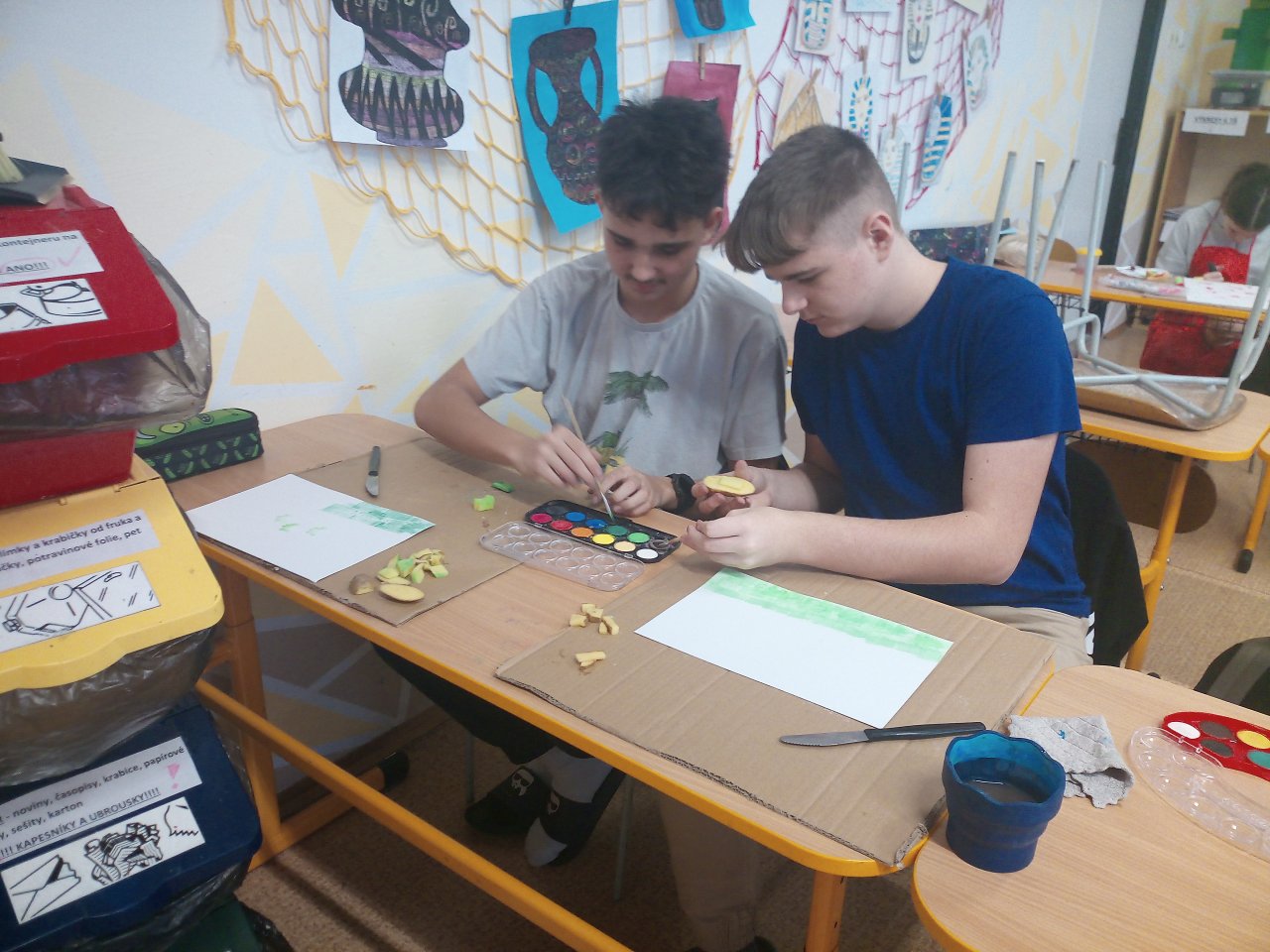 Deváťáci tvořili s Recyklohraním: z brambor vznikla originální tiskátka
