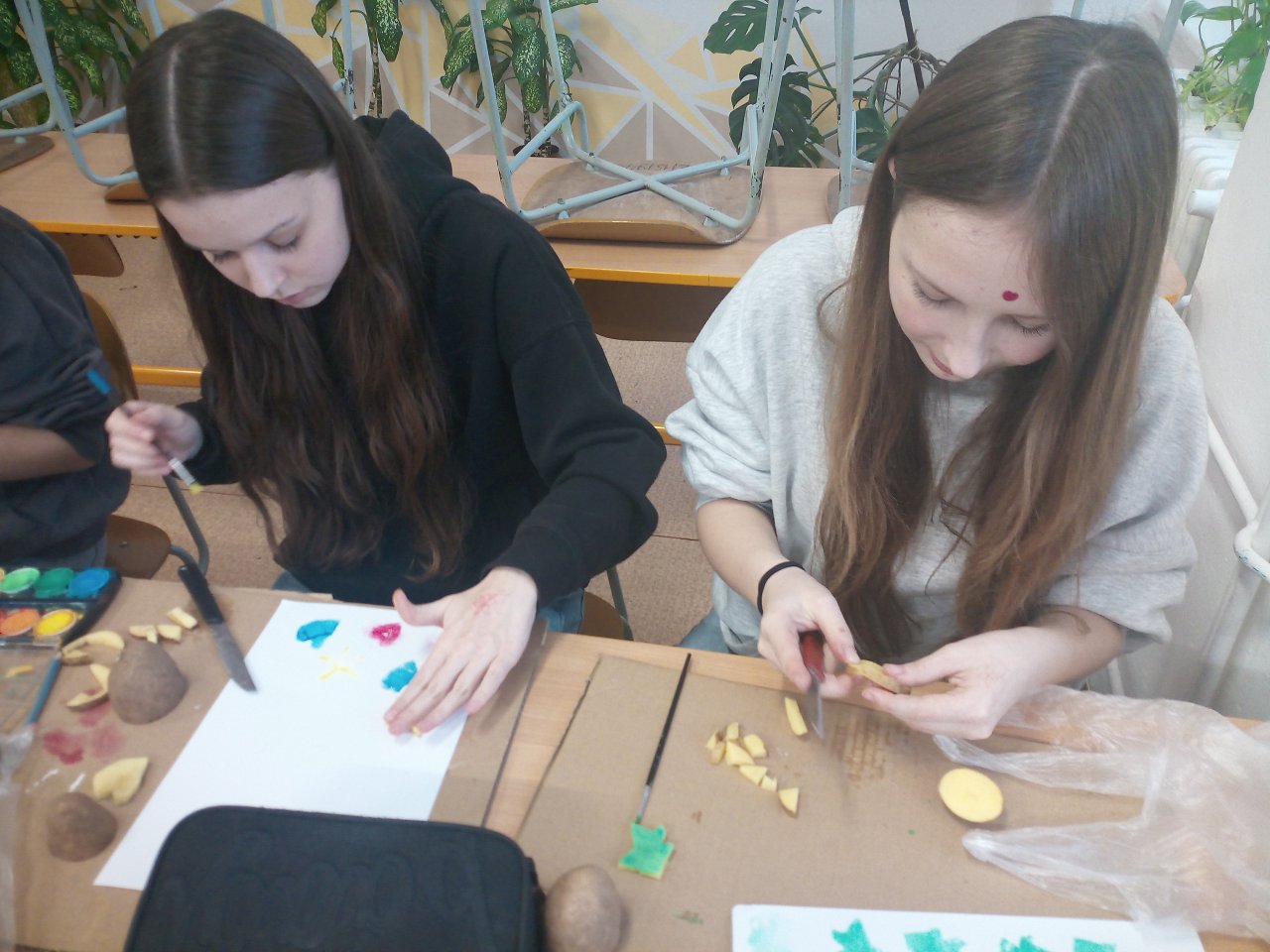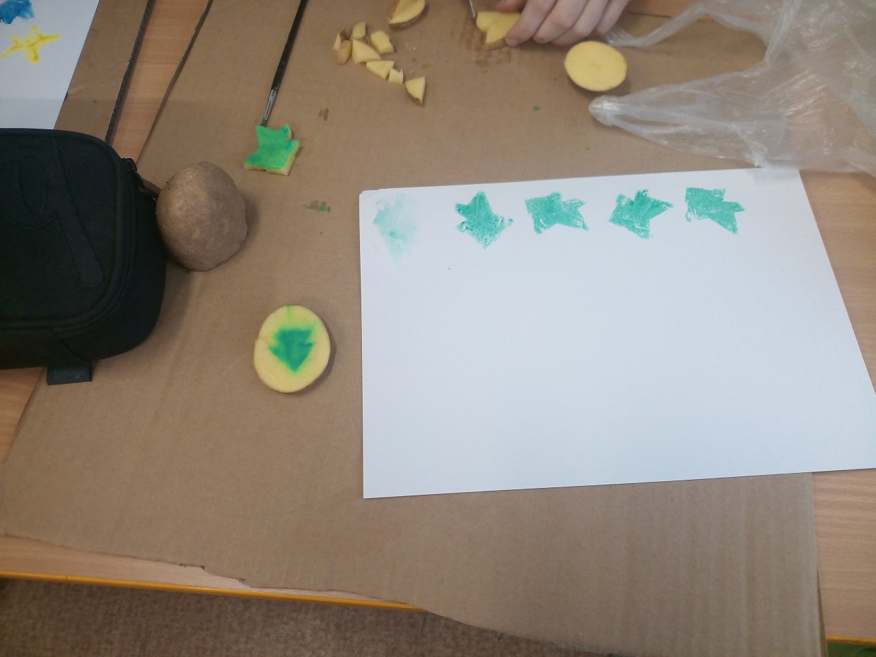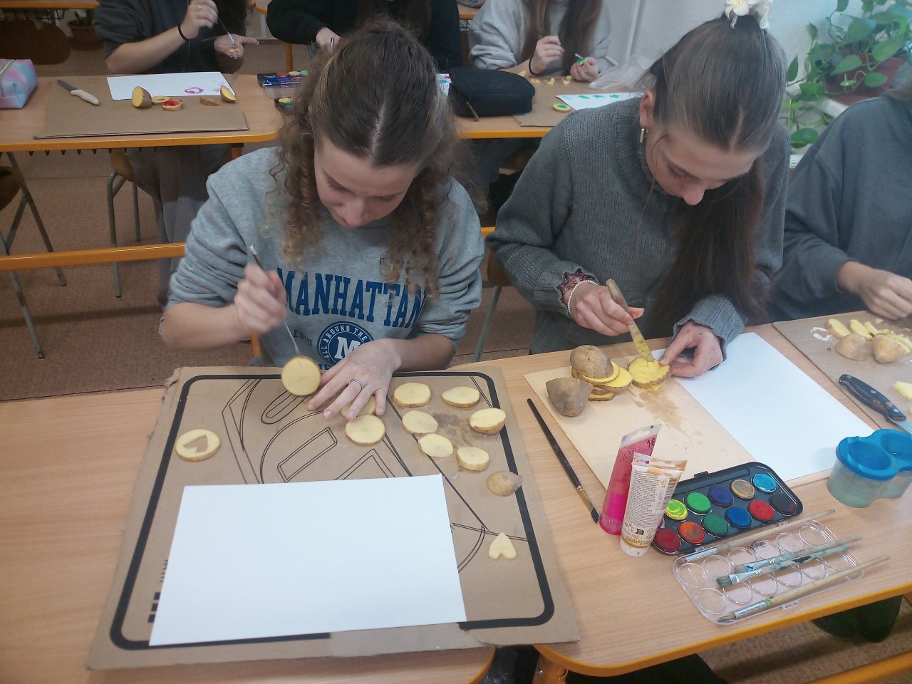 Deváťáci tvořili s Recyklohraním: z brambor vznikla originální tiskátka