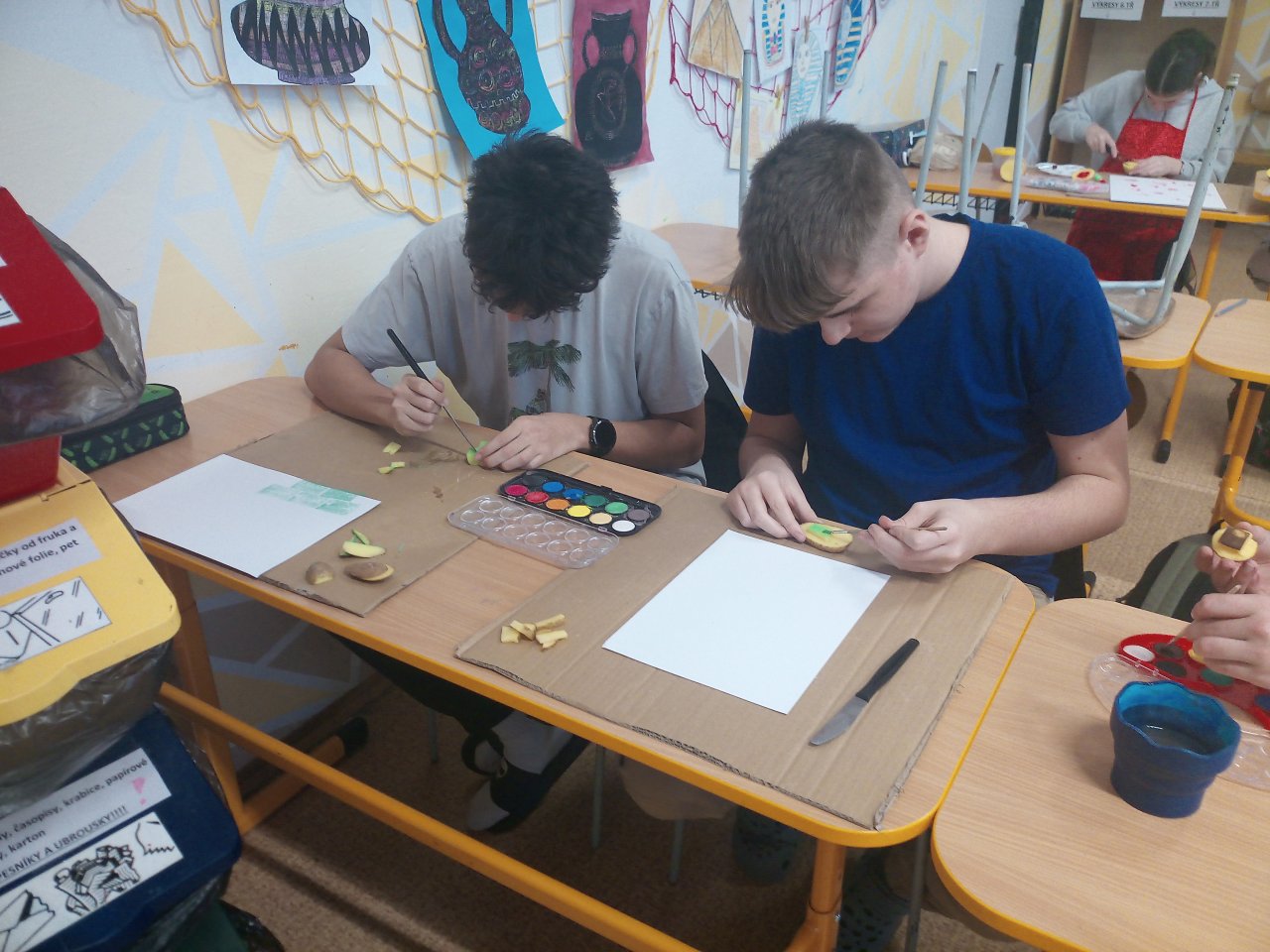 Datum: 9. 12. 2025Žáci devátého ročníku se v rámci programu Recyklohraní pustili do netradičního úkolu, který spojil tvořivost, recyklaci i zábavu. Tentokrát si vyzkoušeli výrobu vlastních tiskátek z brambor. Pomocí nožíků vyřezávali do brambor nejrůznější tvary.