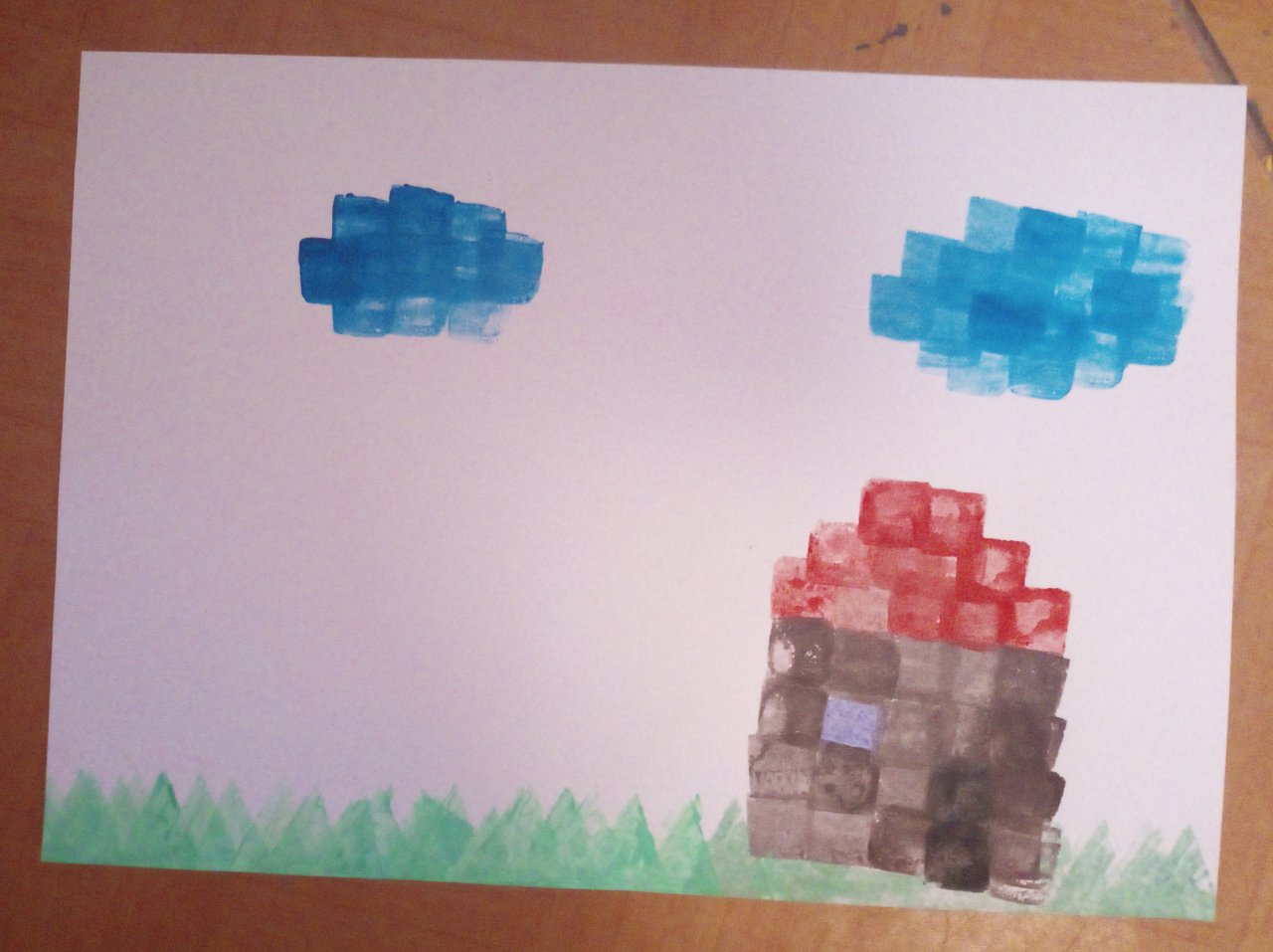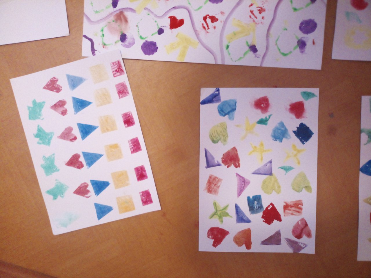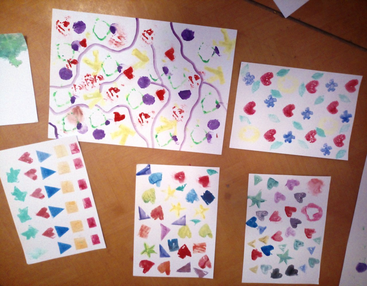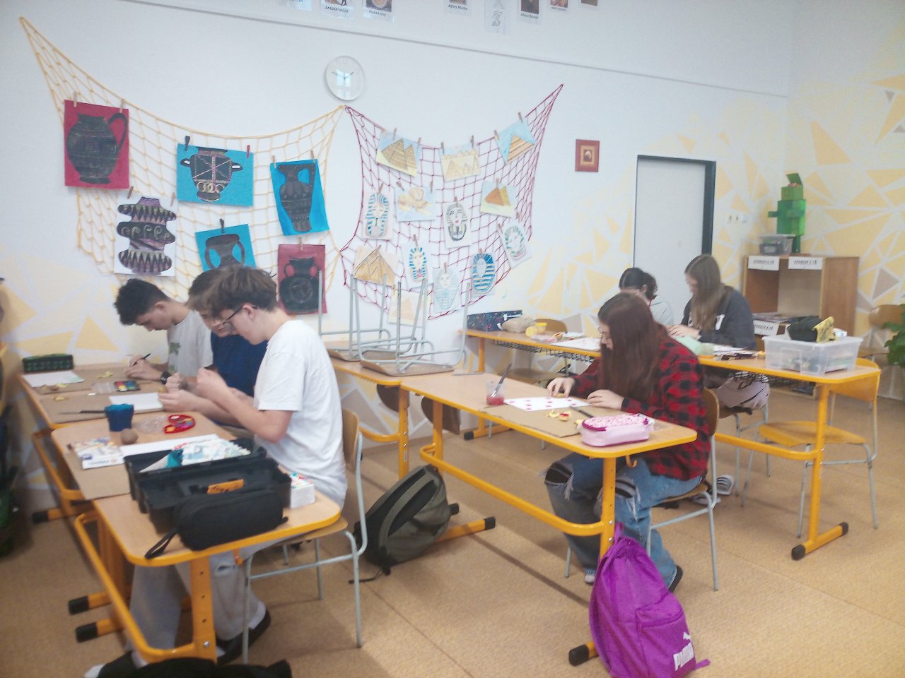 Jakmile byla tiskátka hotová, přišla na řadu ta nejzábavnější část: tisk na výkres. Žáci pracovali s temperami i vodovými barvami a vytvářeli pestré kompozice.