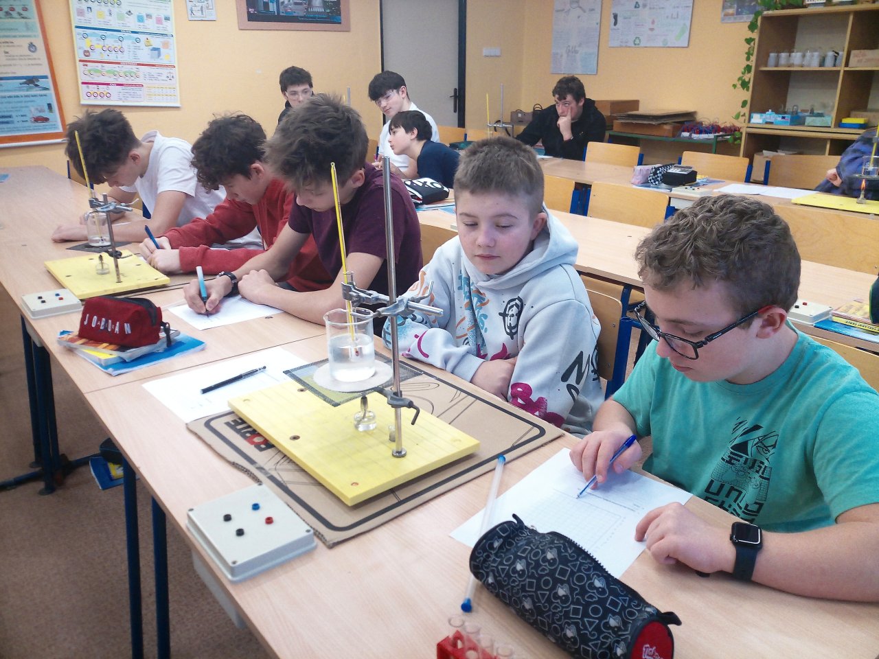 Datum: 10. 12. 2025V hodině fyziky si žáci 8. třídy vyzkoušeli zajímavý chemicko-fyzikální experiment. Jejich úkolem bylo určit teplotu tání thiosíranu sodného, látky známé svými výraznými krystalickými vlastnostmi.