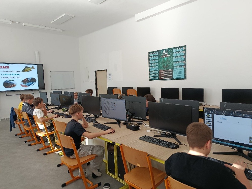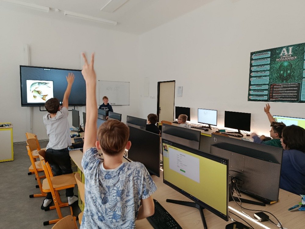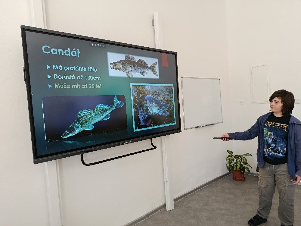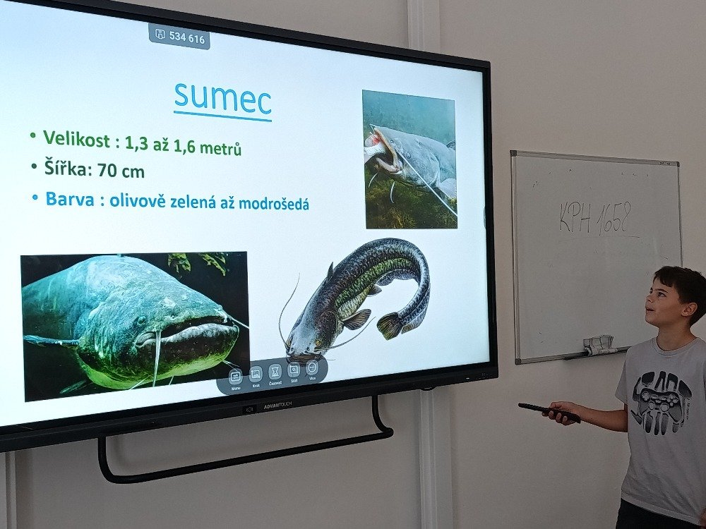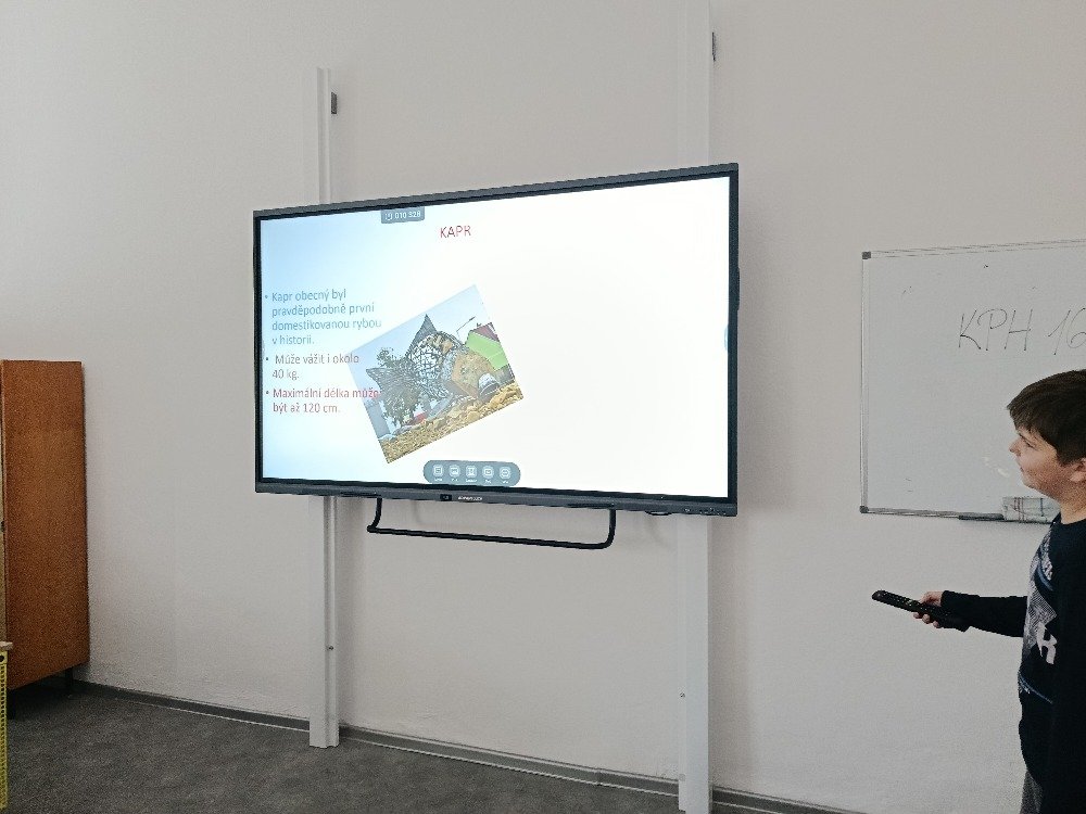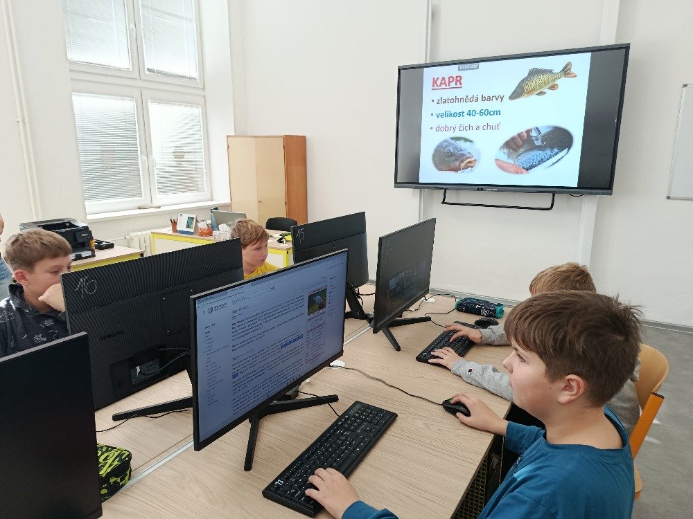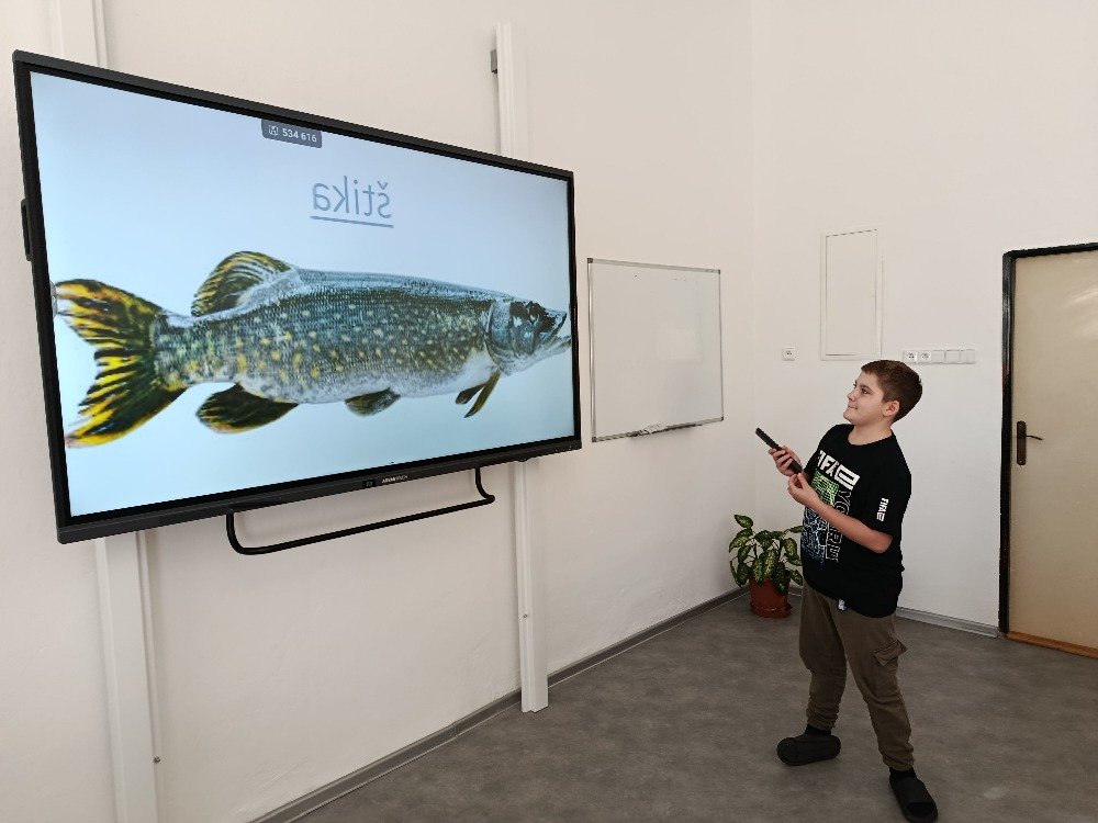 Datum: 13. 12. 2025Žáci 6. třídy si v hodině informatiky vyzkoušeli svou první prezentaci. Téma bylo blízké a zajímavé – ryby. Nejprve společně diskutovali o tom, kdo je rybář, jaké ryby už někdo chytil, kde se nacházejí rybníky a proč jsou ryby zdravé a patří do jídelníčku. Nechyběla ani debata o vánoční večeři a o tom, kdo má na Štědrý večer na talíři rybu.
