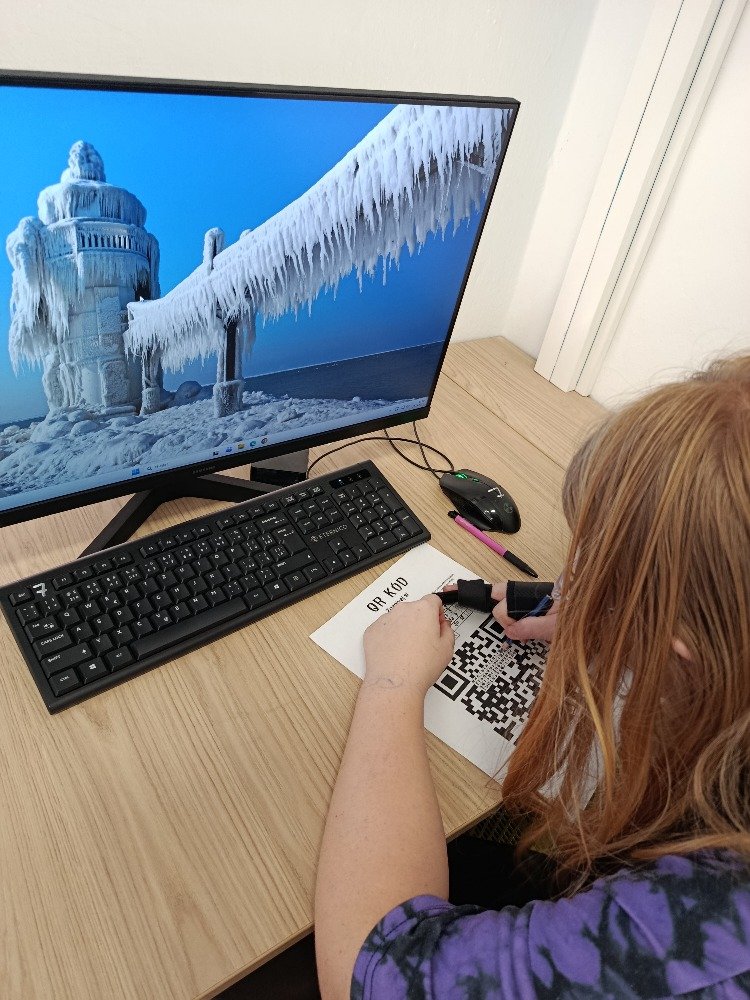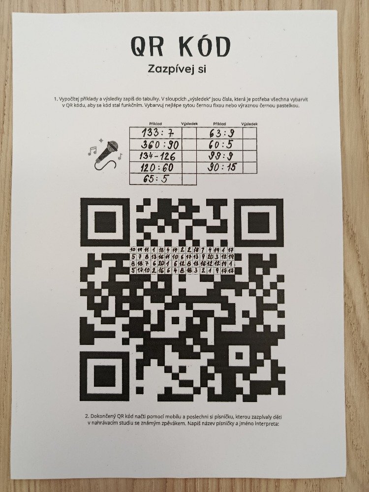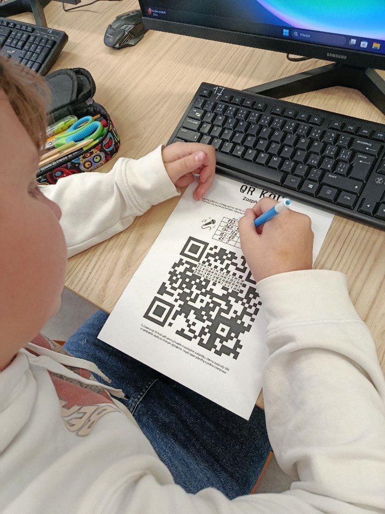 Následně si vyzkoušeli praktickou část – vygenerovali vlastní QR kód, uložili jej jako obrázek a vložili do dokumentu ve Wordu. V další hodině pracovali s pracovním listem, kde matematicky vypočítávali příklady a podle výsledků dokreslovali QR kód.
