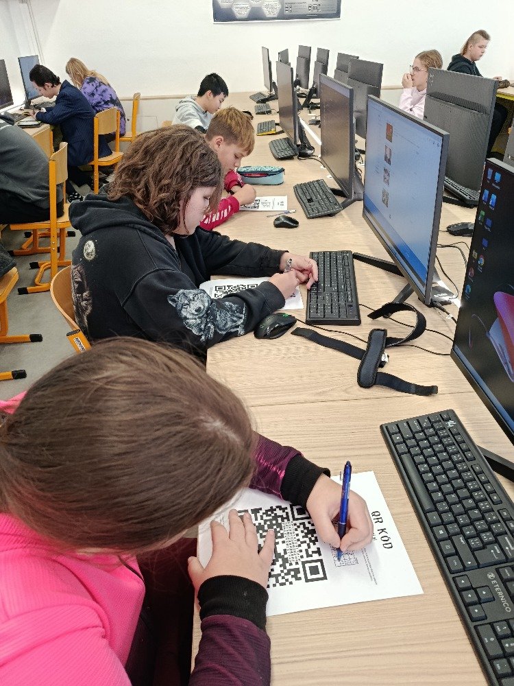 Datum: 13. 12. 2025Žáci 7. třídy se v hodinách informatiky věnovali tématu QR kódů. Nejprve společně diskutovali o tom, kde se s nimi mohou setkat v běžném životě, zda je sami používají a z čeho je tento kód tvořený.