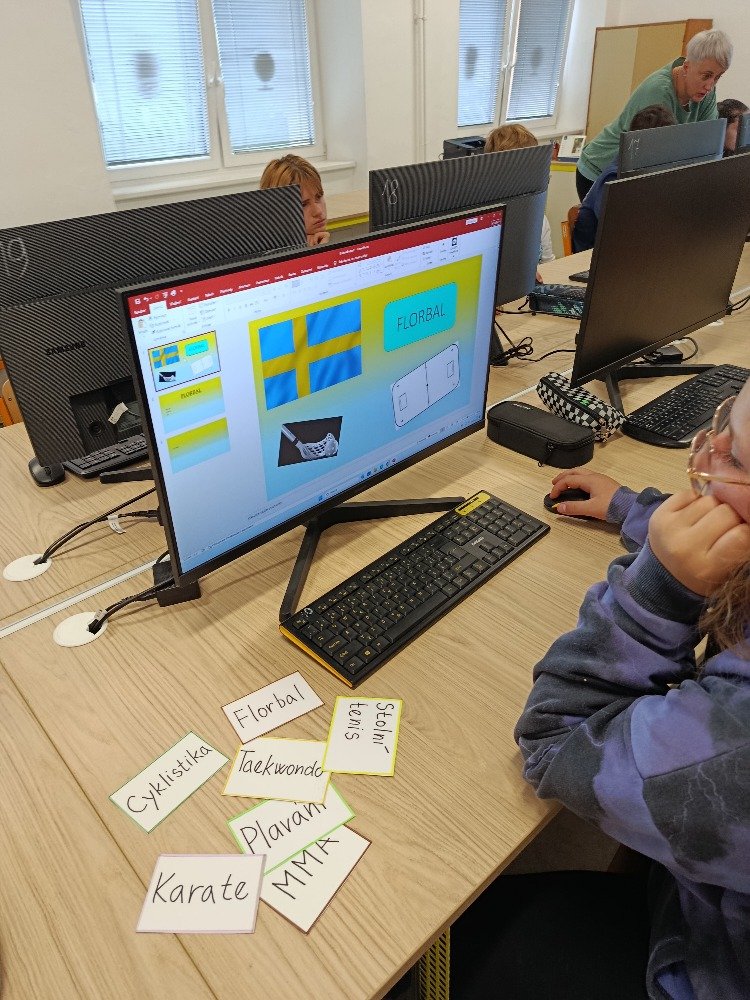 V prezentaci se žáci zaměřili na využití animací a obrázků – spolužáci nejprve hádali, o jaký sport se jedná. Poté byli seznámeni se základními informacemi o daném sportu a na závěr žáci vyhledali, pro který stát je tento sport typický.