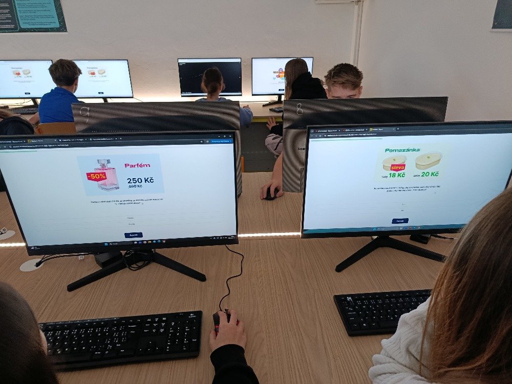 V praktické části pracovali s aplikací Skoala, kde samostatně vybírali zboží, počítali ceny, přepočítávali je v eurech a rozhodovali, které produkty jsou skutečně nejvýhodnější. Žáci si tak vyzkoušeli reálné situace z běžného života a upevnili si dovednosti důležité pro zodpovědné chování spotřebitele.