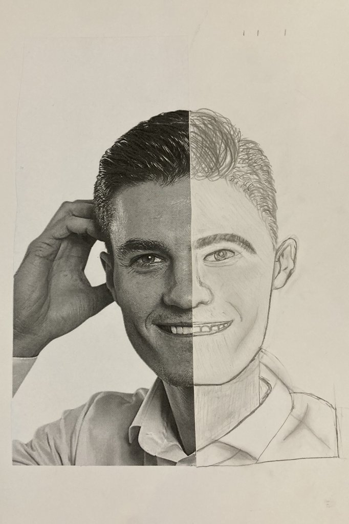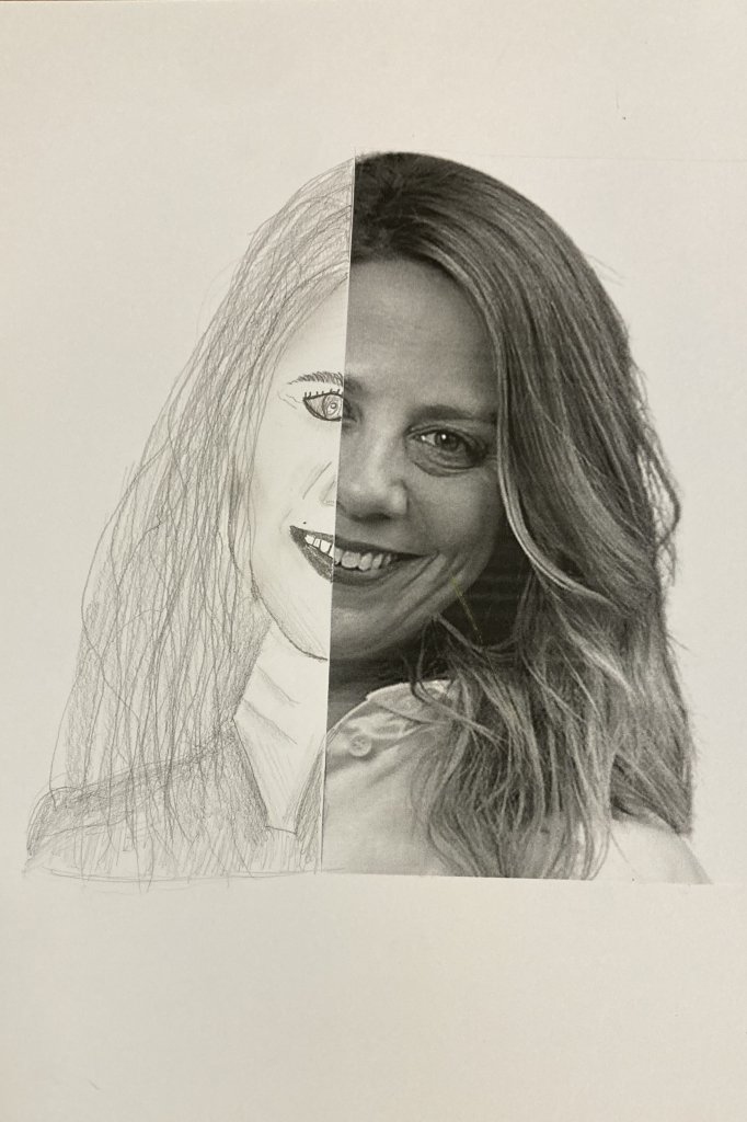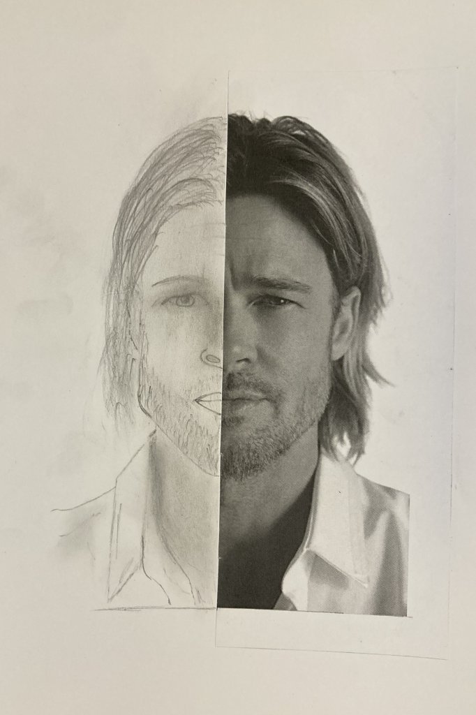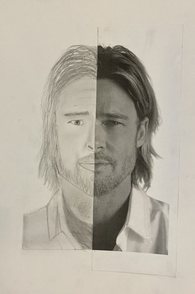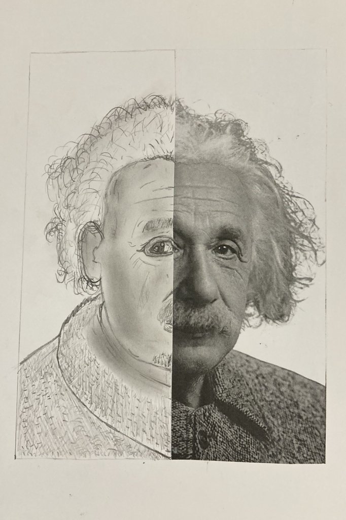 Ve výtvarné výchově žáci dostali obrázek, který rozstřihli na polovinu. Jednu polovinu nalepili a druhou pečlivě dokreslili tak, aby nebyl patrný rozdíl oproti originálu. Práce se jim velmi povedly.