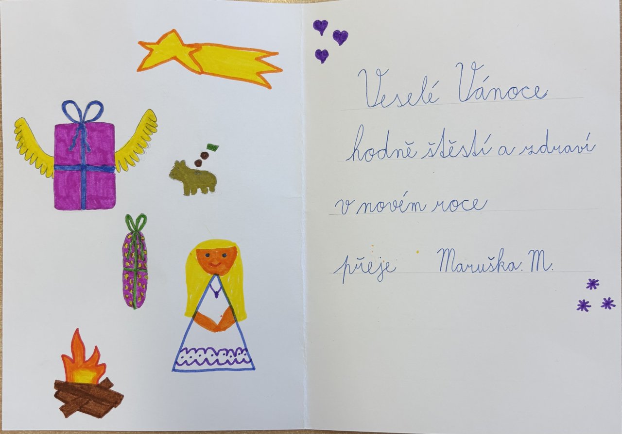Vánoční přání se svátečními vzkazy vytvořili žáci třetí třídy. Vyrobili si také originální ozdoby na vánoční stromečky.