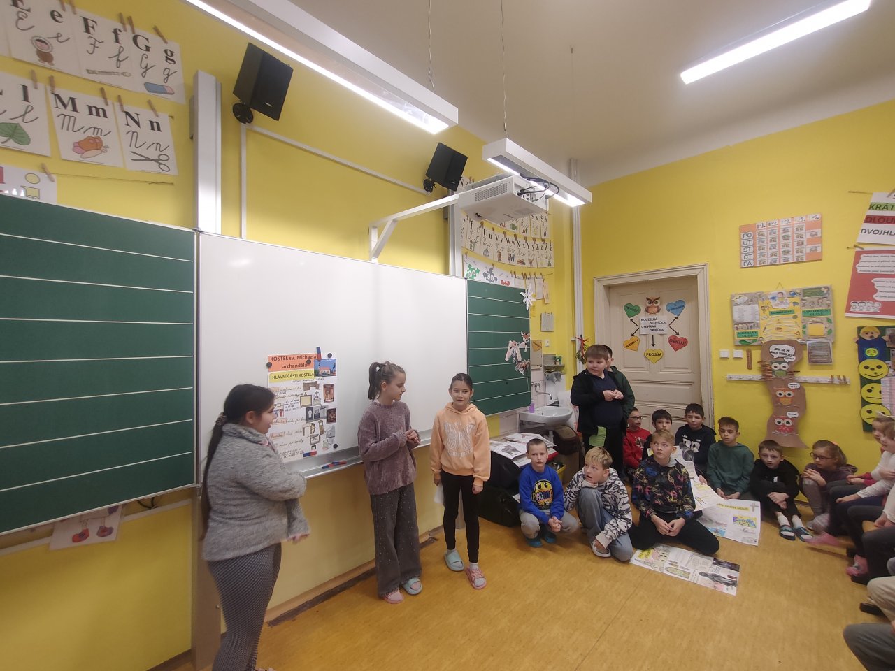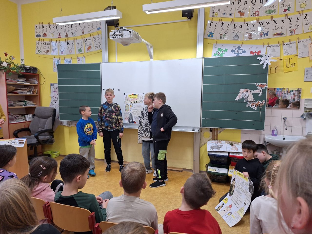 Datum: 19. 12. 2025V rámci projektu se jednotlivé třídy věnovaly různým tématům z prostředí obce. První třída zpracovala téma hasičské zbrojnice a práce hasičů, druhá třída se zaměřila na myslivecká zařízení a stavby, třetí třída poznávala místní kostel. Výsledky své práce žáci společně prezentovali a navzájem se seznámili s jednotlivými tématy.