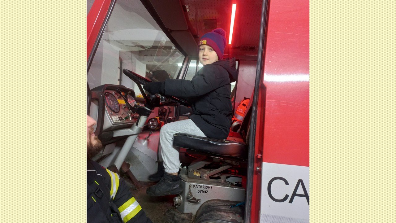 Datum: 19. 12. 2025V rámci celoškolního projektu navštívili žáci první třídy místní hasičskou zbrojnici. Návštěva se dětem velmi líbila a odnesly si z ní spoustu zážitků i nových poznatků. Největší radost měly z možnosti posadit se na místo řidiče hasičského auta a prohlédnout si vybavení, které hasiči při své práci používají.