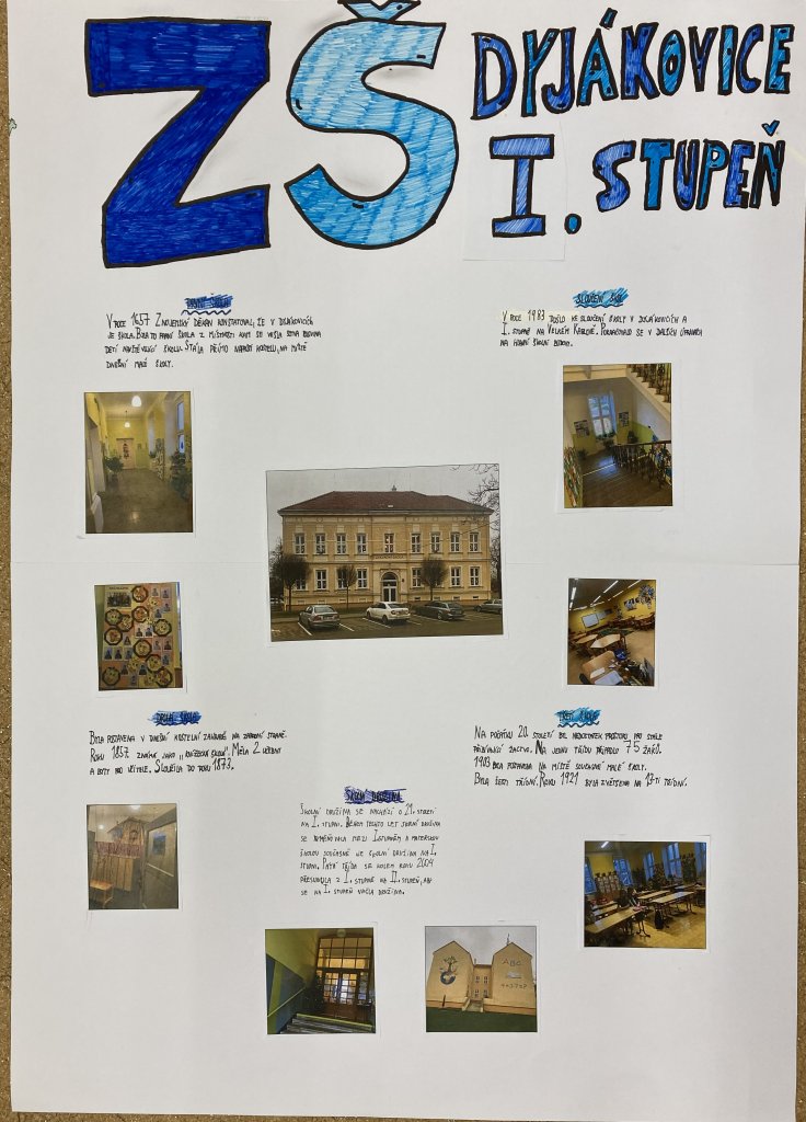 Žáci se rozdělili do tří skupin. První skupina se zabývala historií a současným stavem budovy 1. stupně. Mapovala její vznik, změny v průběhu let i to, jak vypadá dnes.
