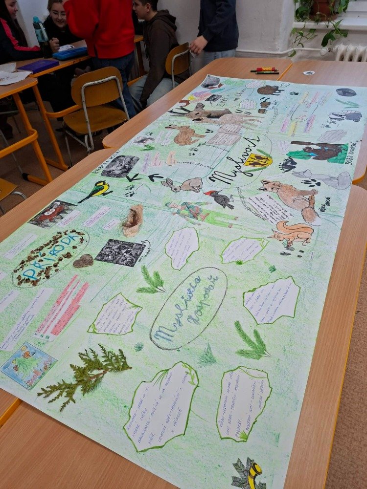 Po návratu do školy jsme se rozdělili do šesti skupin po čtyřech žácích. Dva žáci v každé skupině připravovali prezentaci a další dva vytvářeli myšlenkovou mapu – plakát.