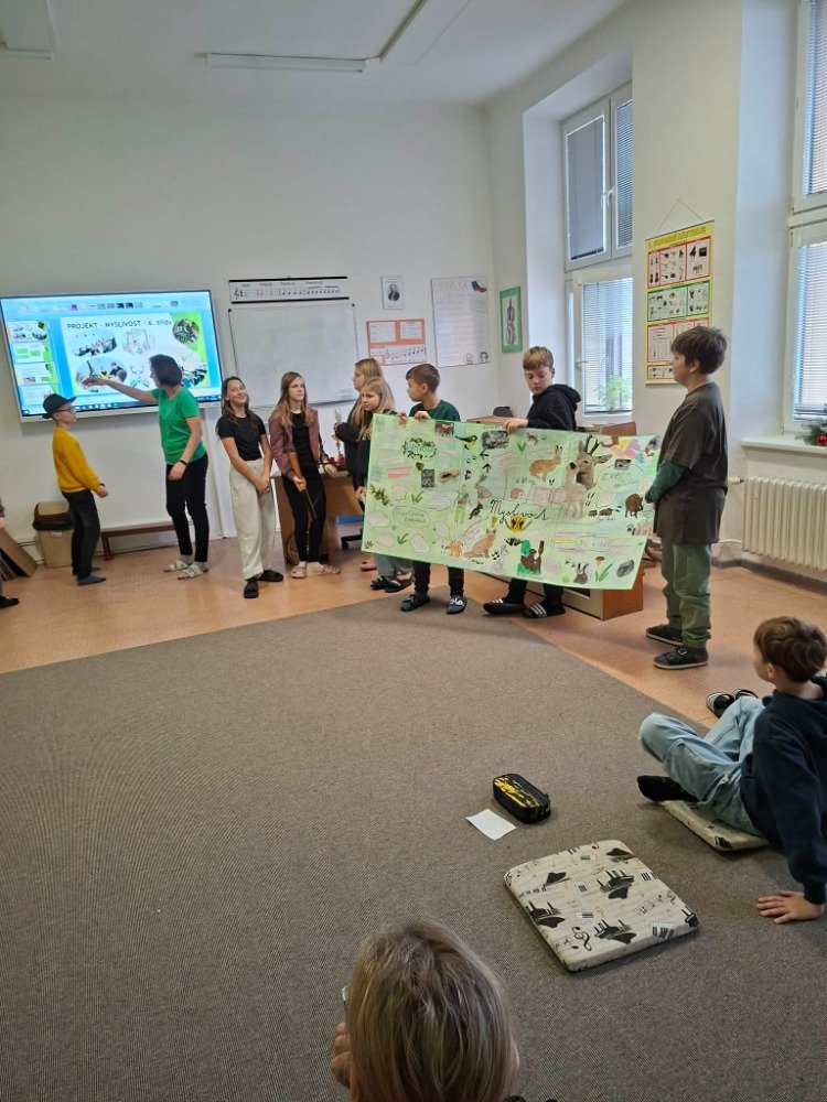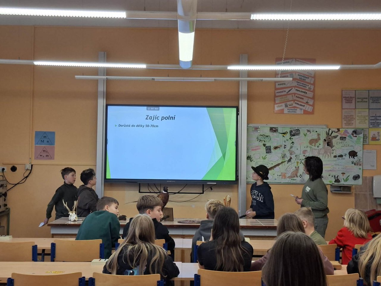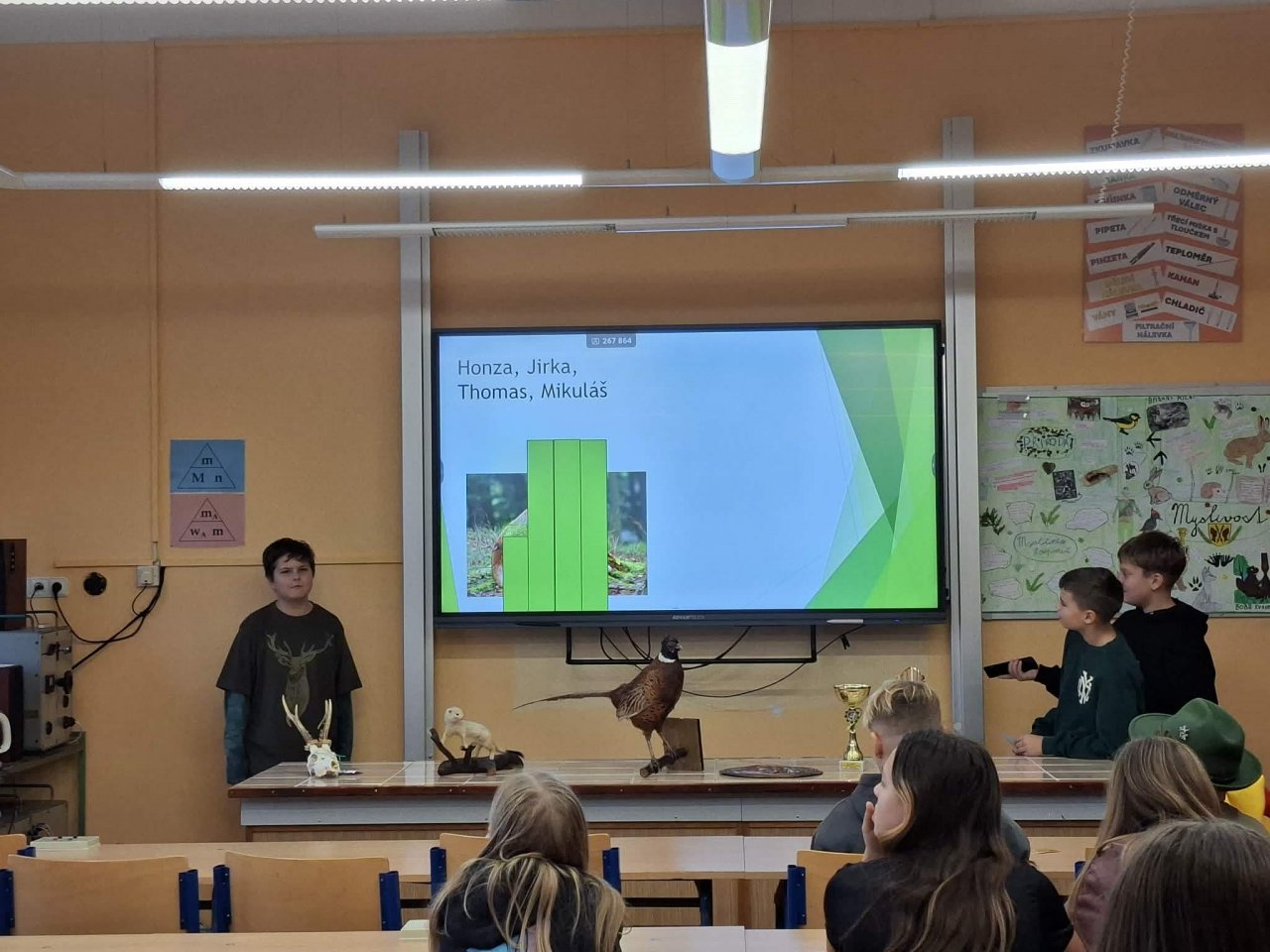 Na závěr jsme společně zazpívali píseň Hajný je lesa pán. Projekt se nám moc líbil a dozvěděli jsme se spoustu nových věcí o přírodě a myslivosti.