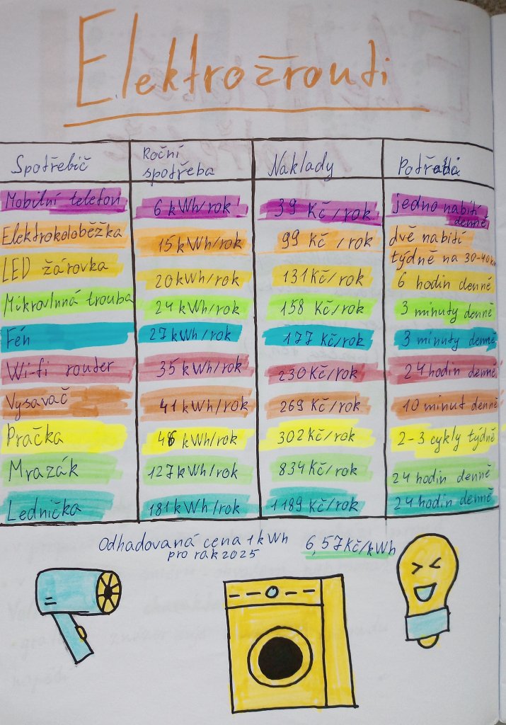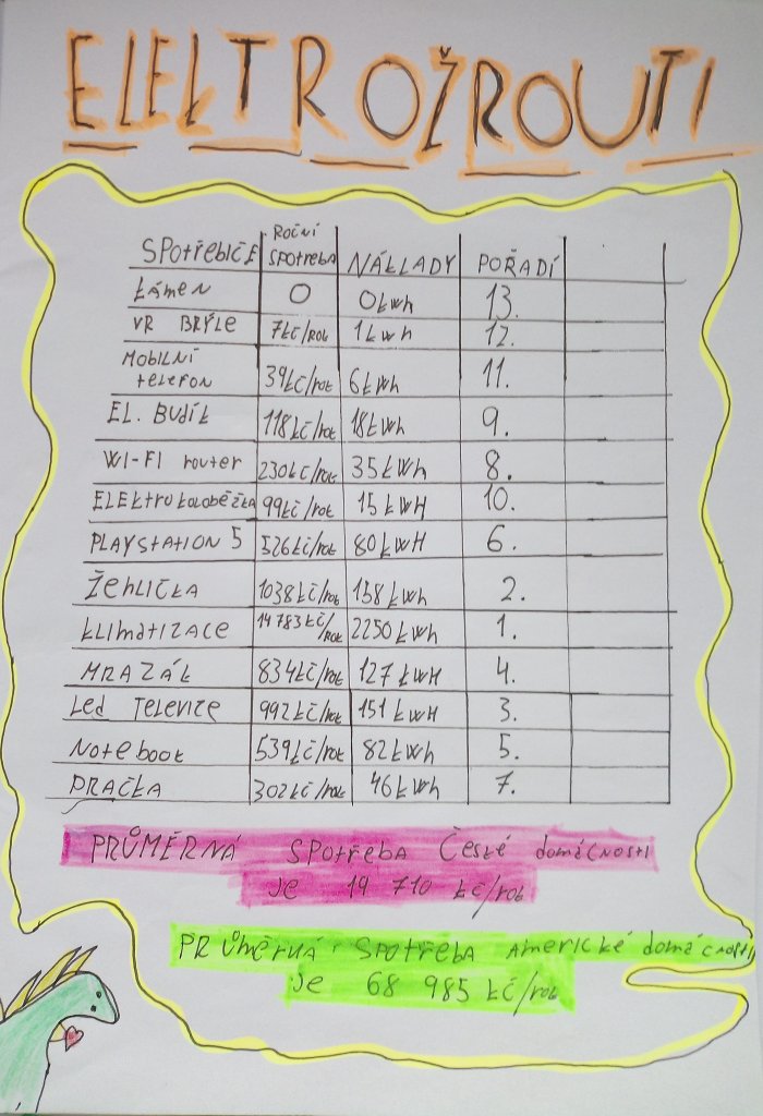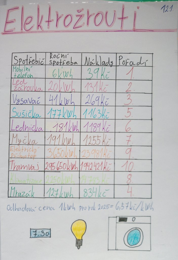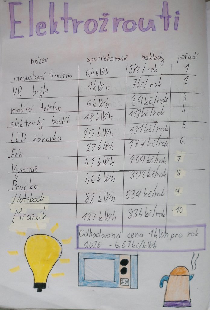 Hodina byla zakončena diskusí o tom, jak lze spotřebu elektřiny snížit a chovat se úsporněji. Aktivita podpořila porozumění tématu i praktické uvažování o každodenním životě.