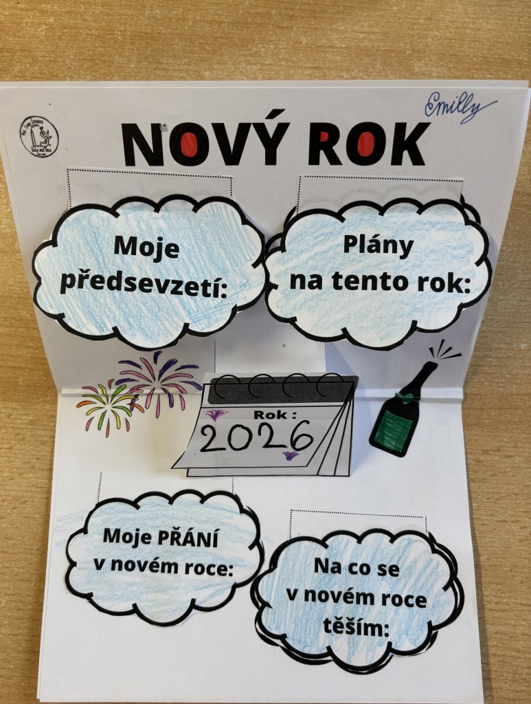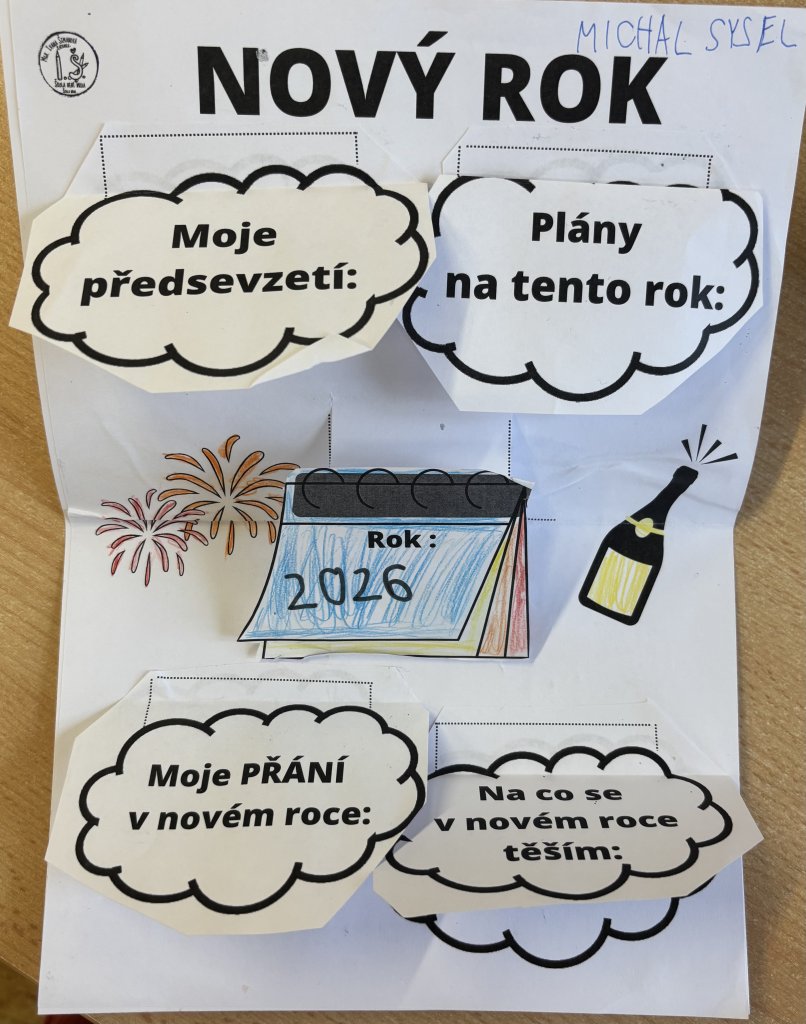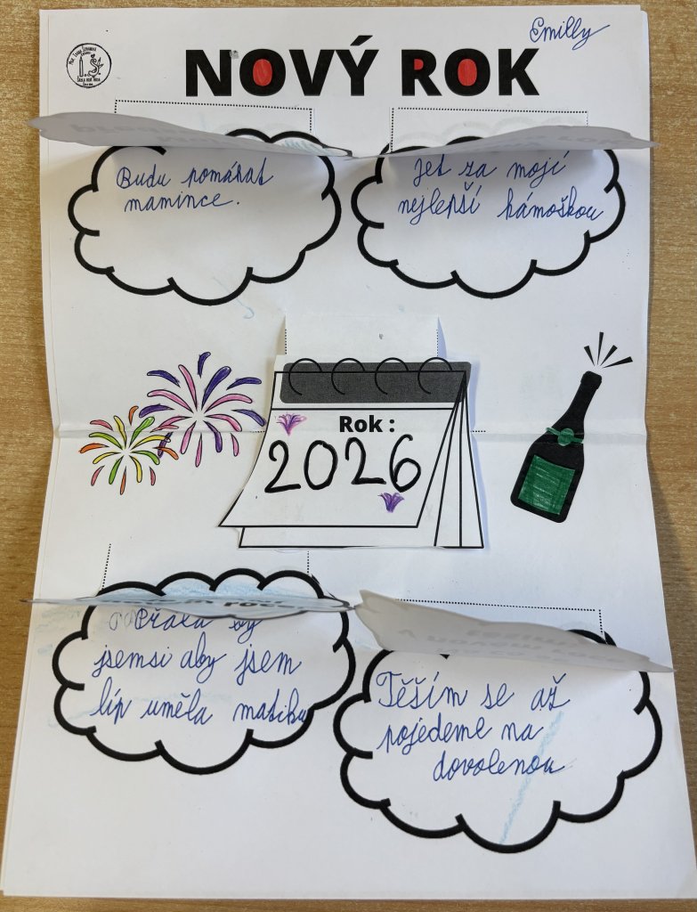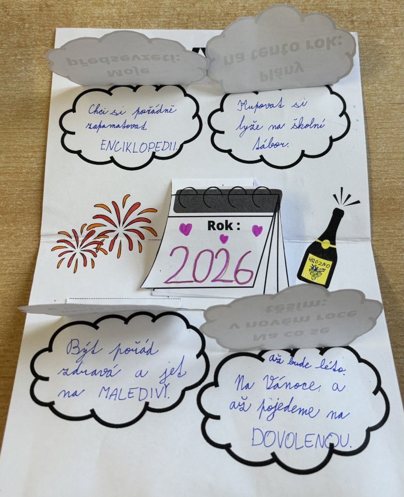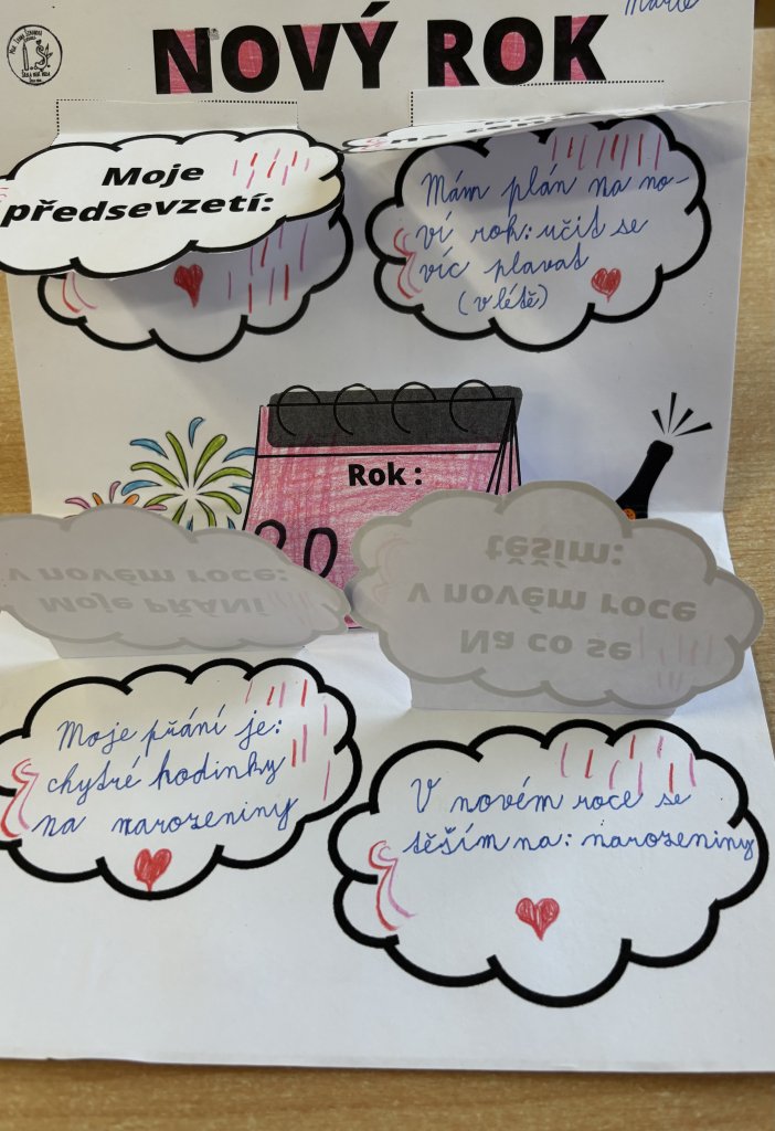 Po návratu do školy po vánočních prázdninách tvořili žáci 3. třídy lapbook, do kterého si zapisovali svá předsevzetí, plány na tento rok, přání do nového roku a také to, na co se těší.