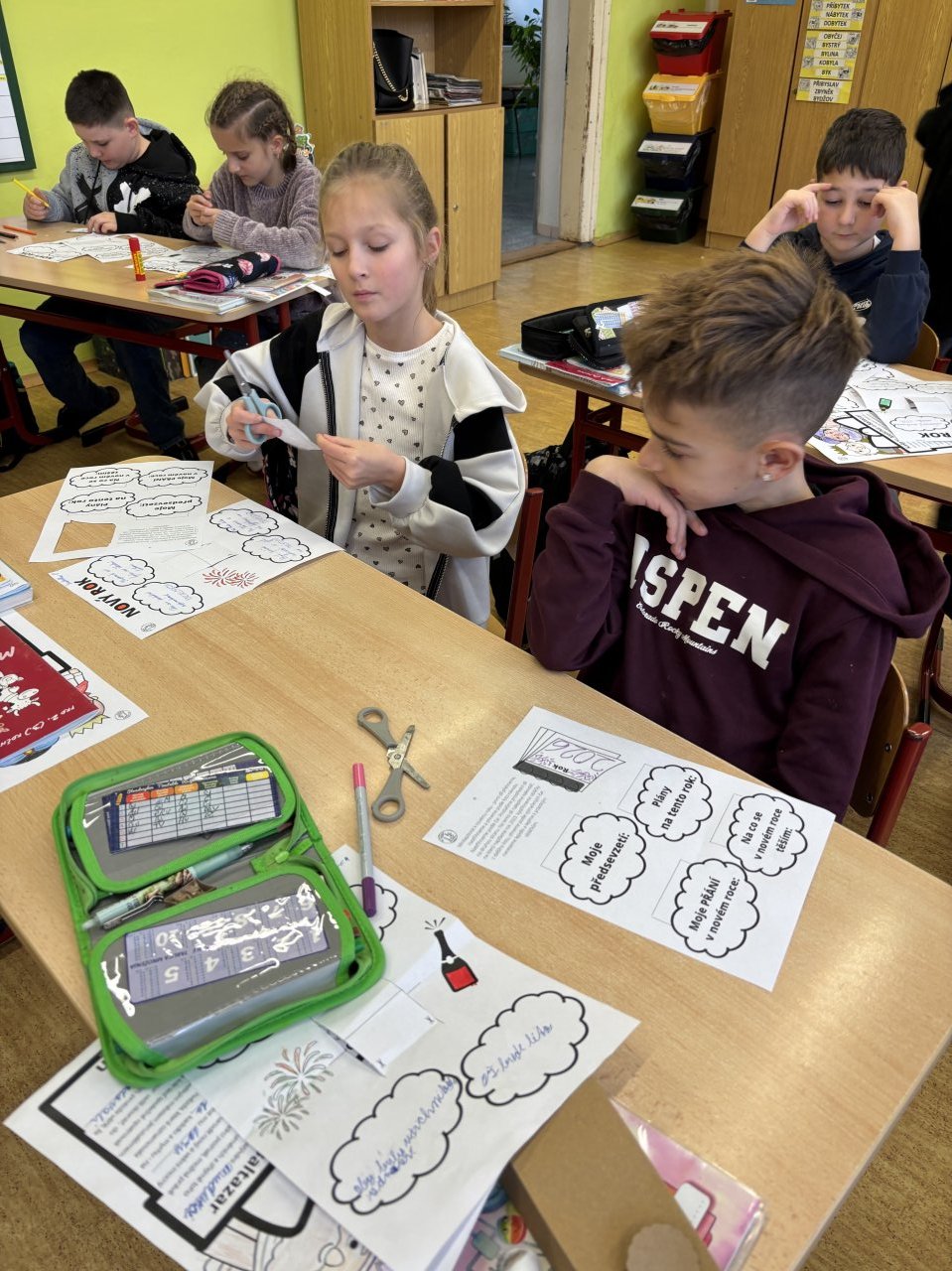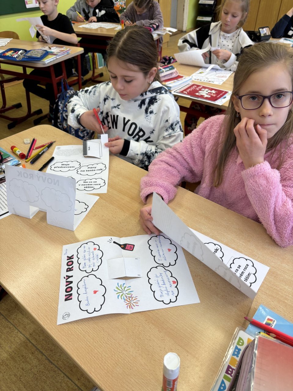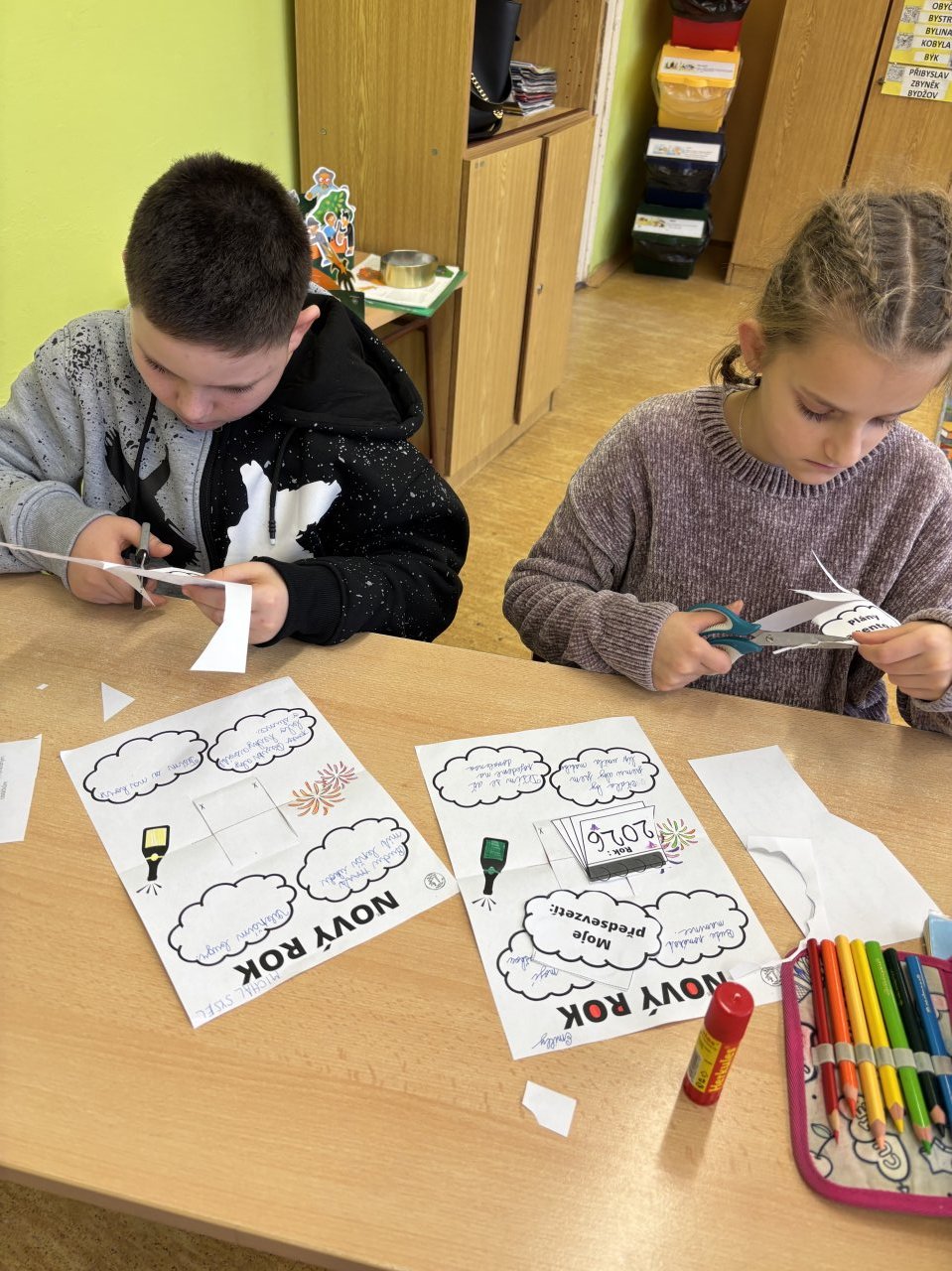 Po návratu do školy po vánočních prázdninách tvořili žáci 3. třídy lapbook, do kterého si zapisovali svá předsevzetí, plány na tento rok, přání do nového roku a také to, na co se těší.