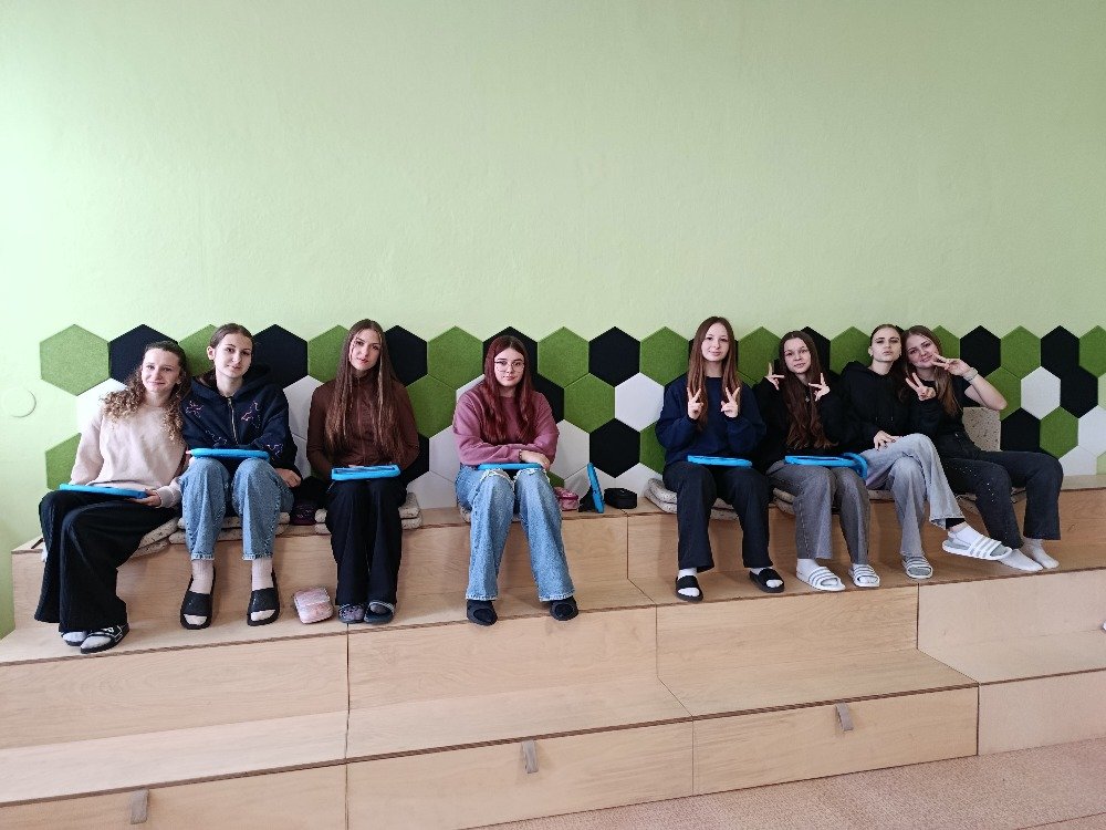 Zároveň se v učebně hudební výchovy přidaly nové barevné obklady stěn v okolí rohových lavic, které přispěly i ke zlepšení vzhledu učebny.