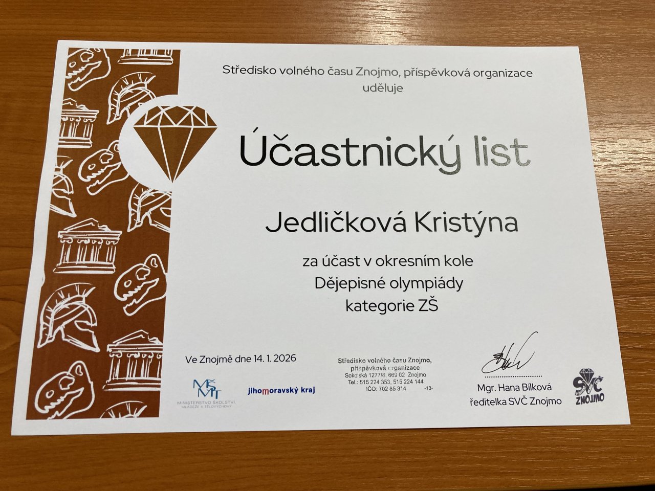 Datum: 17. 1. 2026Ve středu 14. ledna 2026 se na Gymnáziu ve Znojmě uskutečnilo okresní kolo Dějepisné olympiády. Soutěž byla určena žákům 7.–9. ročníků, kteří letos řešili shodné zadání.