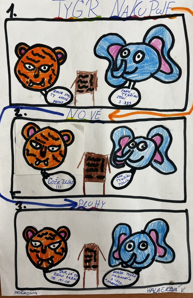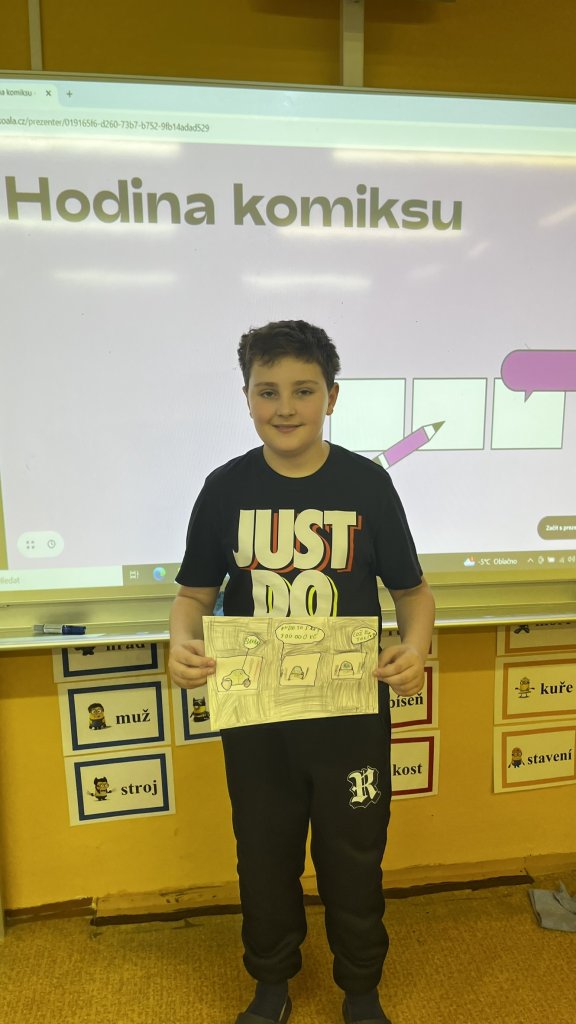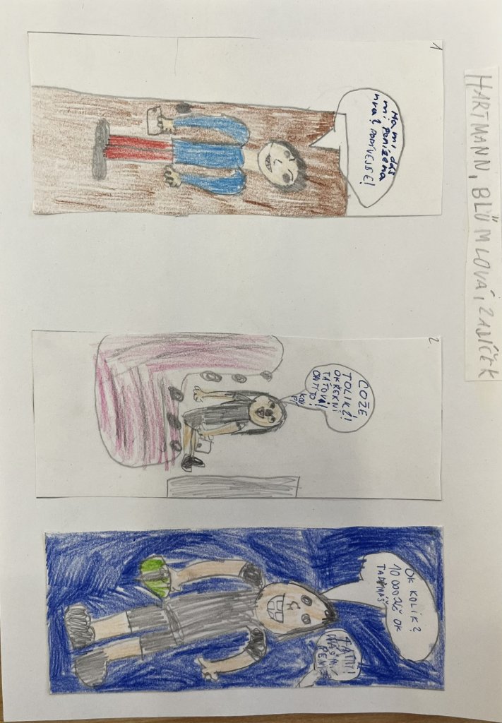 Datum: 26. 1. 2026Žáci 5. ročníku se zapojili do kreativního projektu ze Skoaly, který propojil vyprávění příběhu, výtvarnou tvorbu a přemýšlení o penězích v každodenním životě. Výsledkem byly originální kreslené komiksy plné nápadů, humoru i překvapivých situací.