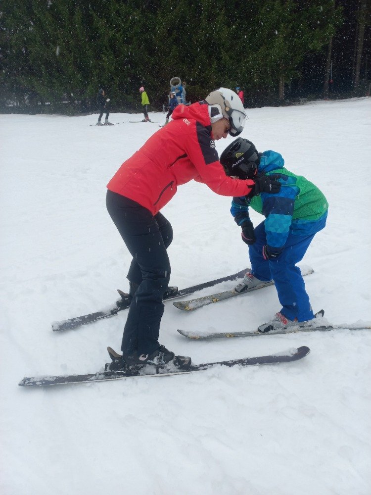 Ihned v pondělí jsme se rozdělili do tří skupin a hned jsme se pustili do intenzivního tréninku. Od úterý dělaly děti velké pokroky – někteří se poprvé vydali na dlouhou sjezdovku a vyzkoušeli si jízdu s kotvou místo pomy. Vše zvládli na jedničku.