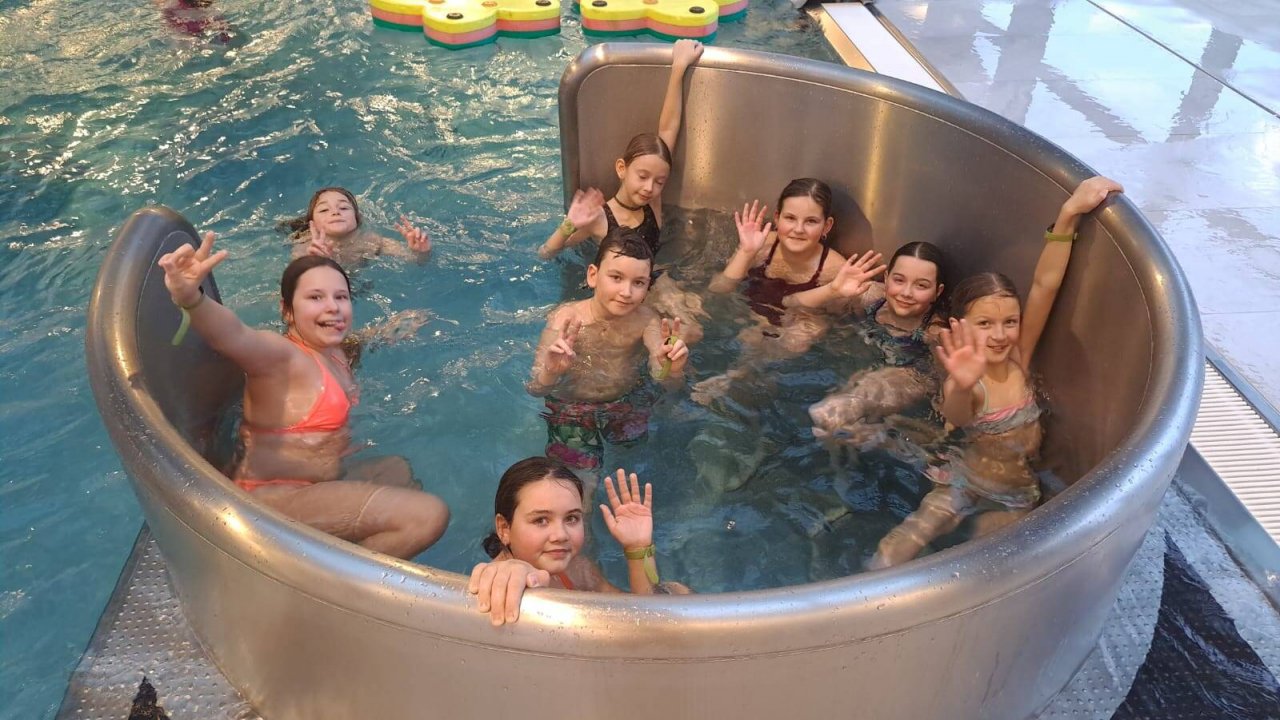 Za své výkony byly děti odměněny odpoledním pobytem v bazénu, kde si užily dětské atrakce i tobogán.