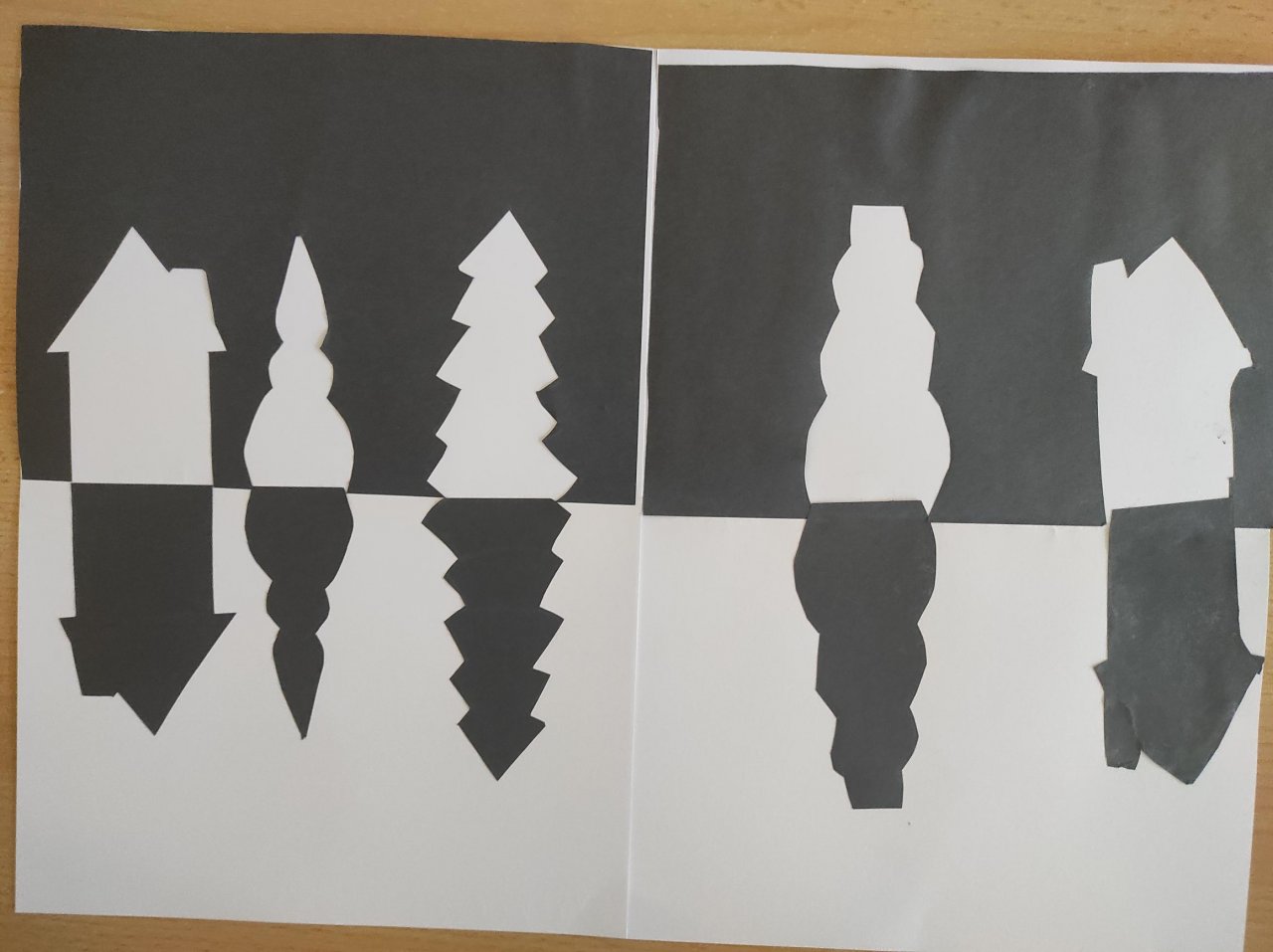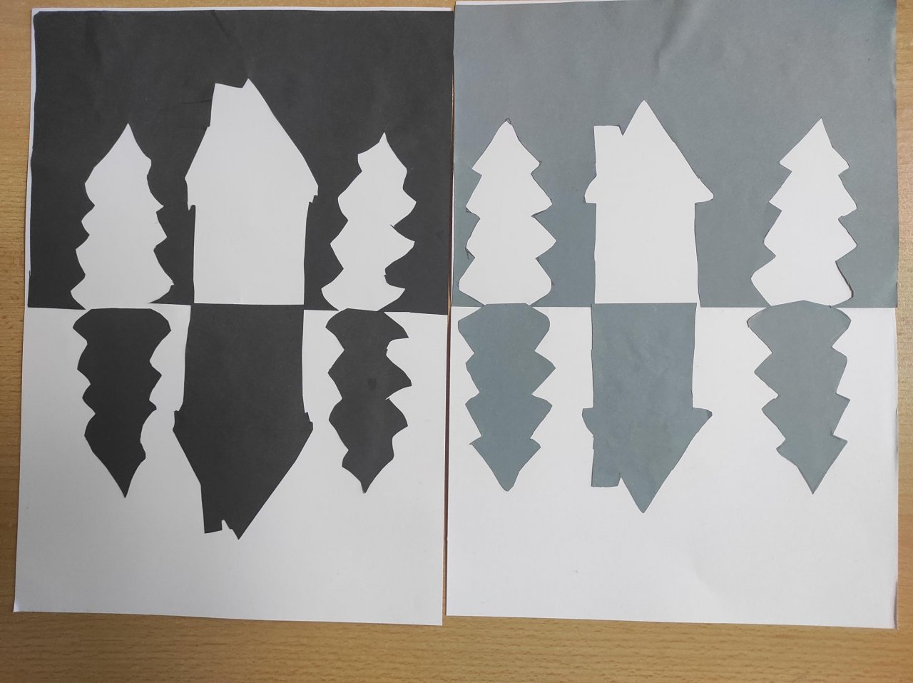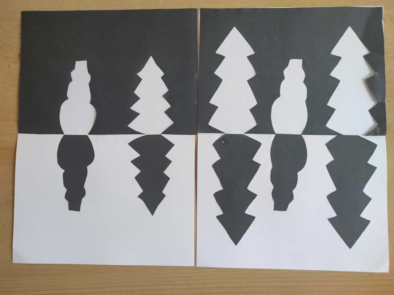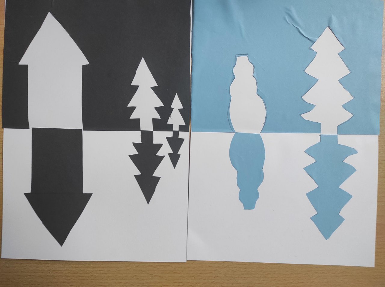 Zimní krajina – vyklápěcí technikou děti vytvořily zimní krajinu, kterou si předkreslily, vystřihly a následně nalepily.