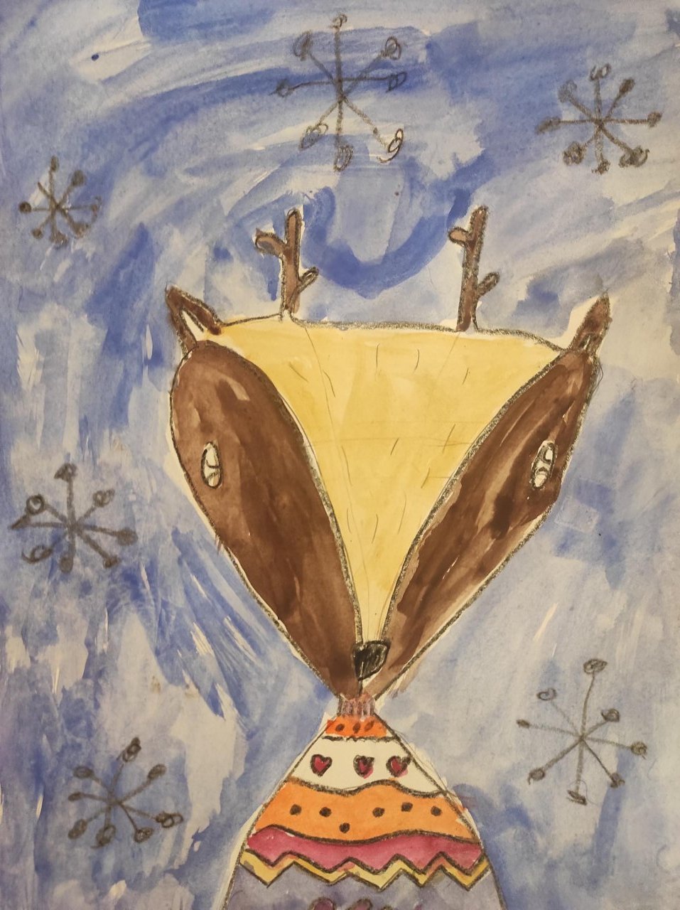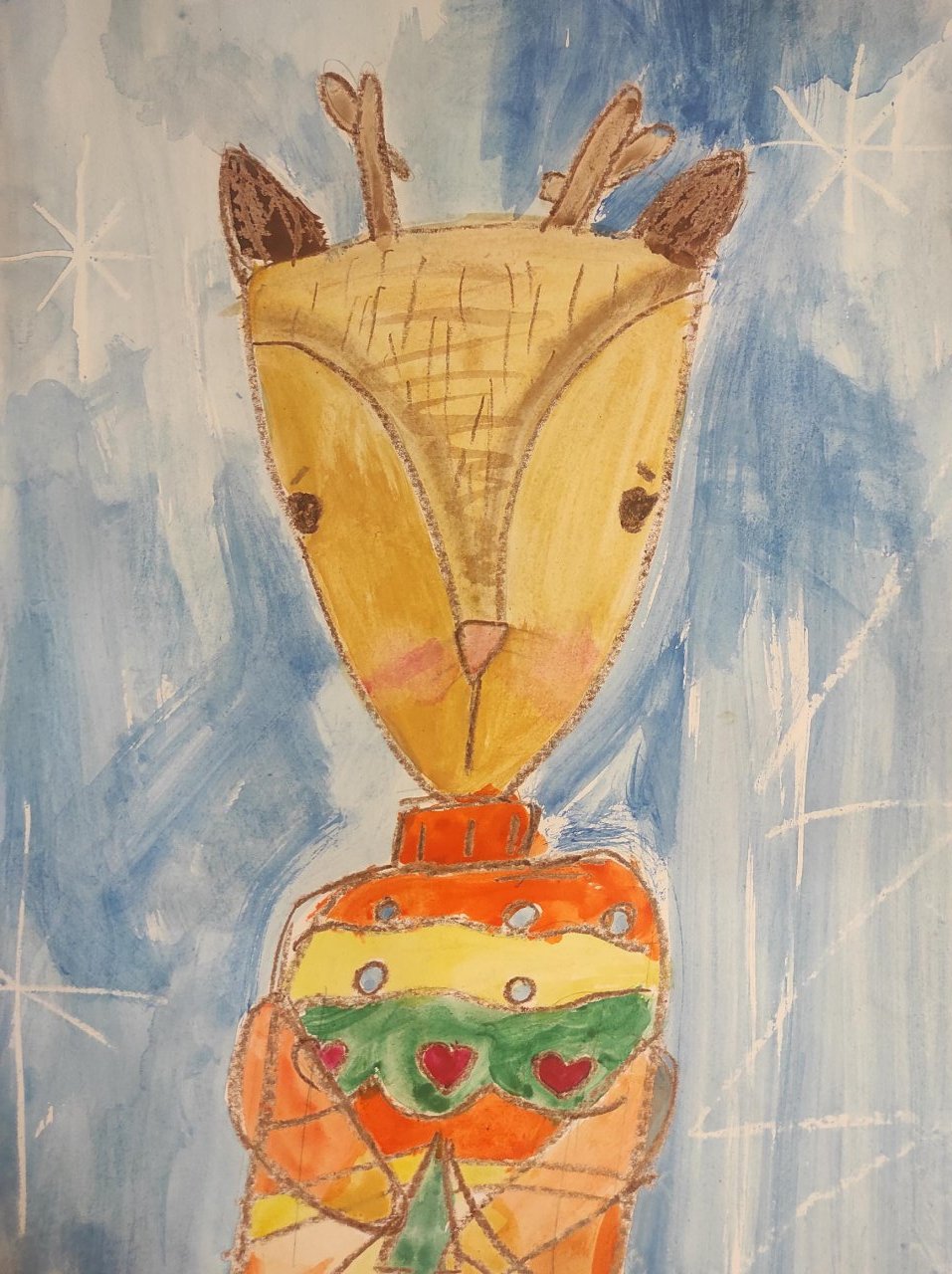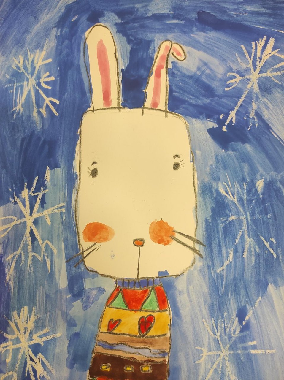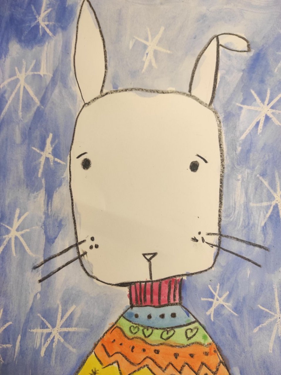 Zimní zvěř – pomocí návodného videa děti vodovými barvami a voskovým pastelem malovaly zvířátka v zimním období.
