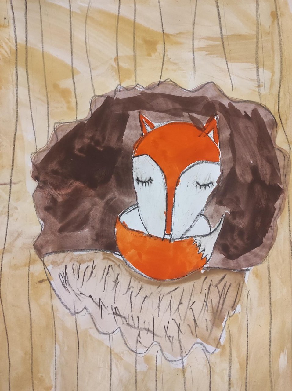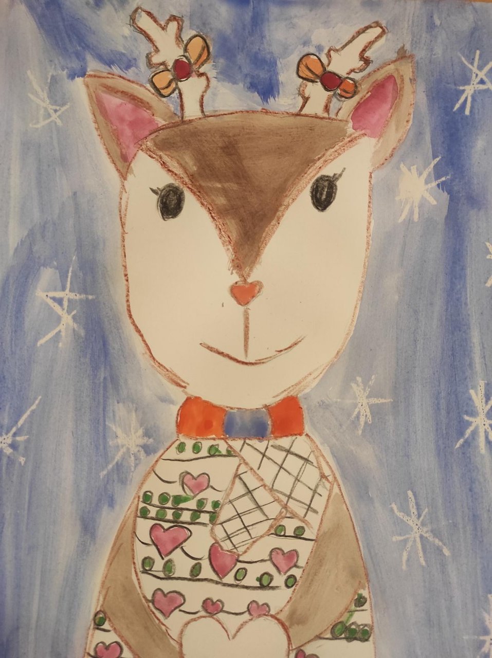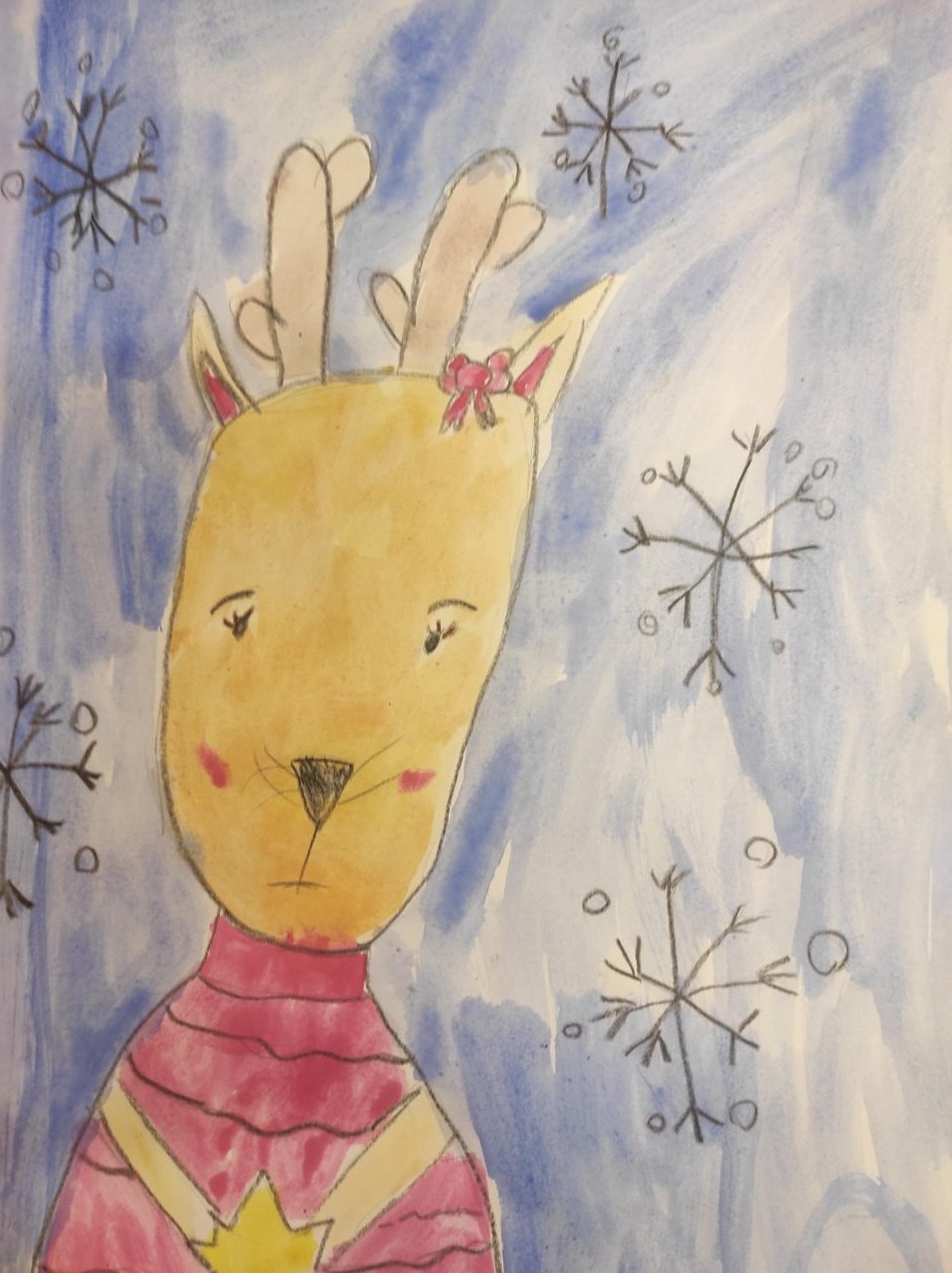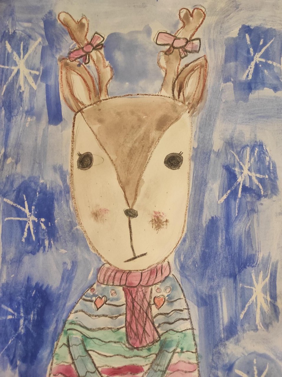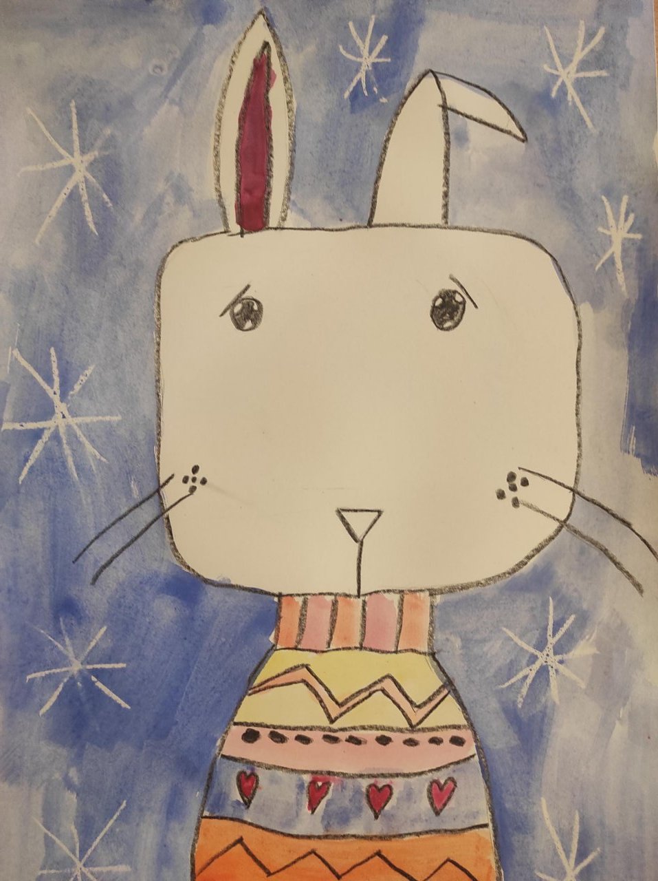 Zimní zvěř – pomocí návodného videa děti vodovými barvami a voskovým pastelem malovaly zvířátka v zimním období.