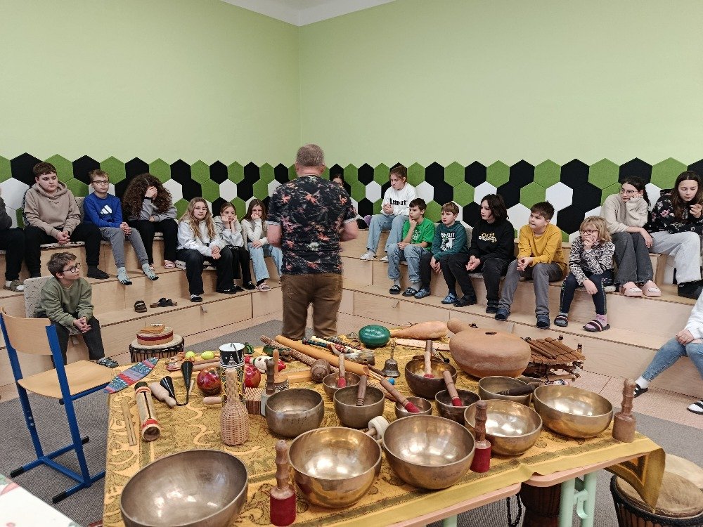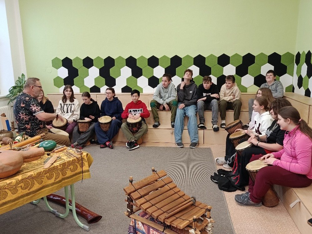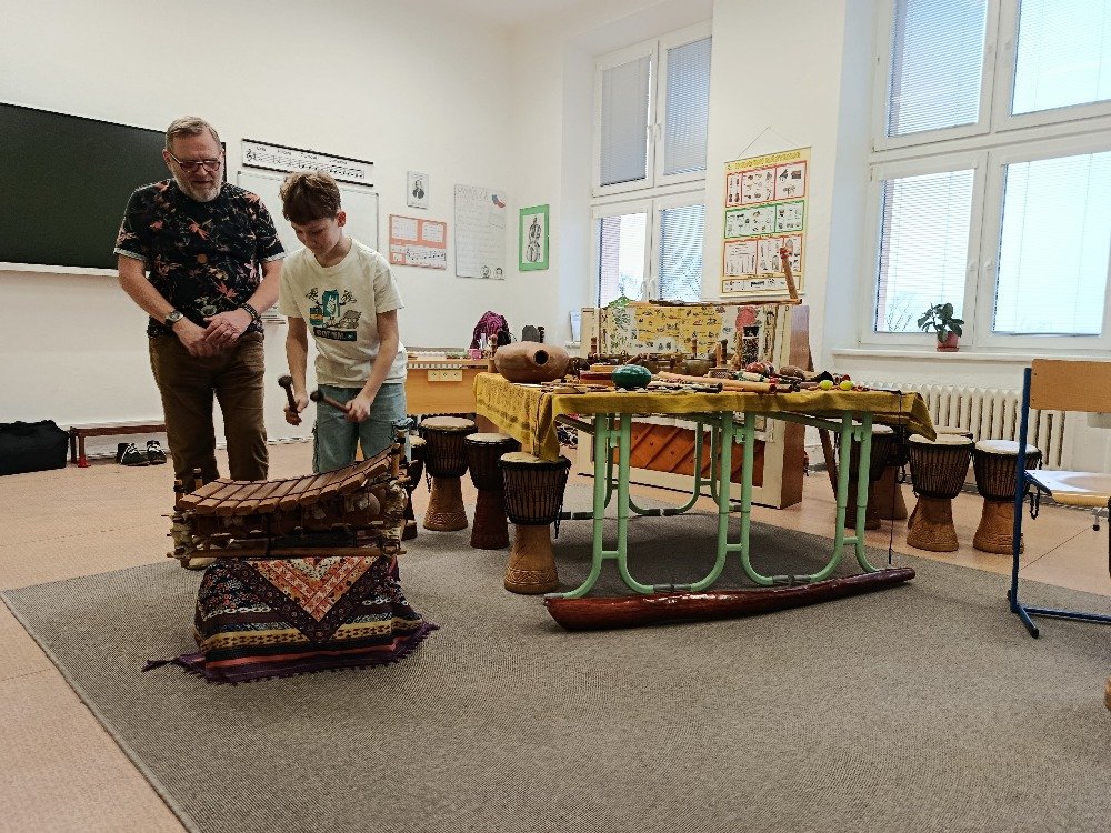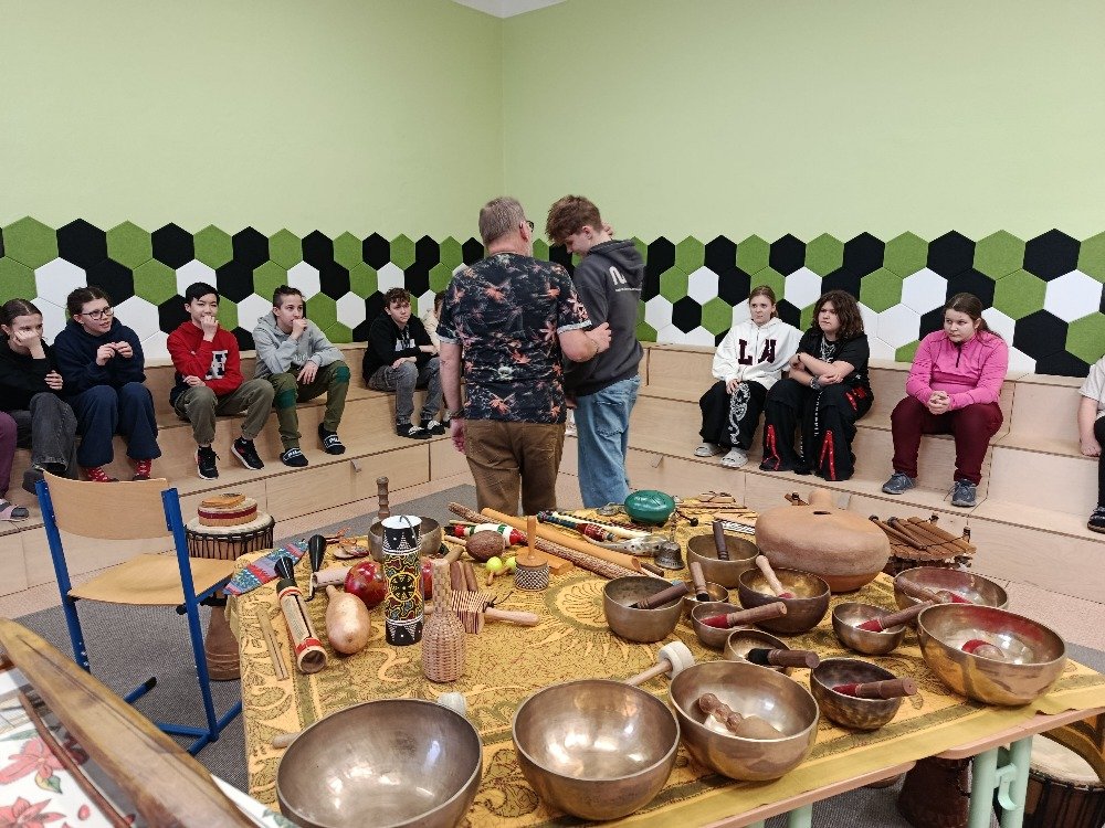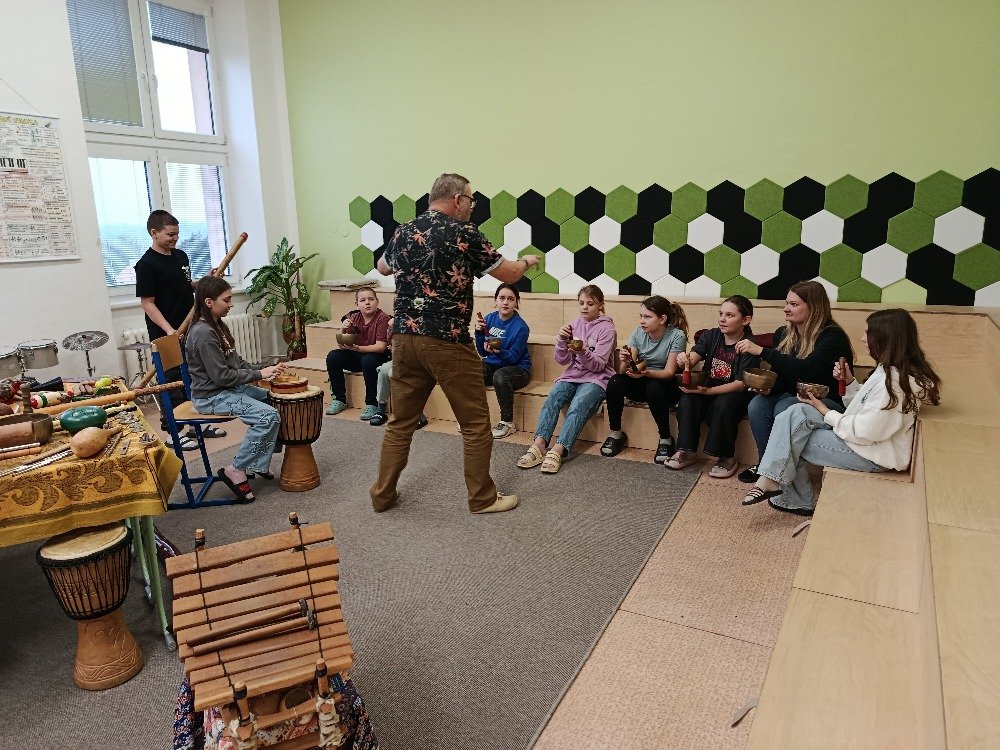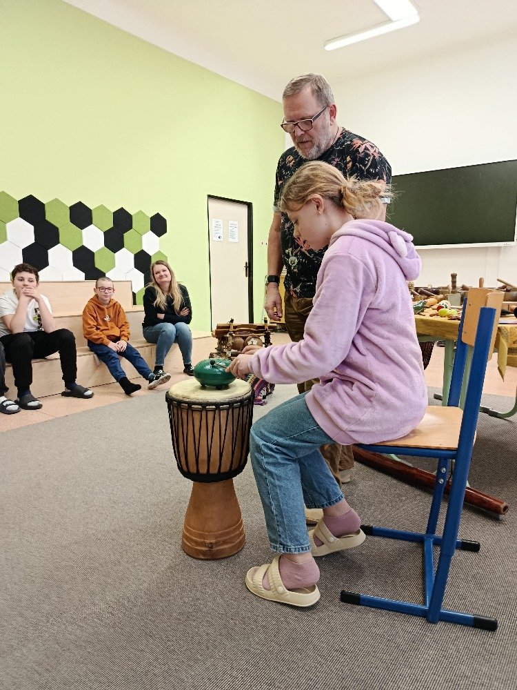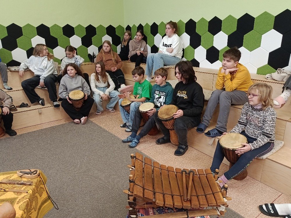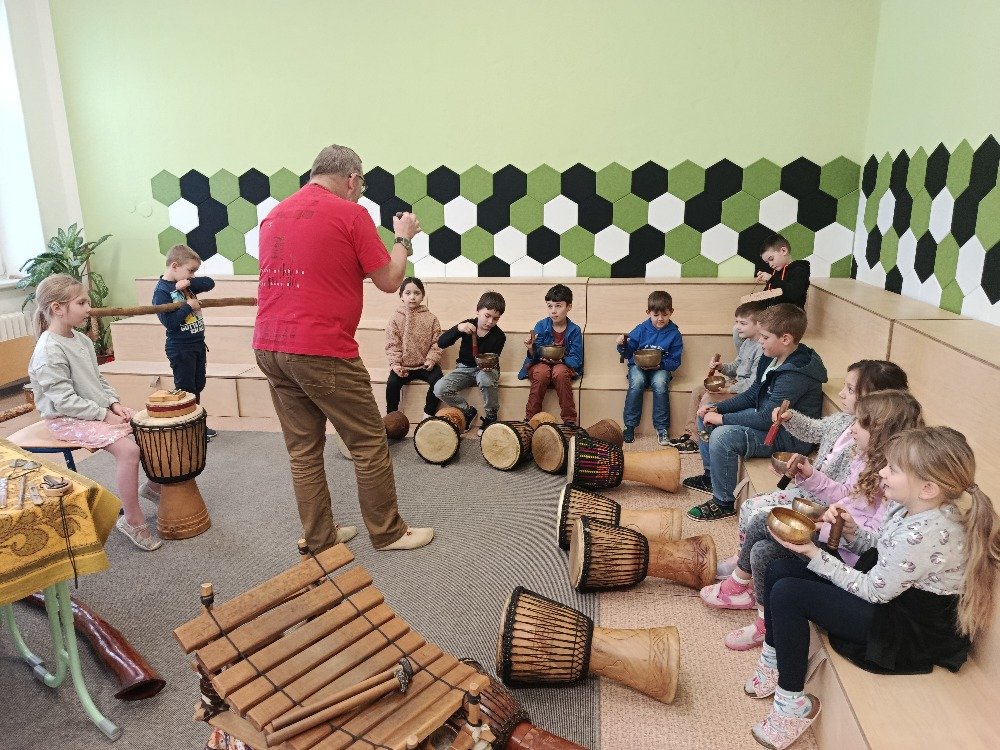 Děti si samy vyzkoušely bubnování a hru na vybrané nástroje, někteří se k hudbě přidali i zpěvem. Setkání bylo pro žáky příjemným a podnětným zážitkem, který podpořil jejich kreativitu i společný prožitek z hudby