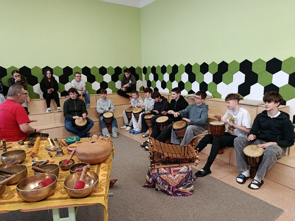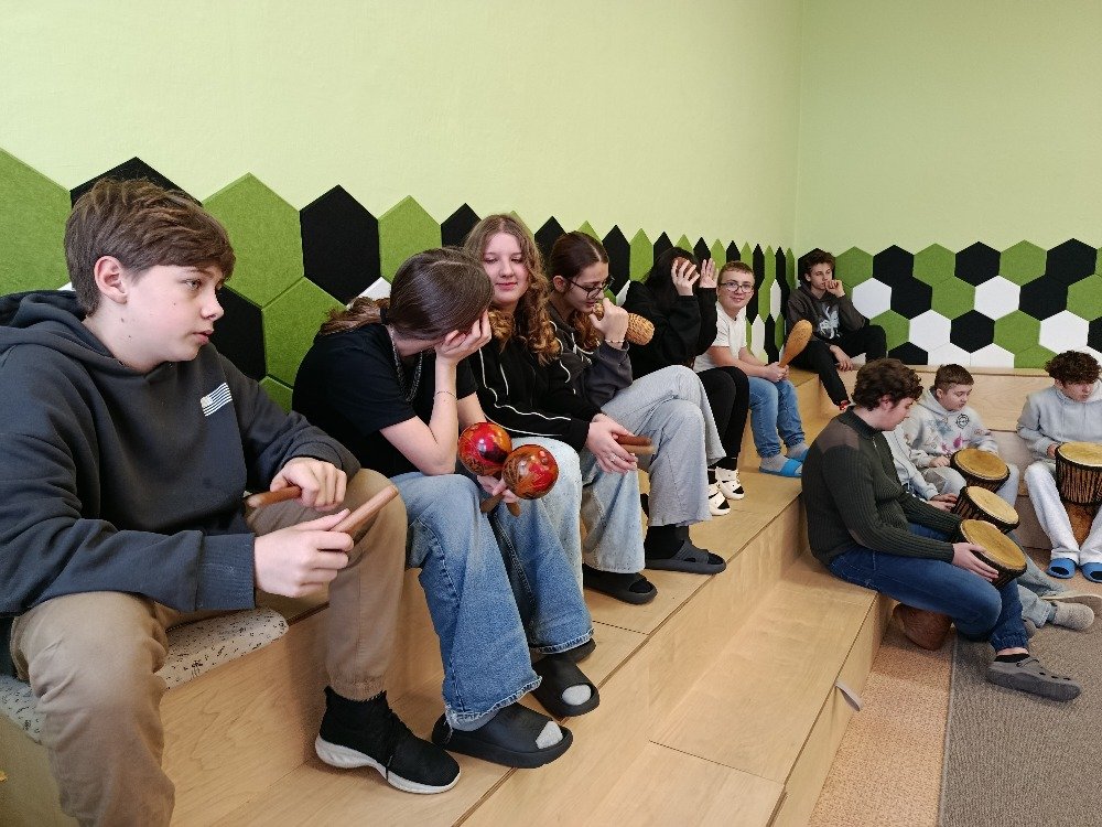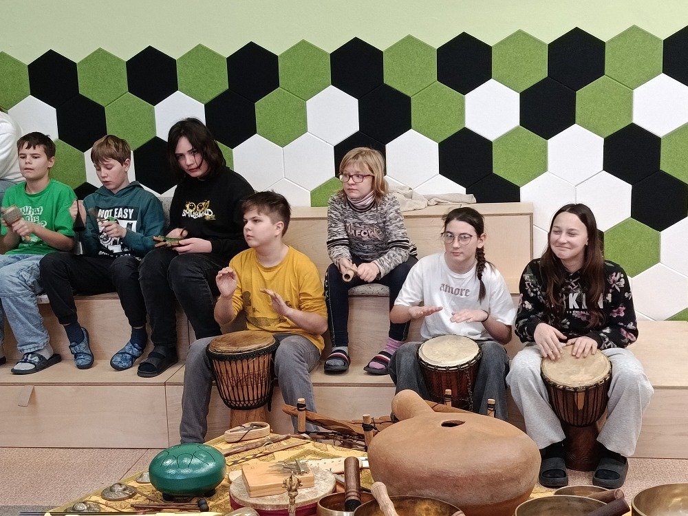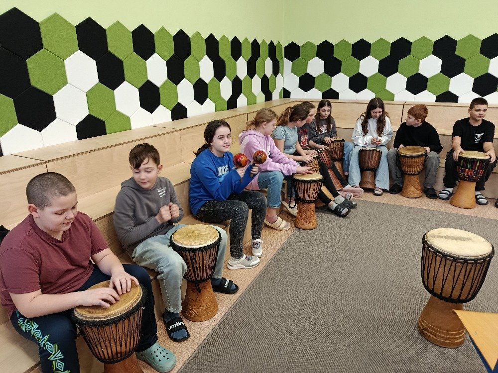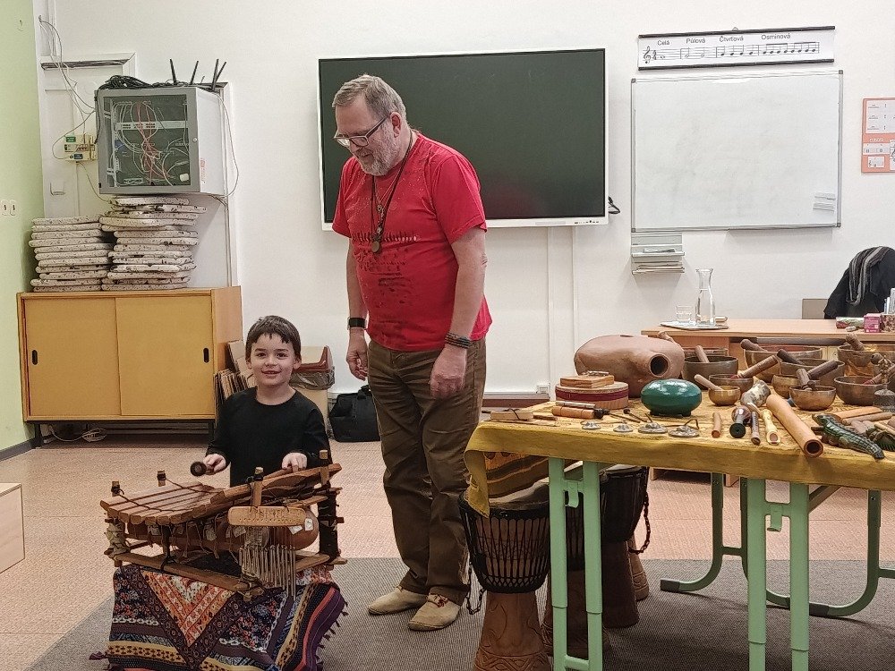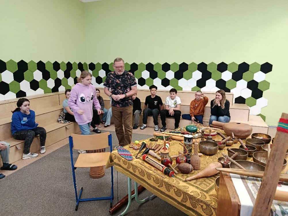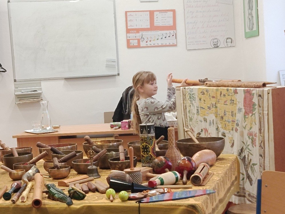 Děti si samy vyzkoušely bubnování a hru na vybrané nástroje, někteří se k hudbě přidali i zpěvem. Setkání bylo pro žáky příjemným a podnětným zážitkem, který podpořil jejich kreativitu i společný prožitek z hudby