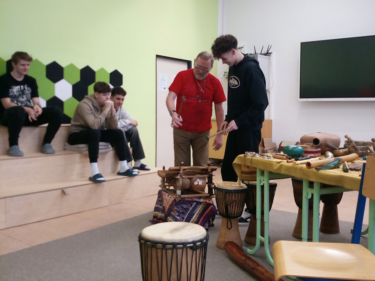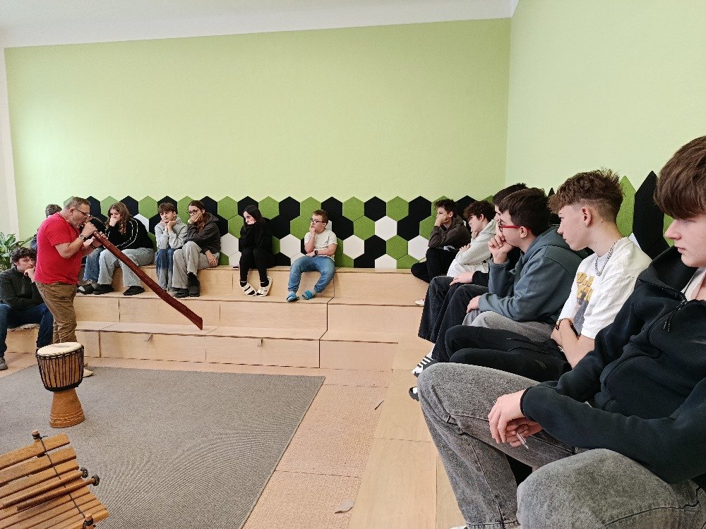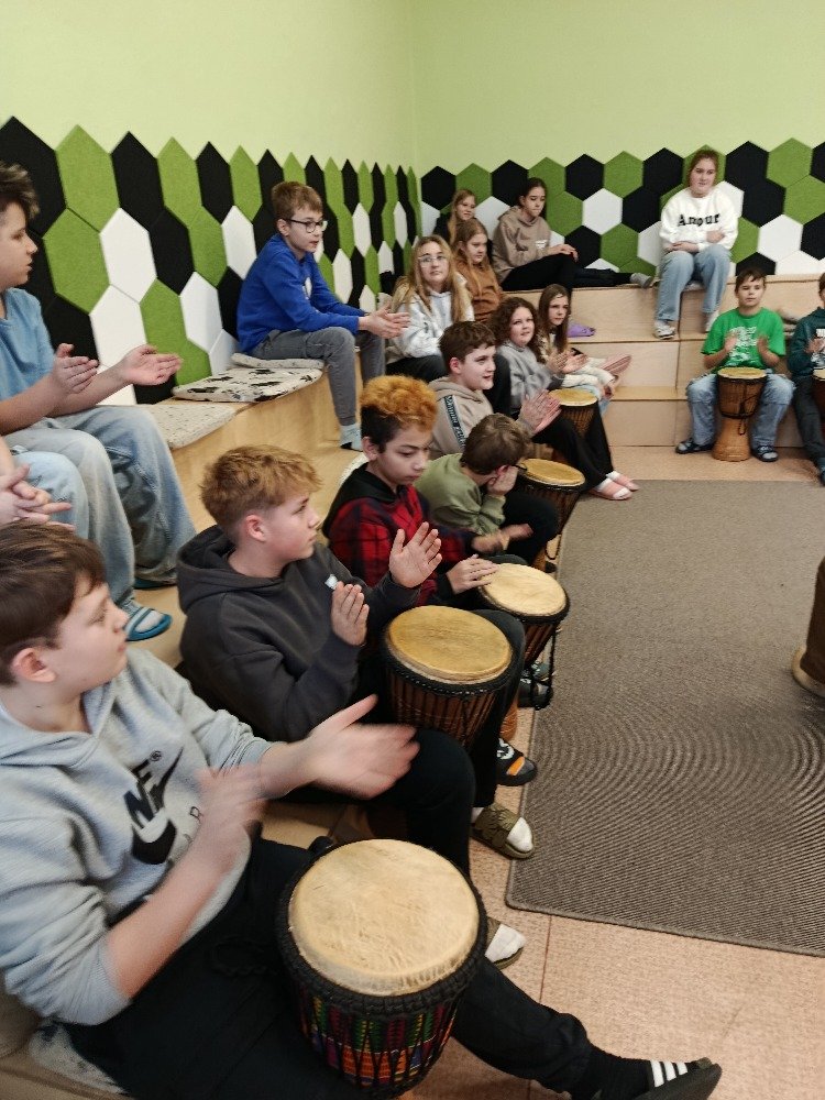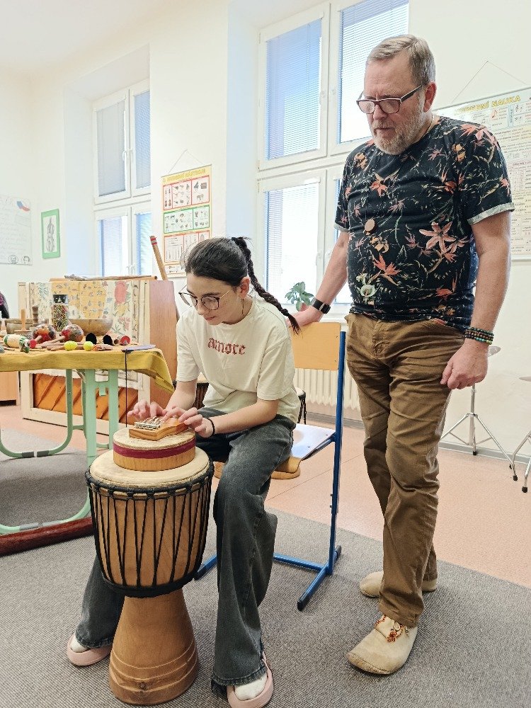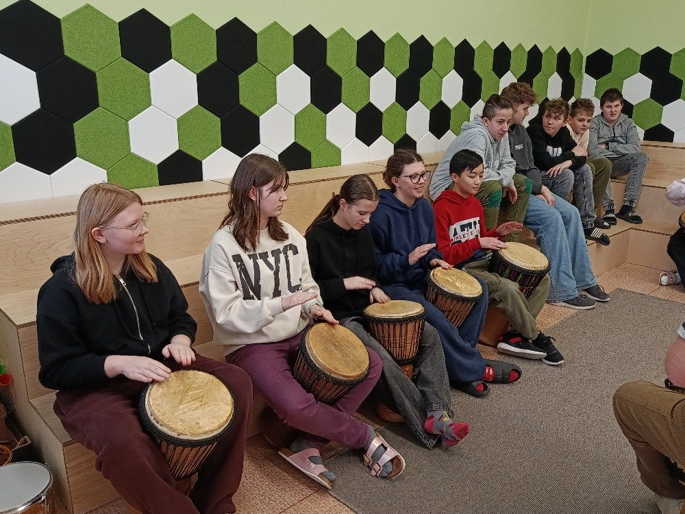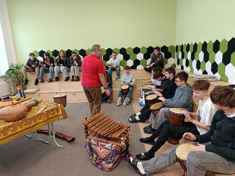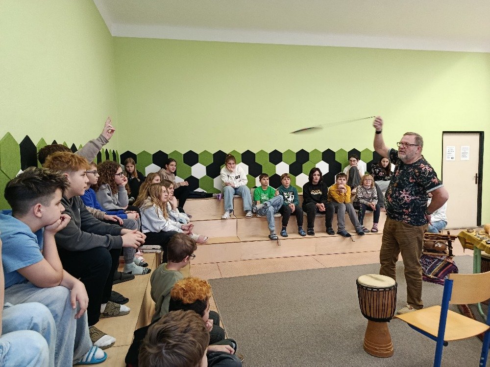 Děti si samy vyzkoušely bubnování a hru na vybrané nástroje, někteří se k hudbě přidali i zpěvem. Setkání bylo pro žáky příjemným a podnětným zážitkem, který podpořil jejich kreativitu i společný prožitek z hudby