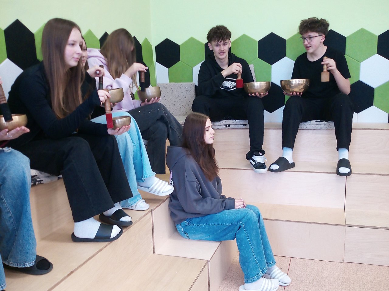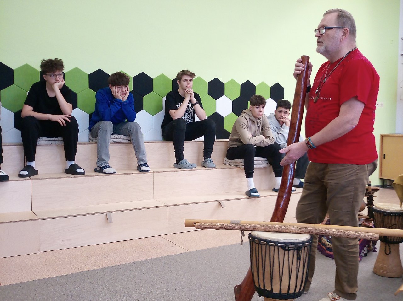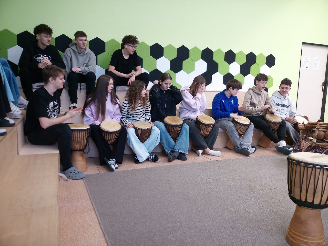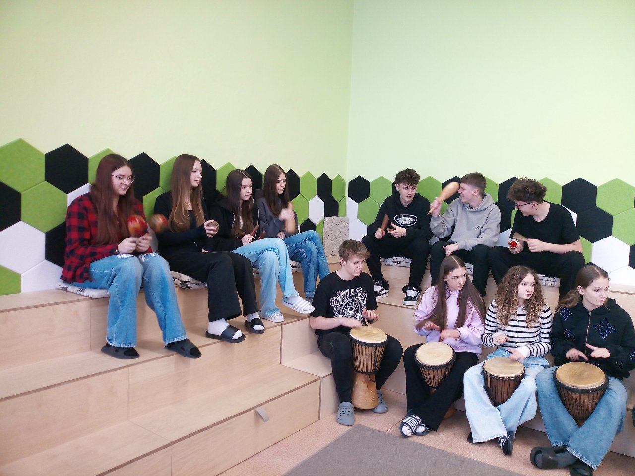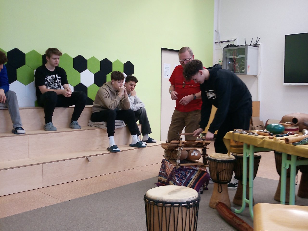 Děti si samy vyzkoušely bubnování a hru na vybrané nástroje, někteří se k hudbě přidali i zpěvem. Setkání bylo pro žáky příjemným a podnětným zážitkem, který podpořil jejich kreativitu i společný prožitek z hudby