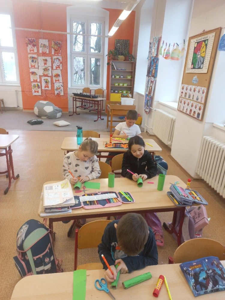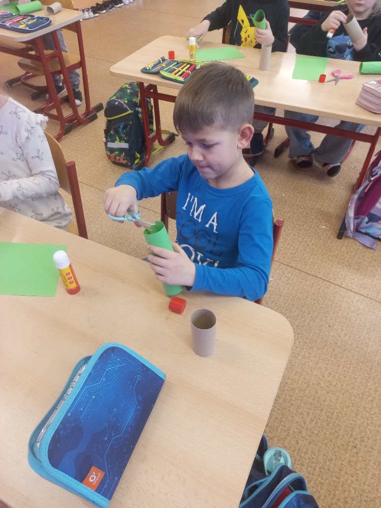 Datum: 13. 2. 2026Tato jednoduchá aktivita ukázala, že tvoření nemusí být složité ani nákladné. Stačí pár zbylých ruliček, chuť pracovat a trocha představivosti. Děti měly radost, že vytvořily něco vlastníma rukama, a zároveň si vyzkoušely, že i věci, které považujeme za odpad, mohou dostat nový smysl.