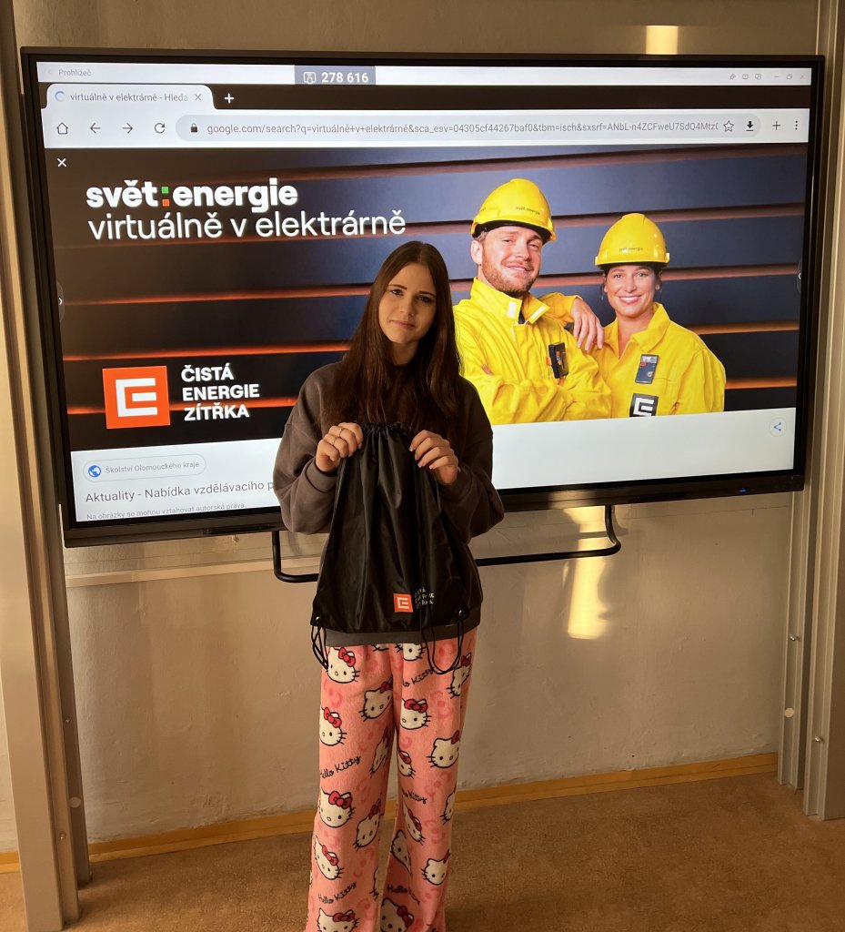 Součástí online návštěvy byla také soutěž pro žáky, ve které mohli naši deváťáci prokázat své znalosti a vyhrát věcné ceny – například powerbanku a další drobné odměny.