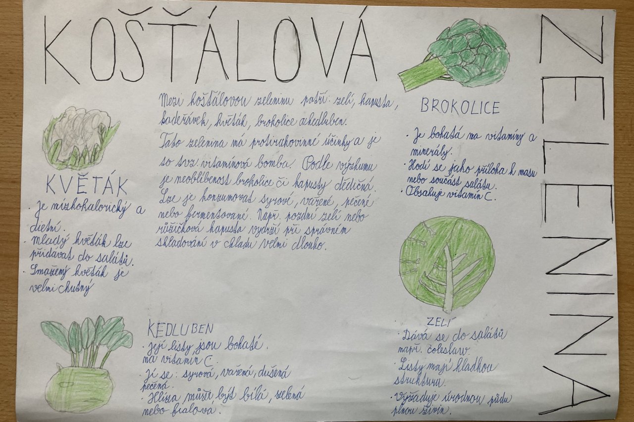 Datum: 24. 2. 2026Žáci pracovali na projektu s názvem Zelenina. Každá skupina dostala jeden druh zeleniny, o kterém vyhledala základní informace – původ, pěstování i přínos pro zdraví.