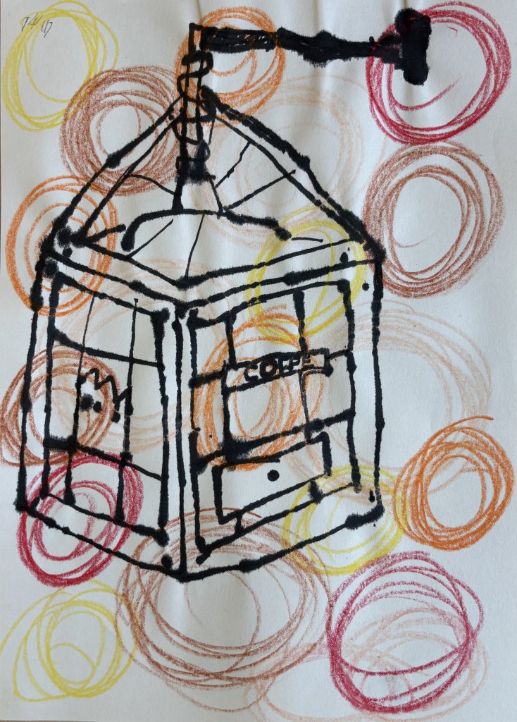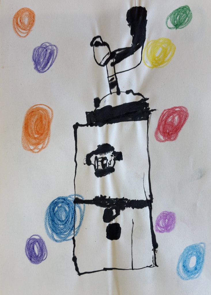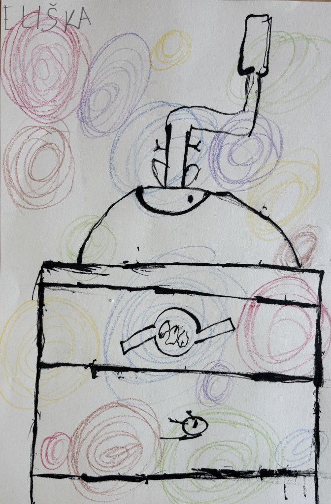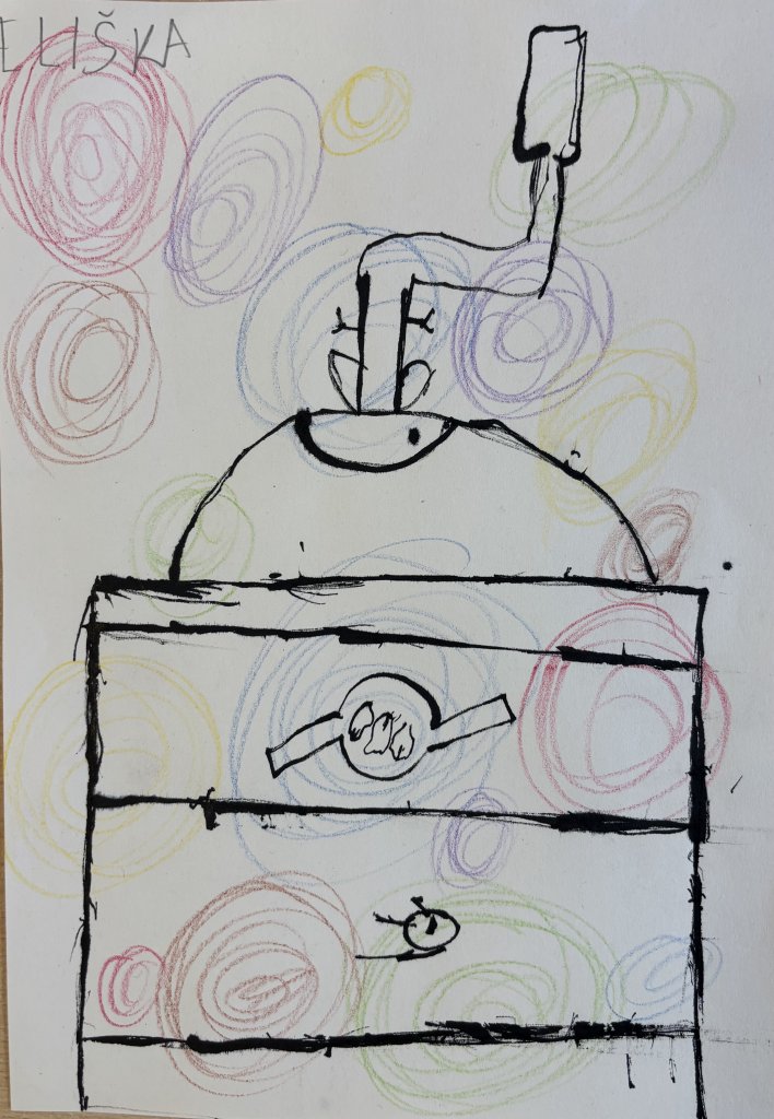 Starý mlýnek - voskovkové závitnice jako pozadí a kresba starého mlýnku, které společně vytvořily atmosféru dávných dob, se dětem velmi zdařila.