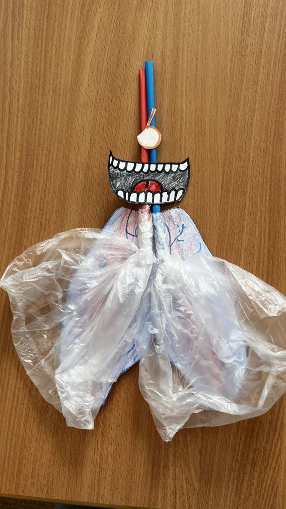 Abychom si to lépe představili, vyrobili jsme si jednoduchý model plic. Použili jsme jen dva sáčky a dvě brčka. Brčka představovala průdušnici a průdušky a sáčky byly naše „plíce“. Když jsme do brček foukli vzduch, sáčky se nafoukly stejně jako skutečné plíce při nádechu. Když jsme vzduch vypustili, sáčky splaskly – jako při výdechu.