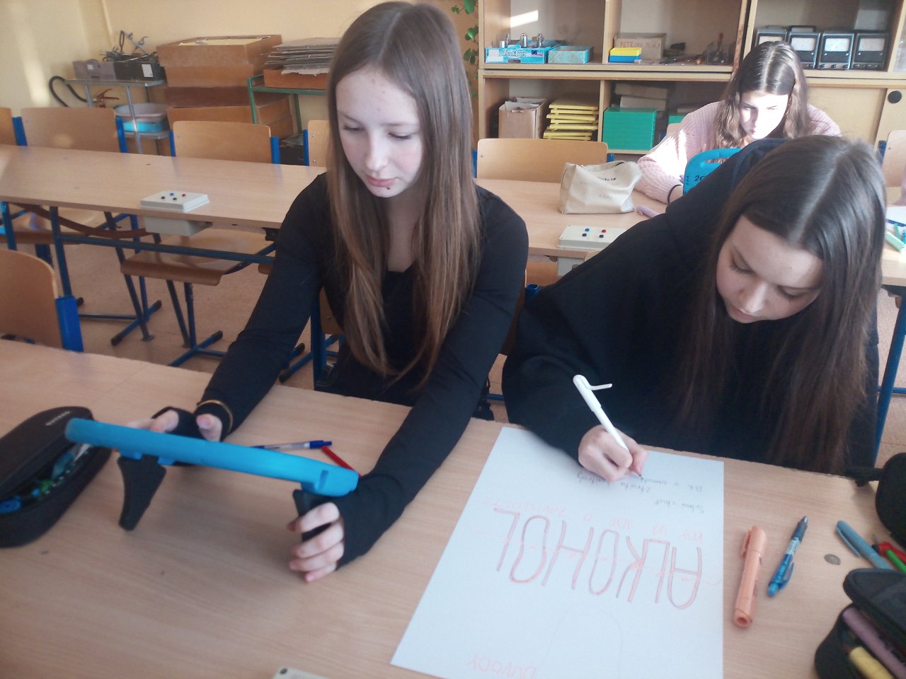 V další části hodiny žáci pracovali s pracovními listy, kde vyhledávali informace o krátkodobých i dlouhodobých účincích alkoholu na organismus. Zaměřili se například na poškození jater, mozku či srdce a diskutovali o tom, jak alkohol ovlivňuje psychiku, chování a mezilidské vztahy. Součástí práce bylo také doplnění aktuálních statistik o spotřebě alkoholu mezi mladistvými v České republice.