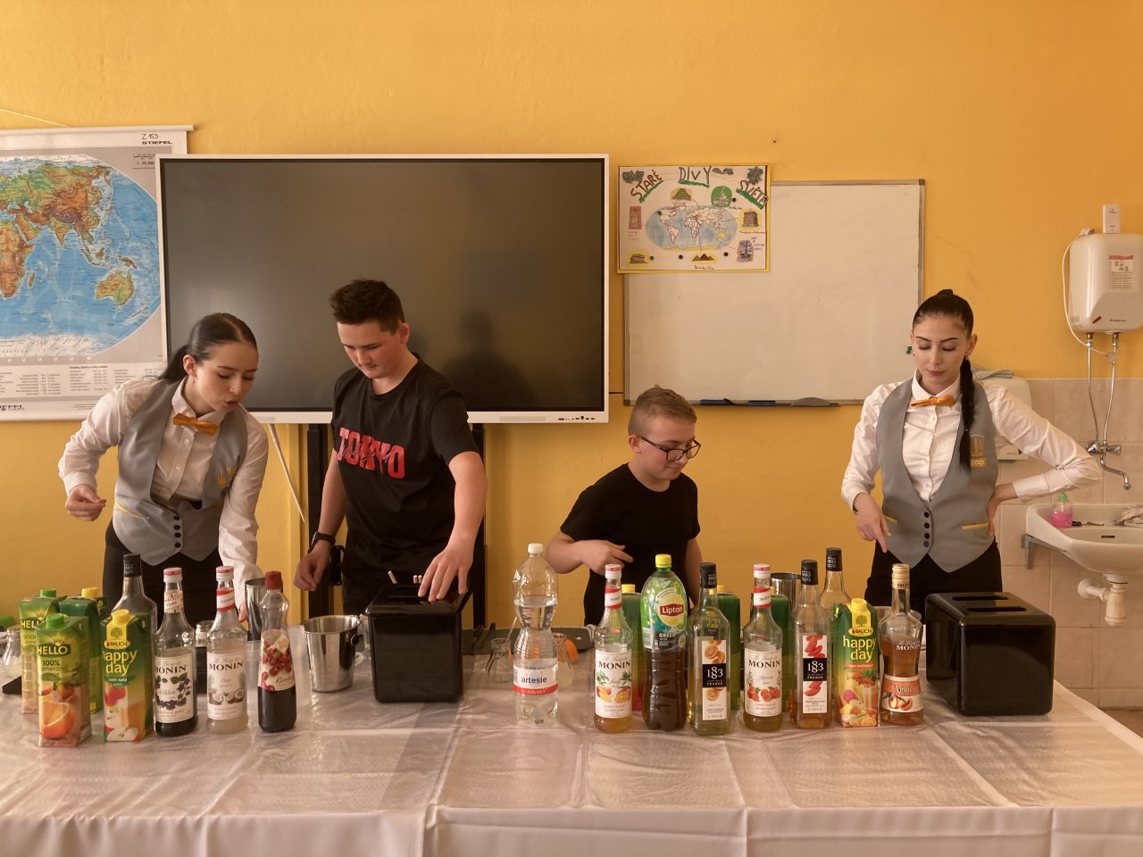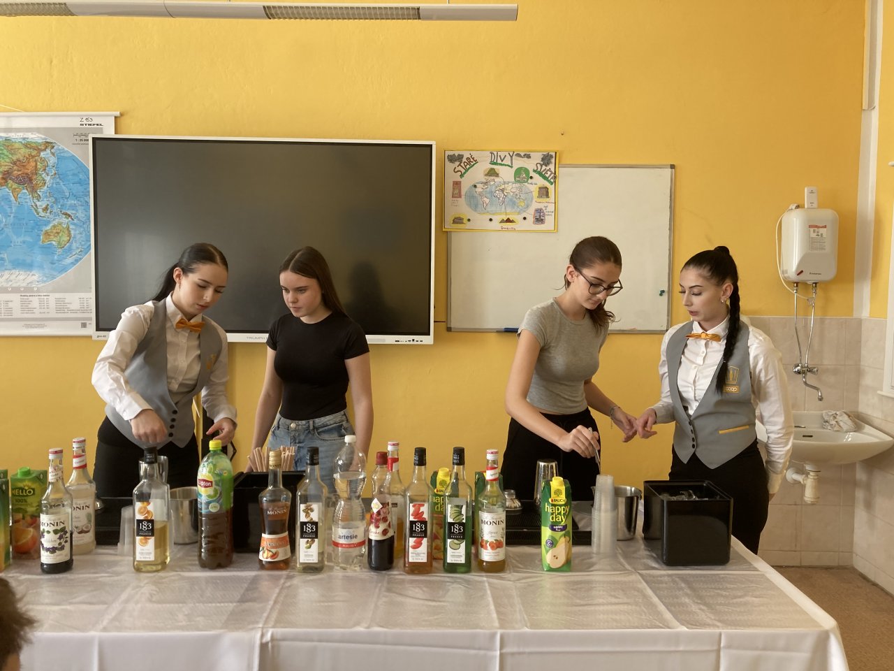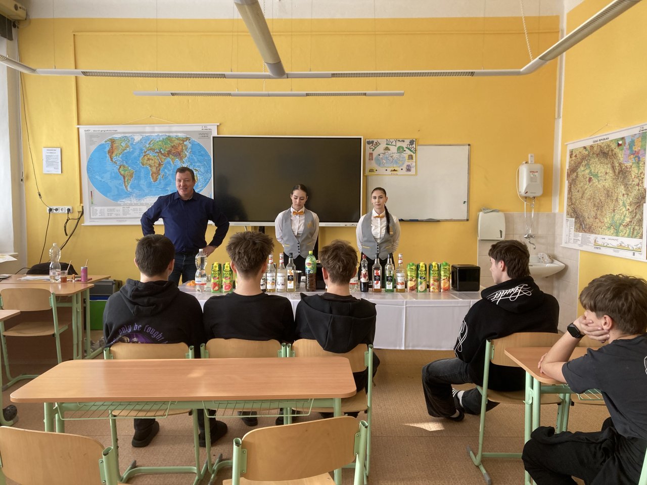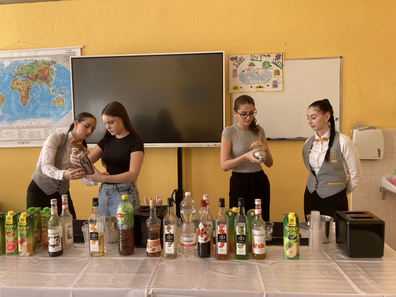 Nejprve byl představen obor Kuchař–číšník se zaměřením na barmanství. Žáci se dozvěděli, jaké vybavení barman při své práci používá, a sledovali ukázku profesionálního míchání nápojů. Poté si mohli míchání nápojů sami vyzkoušet a ochutnat připravené ovocné koktejly.