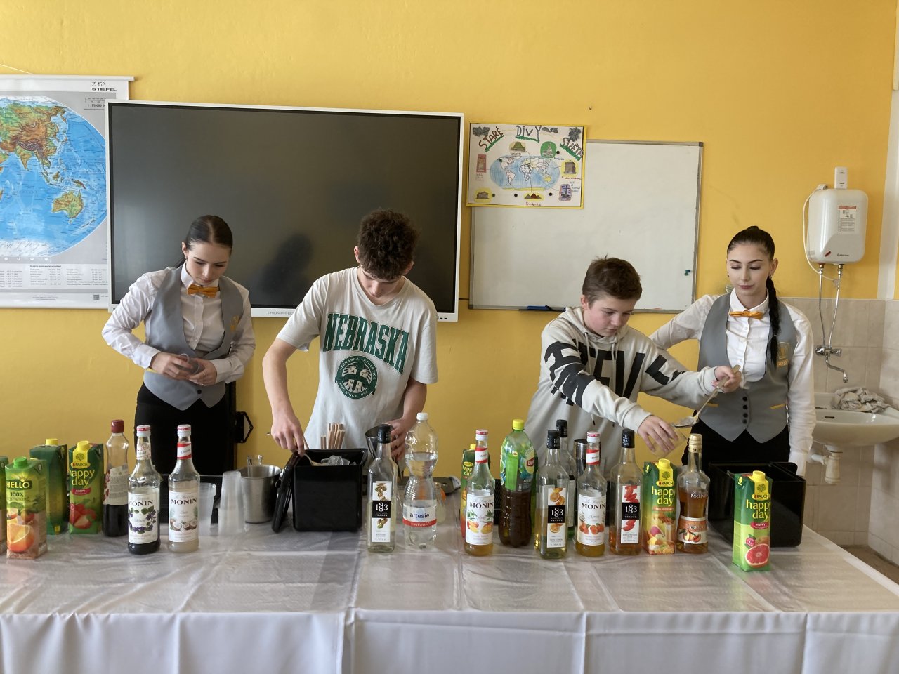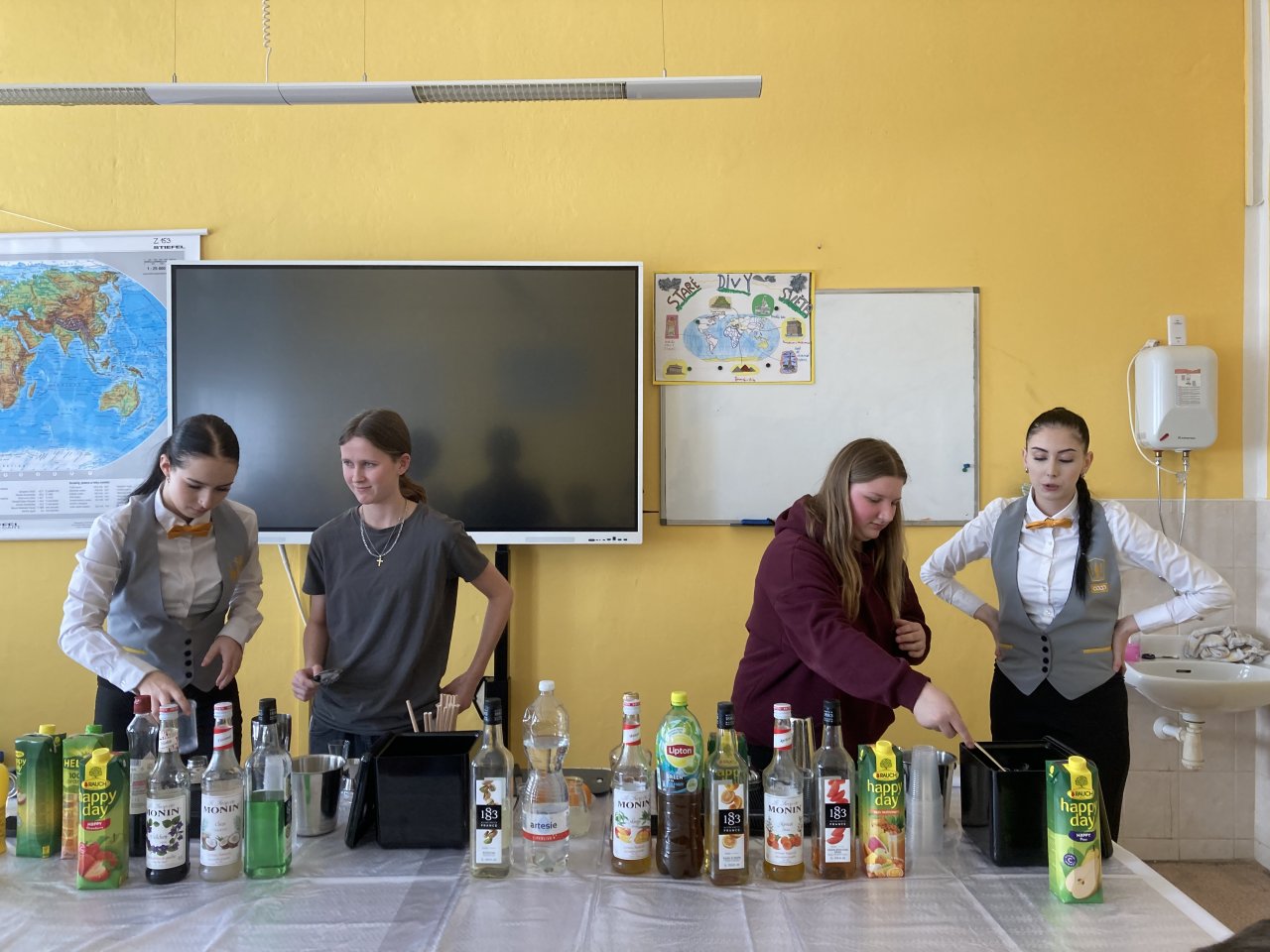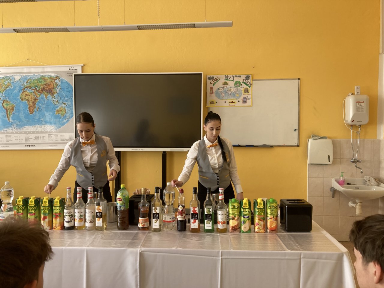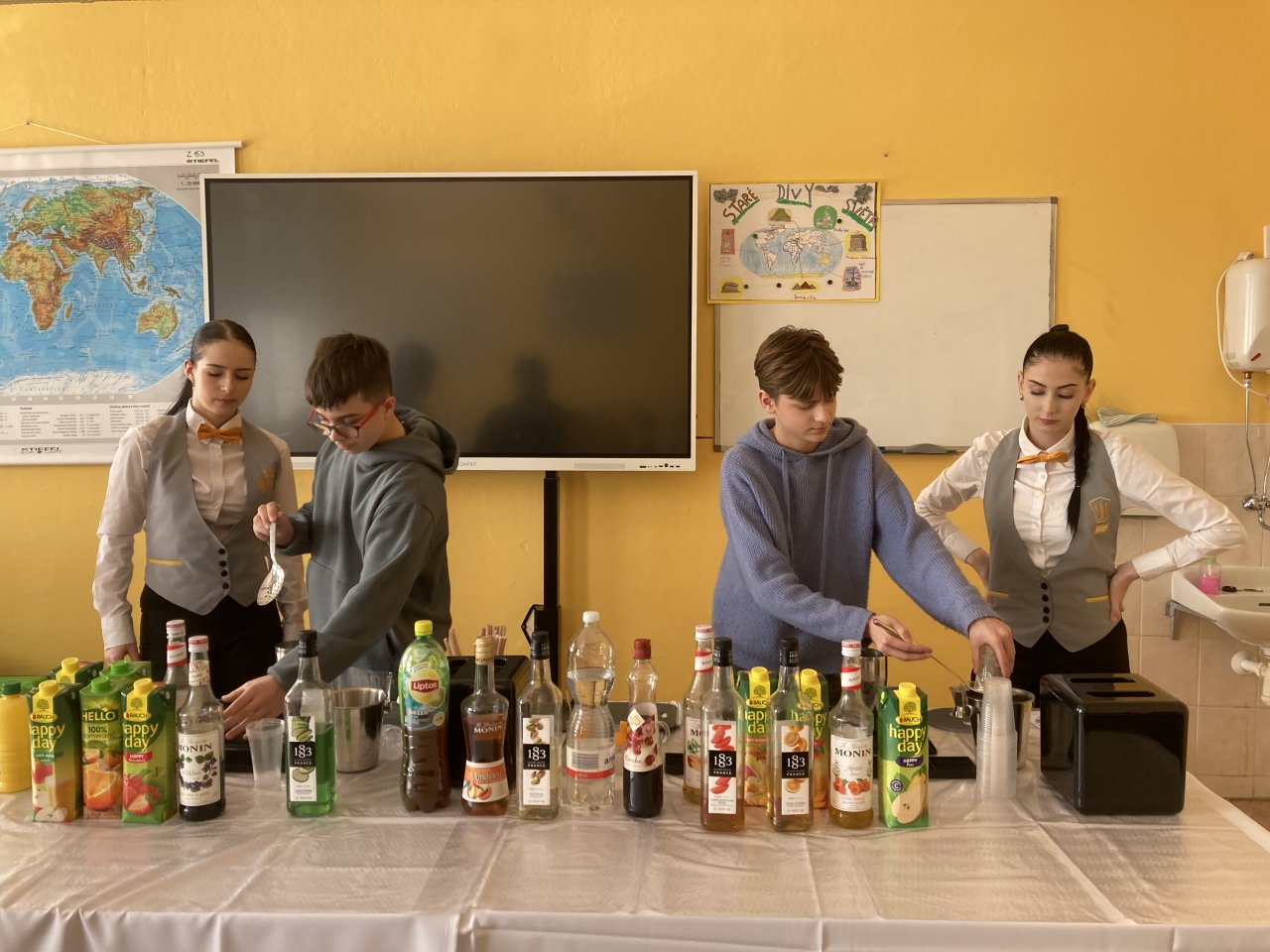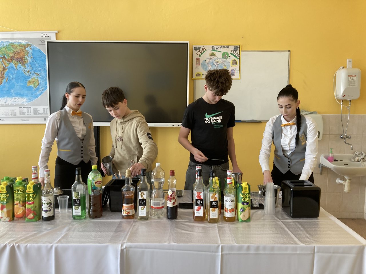 Nejprve byl představen obor Kuchař–číšník se zaměřením na barmanství. Žáci se dozvěděli, jaké vybavení barman při své práci používá, a sledovali ukázku profesionálního míchání nápojů. Poté si mohli míchání nápojů sami vyzkoušet a ochutnat připravené ovocné koktejly.