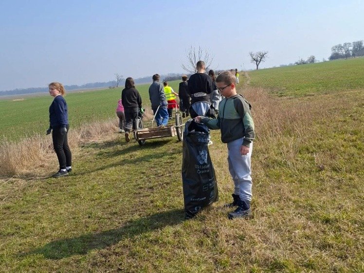 Datum: 10. 3. 2026Žáci 6. a 7. třídy se zapojili do jarní akce Ukliďme Česko a využili krásného slunečného počasí k úklidu okolí naší obce. Nejdříve se vybavili károu, rukavicemi a svítivými vestami a úklidová akce mohla začít. Prošli přilehlé cesty, příkopy i zelené plochy a sesbírali velké množství odpadků, které do přírody rozhodně nepatří.