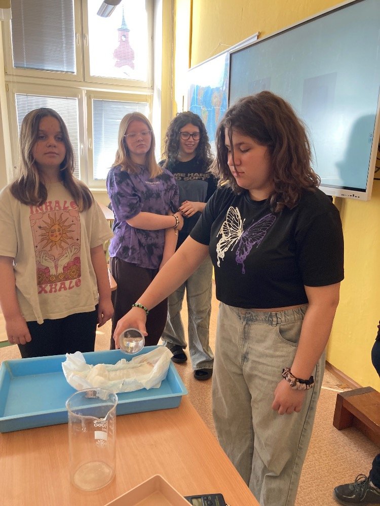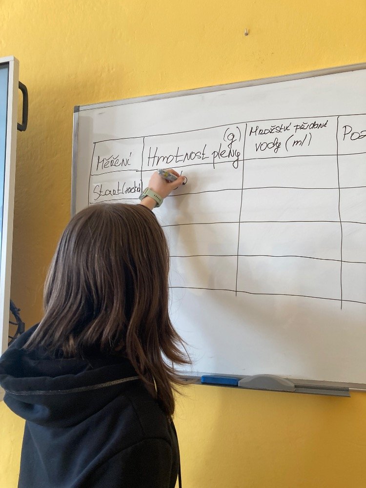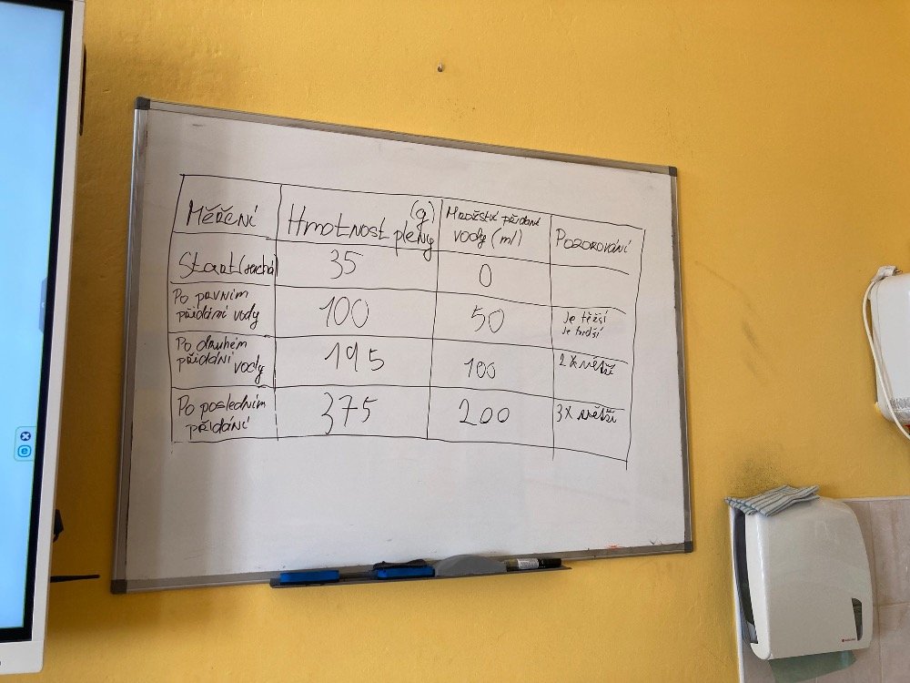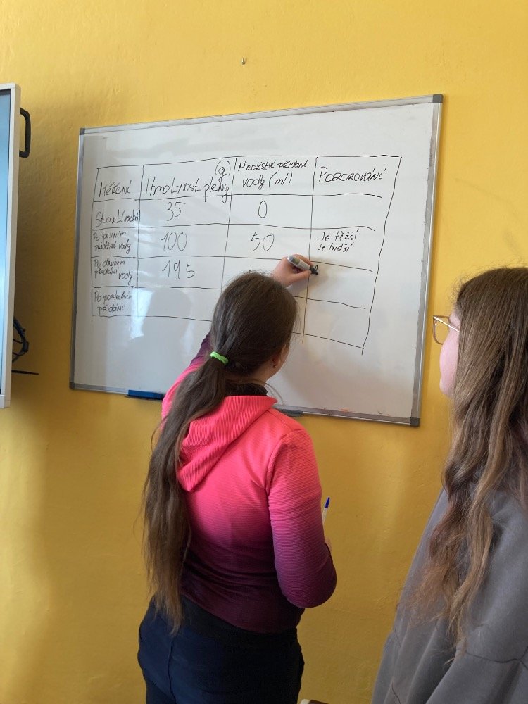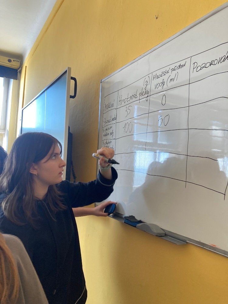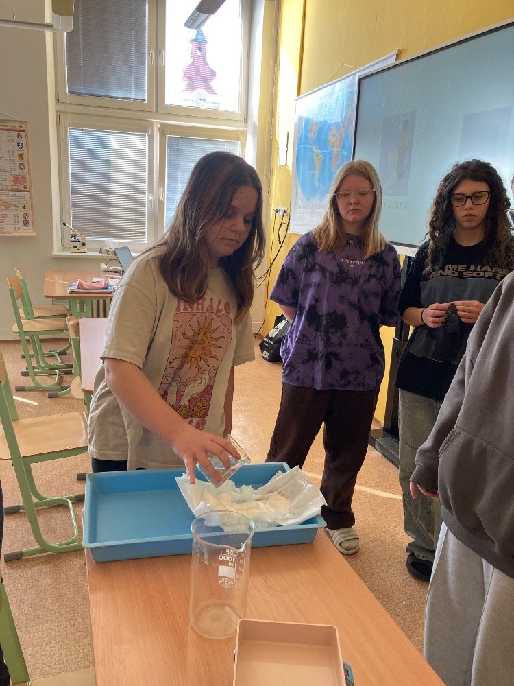 Poté se pustili do praktických pokusů. Děvčata plnila první část s názvem „Co udělá dětská plena v kanalizaci?“. Zjišťovala, kolik vody dokáže dětská plena pojmout a jak dramaticky zvětší svůj objem. Výsledek všechny překvapil – plena nasála velké množství vody a výrazně nabobtnala, což názorně ukázalo, proč do kanalizace rozhodně nepatří.