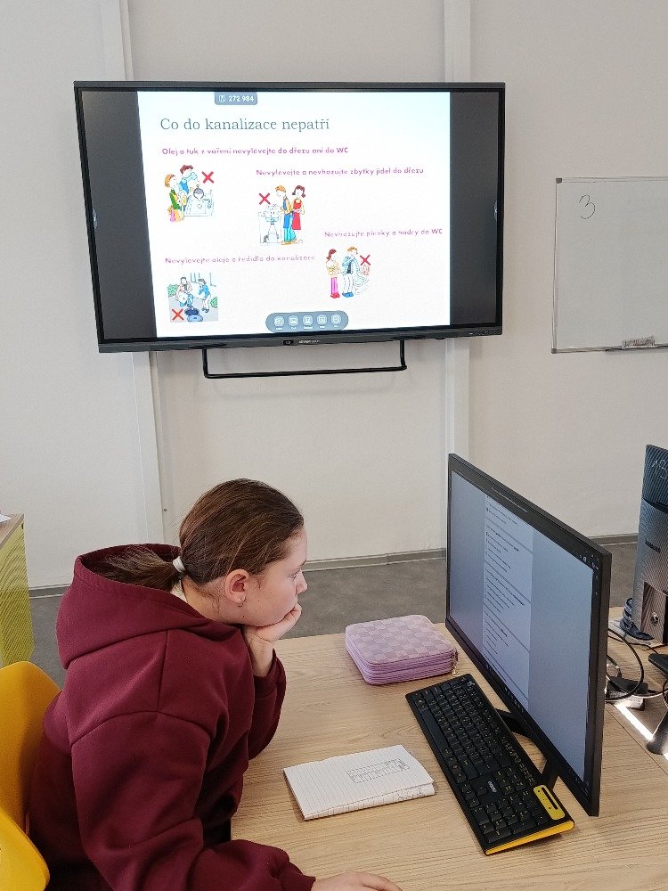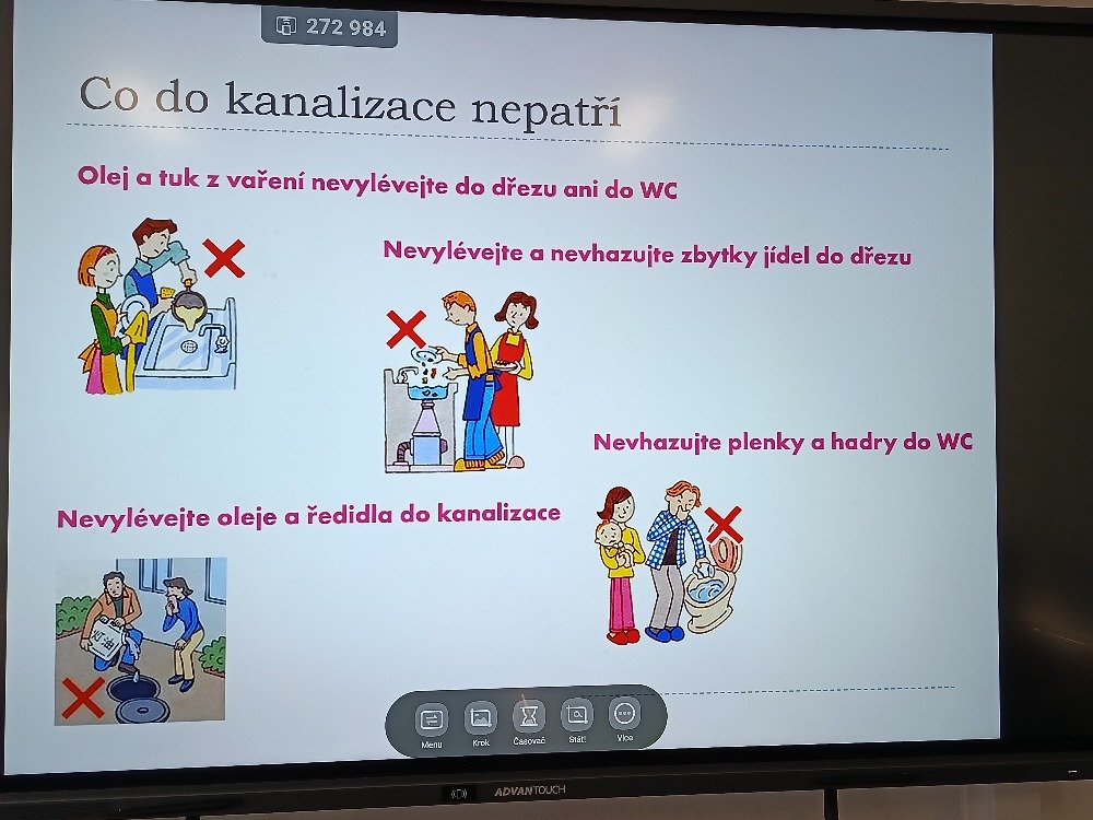 Program začal krátkým úvodním videem, které dětem přiblížilo, jak funguje kanalizace a co všechno může způsobit nevhodně vyhozený odpad. Následovala společná diskuse, při které žáci sdíleli své zkušenosti a tipovali, co do odpadu rozhodně nepatří.