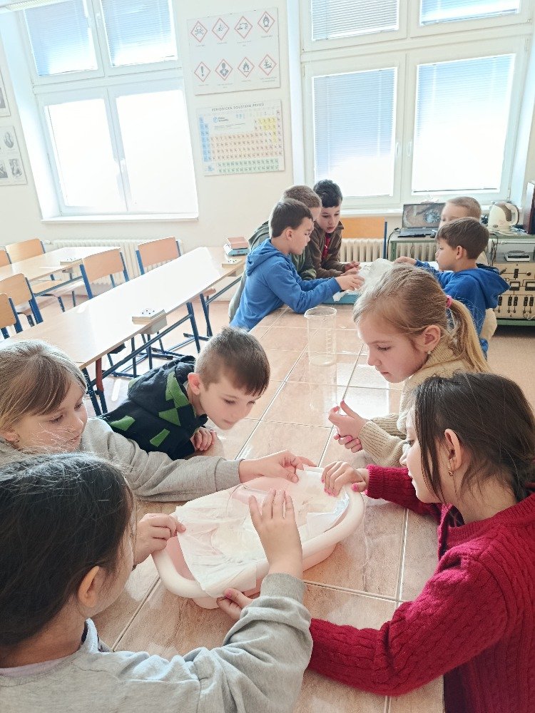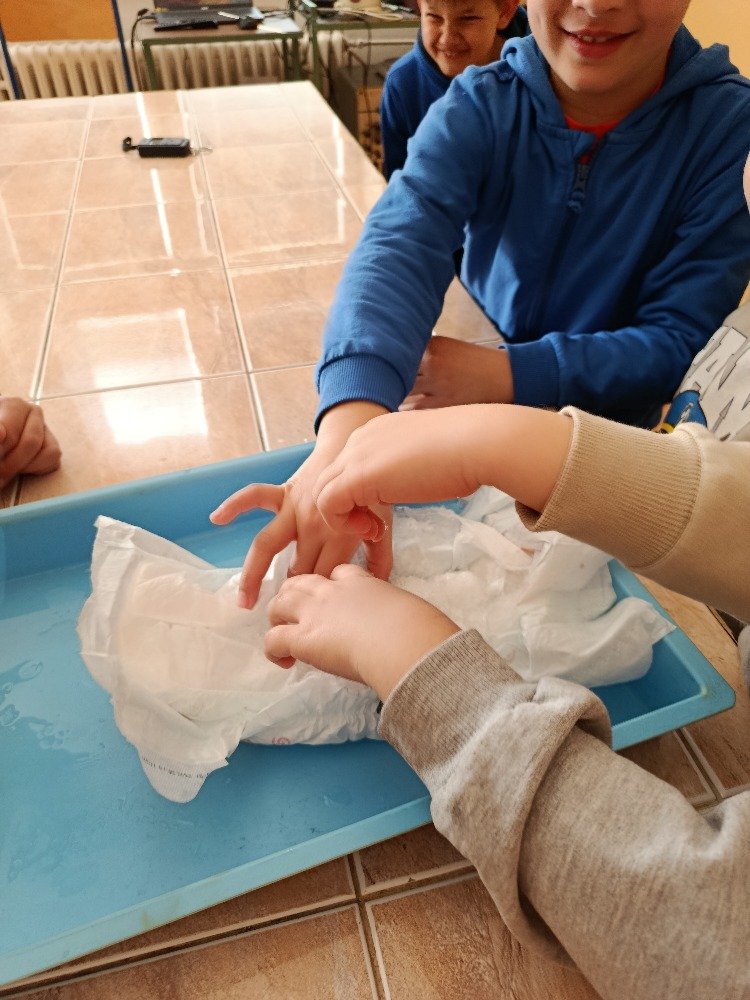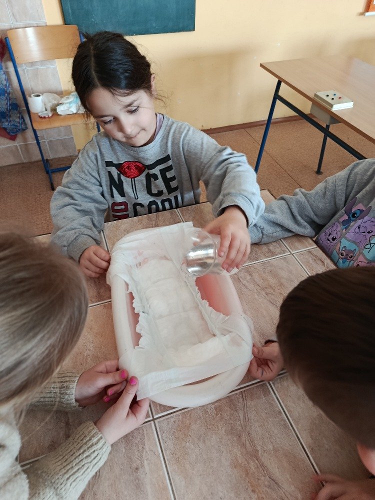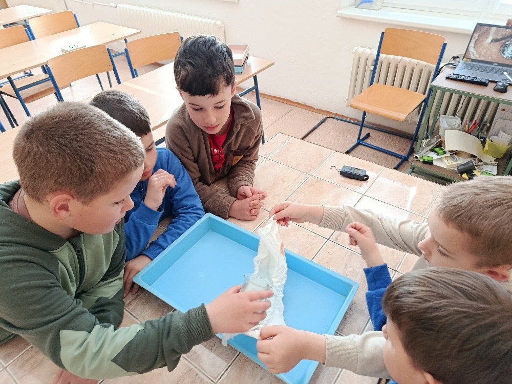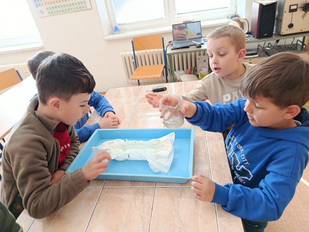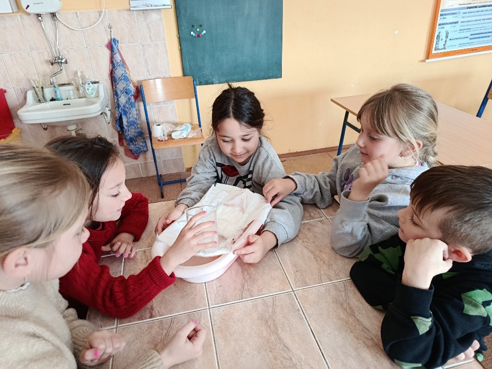 V praktické části si děti vyzkoušely, co se stane, když do WC vyhodíme věci, které tam nepatří. Pozorovaly například, jak se ve vodě chová dětská plenka, toaletní papír nebo vlhčené ubrousky. Zatímco toaletní papír se ve vodě rozpadl, plenka i ubrousky zůstaly téměř beze změny, což vedlo k pochopení, proč mohou ucpávat potrubí a způsobovat problémy v kanalizaci.