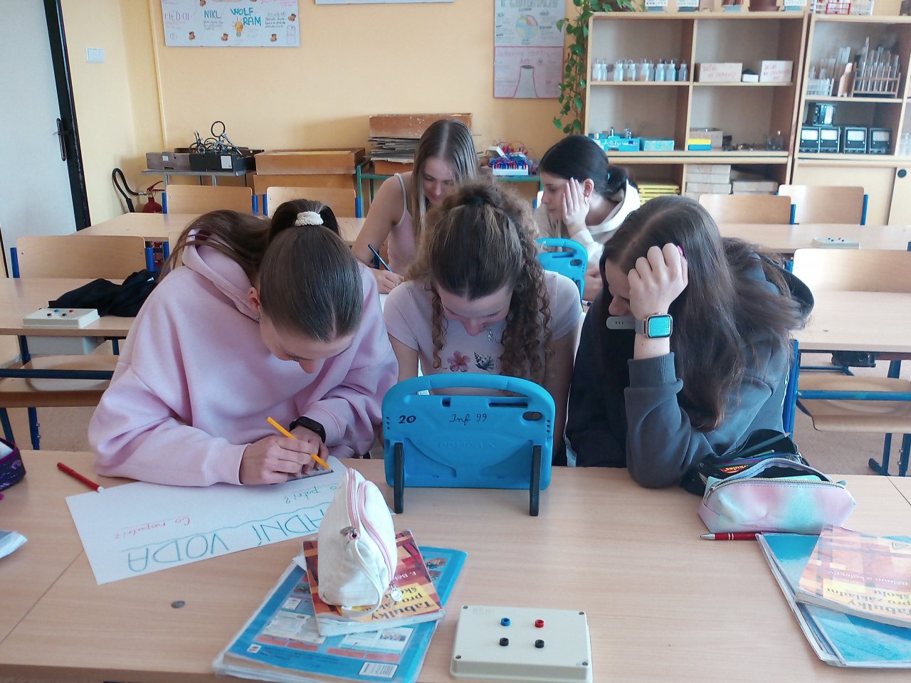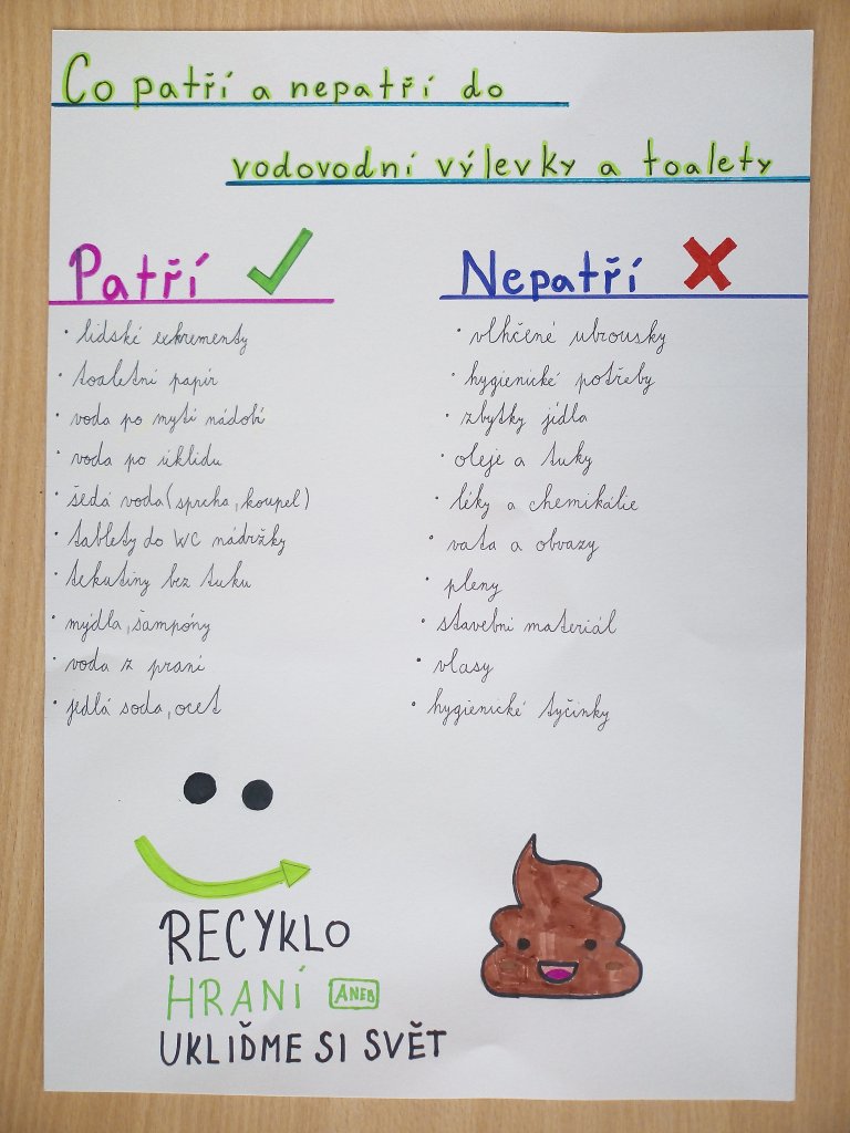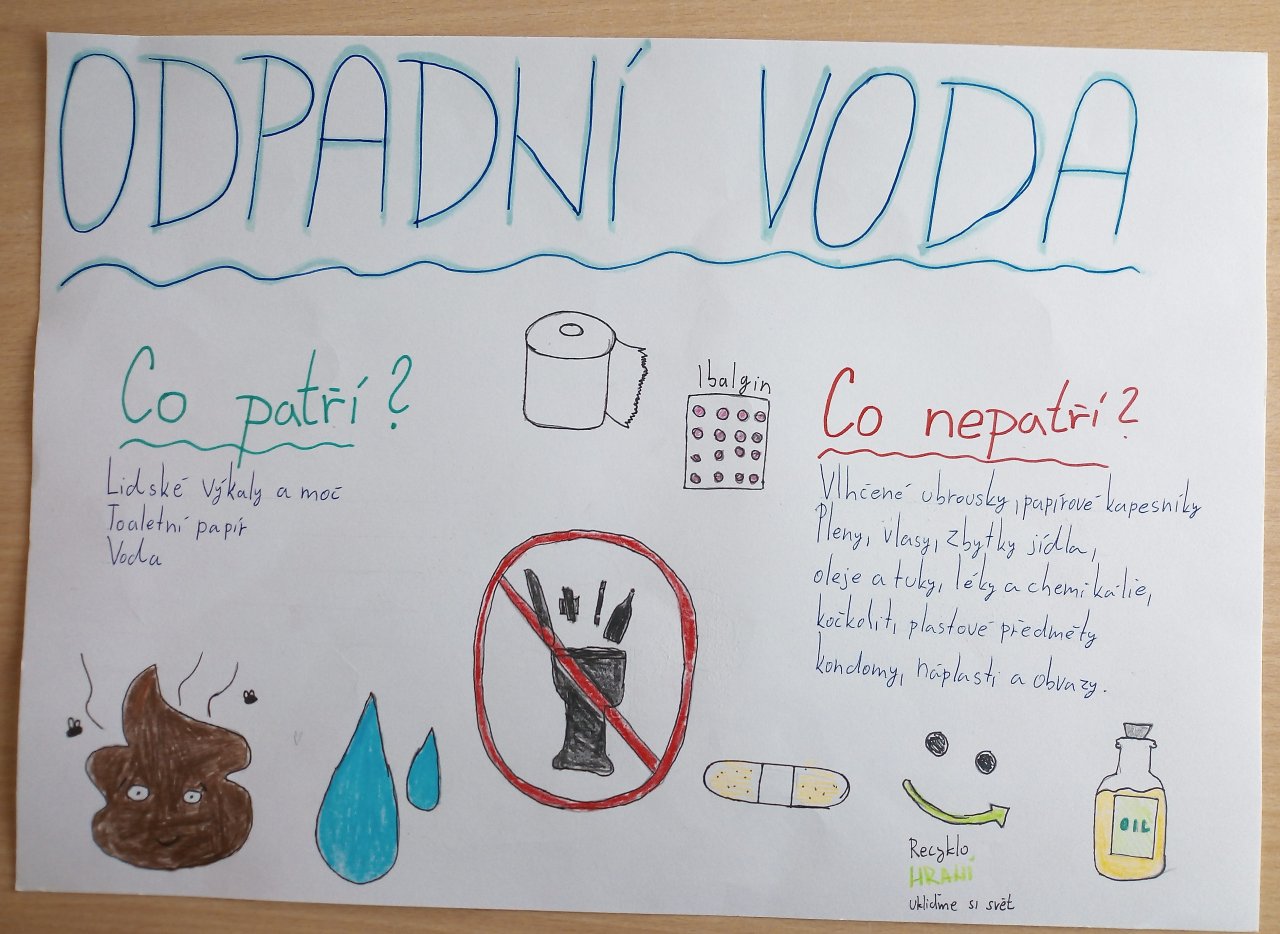 Poté jsme pracovali ve skupinách. Každá skupina vyplnila pracovní list zaměřený na ochranu vody. Součástí úkolu bylo také vytvořit plakát, který měl ostatním přehledně ukázat, co do výlevky nepatří.